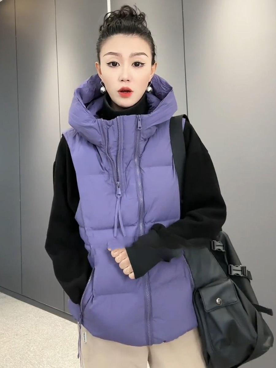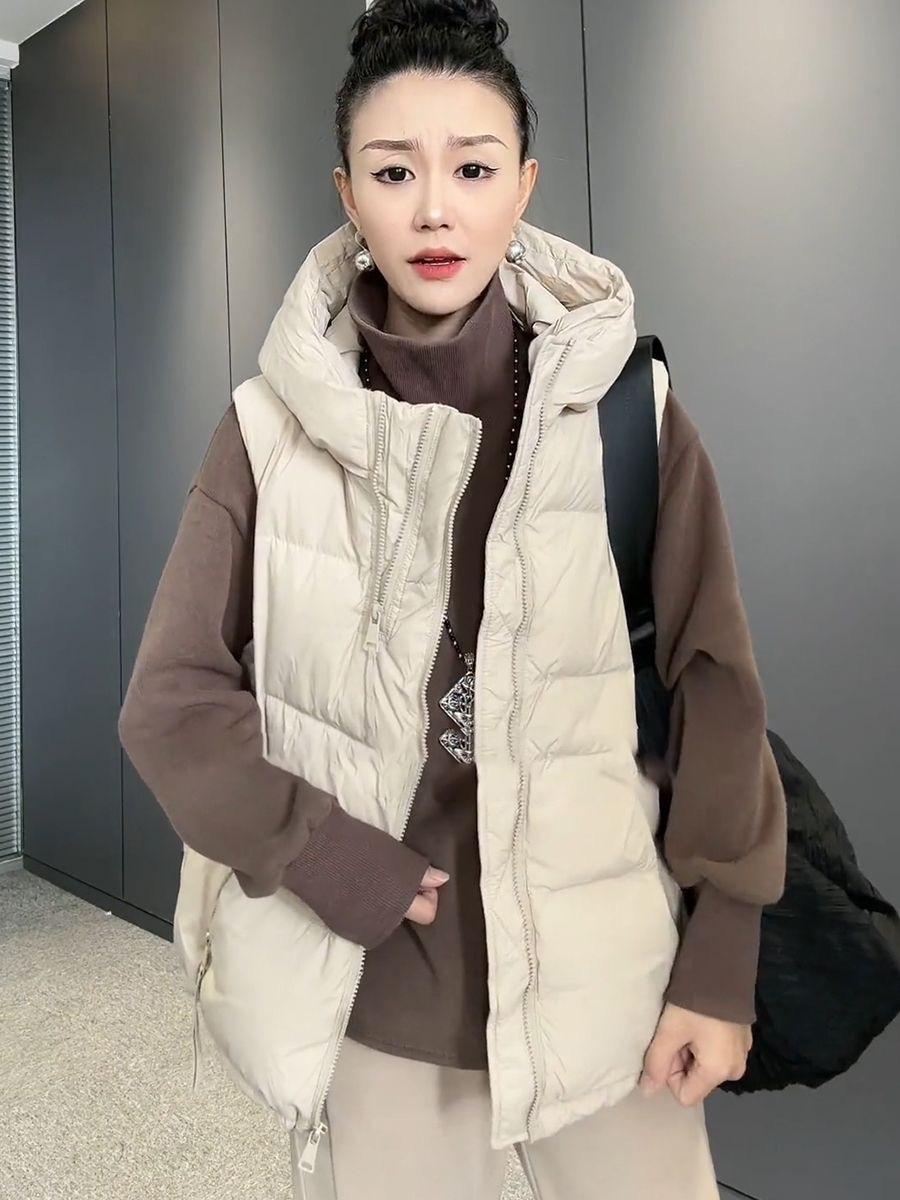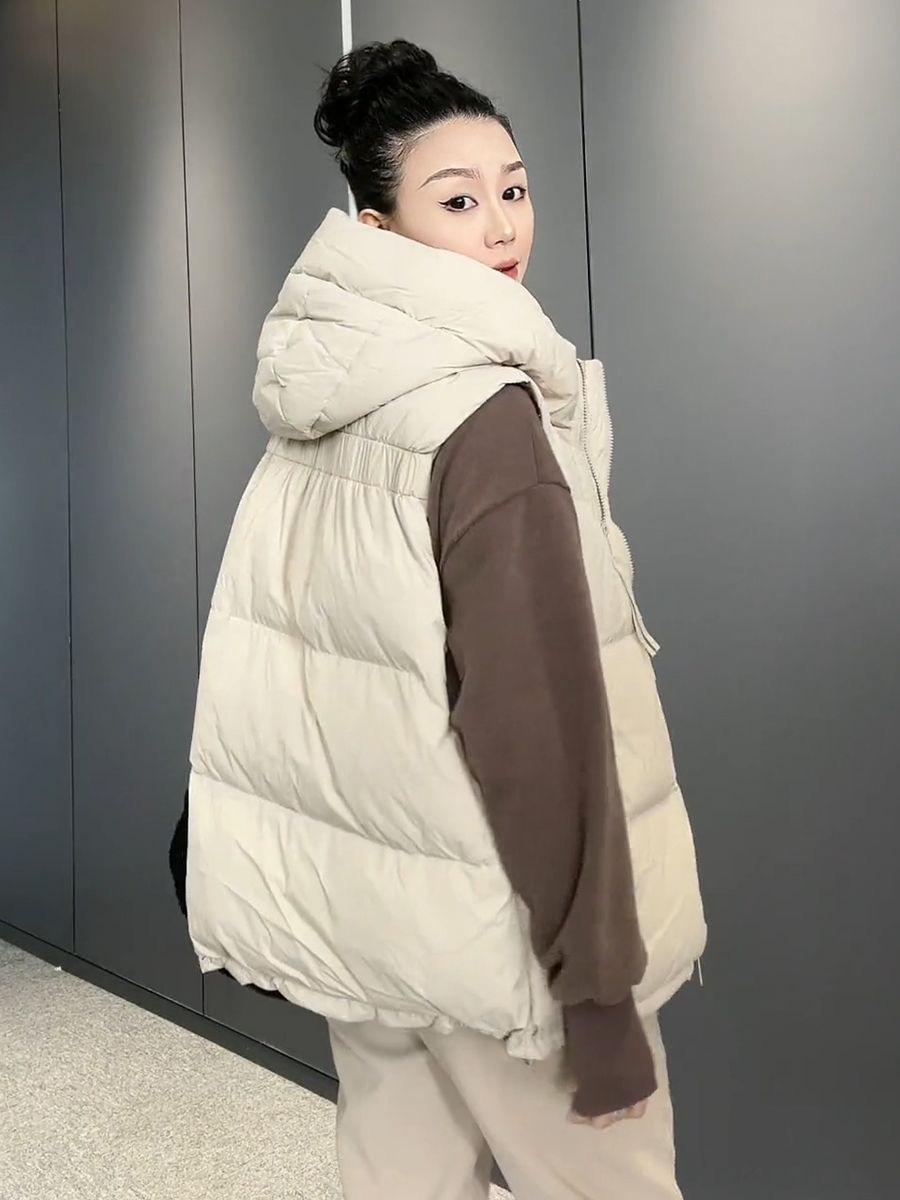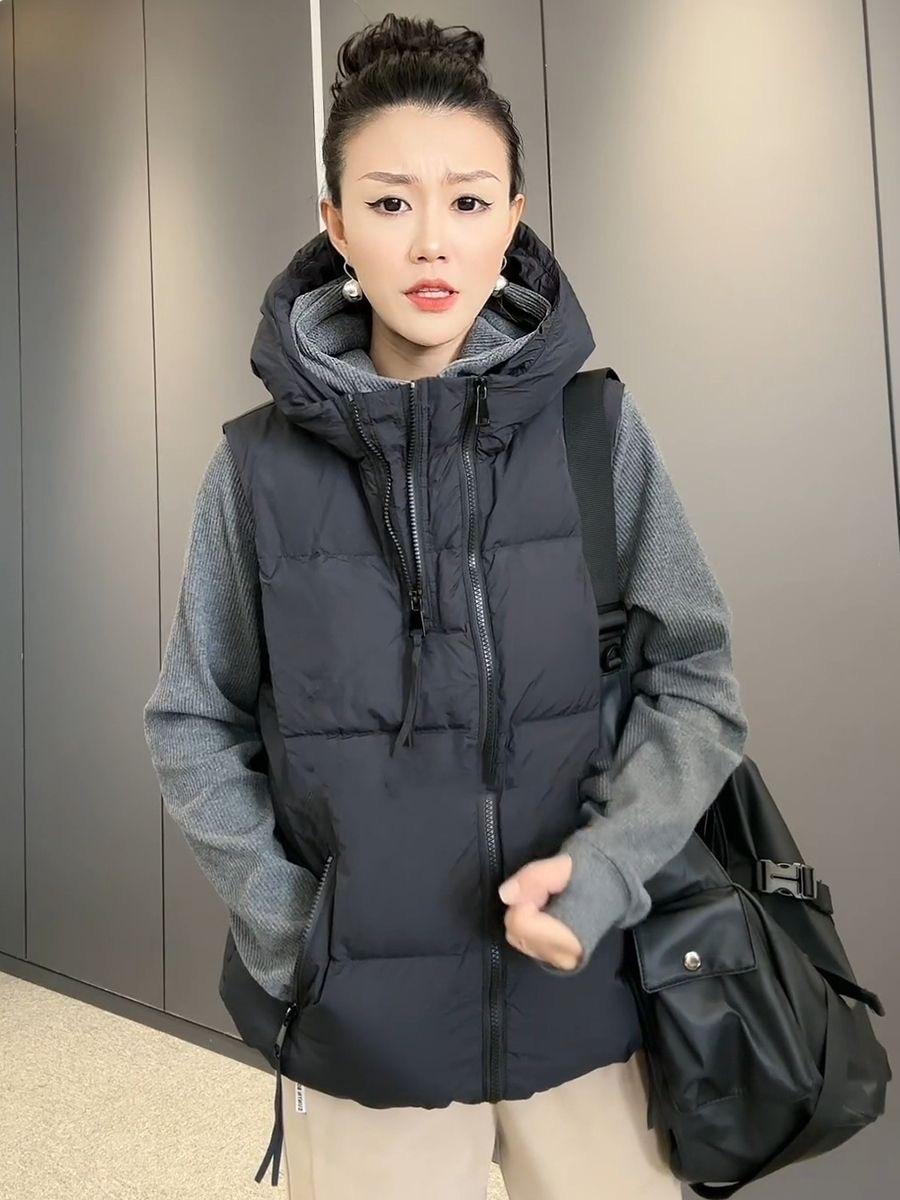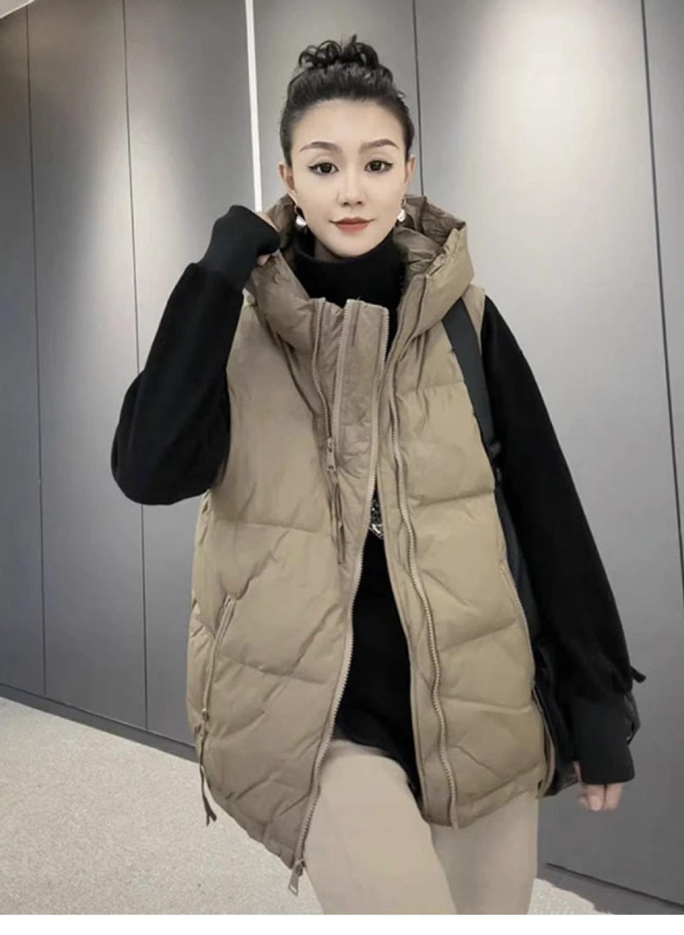 Chaqueta de algodón con capucha y doble cremallera para otoño e invierno de 2023, chaleco de plumón de algodón, chaleco informal de moda para mujer.