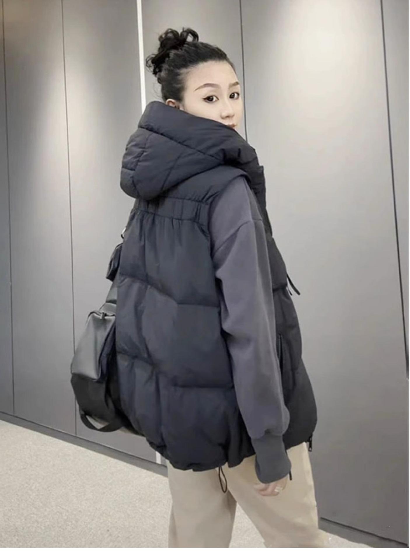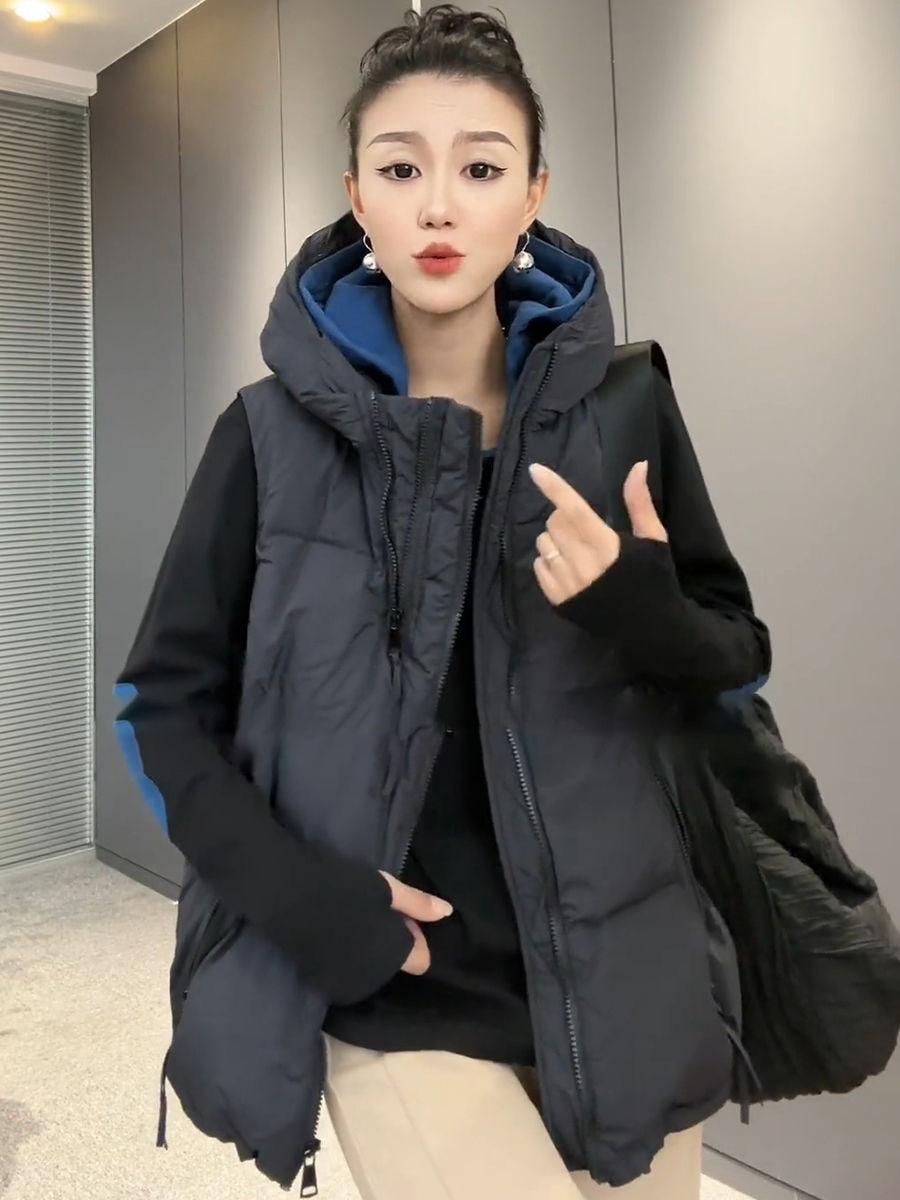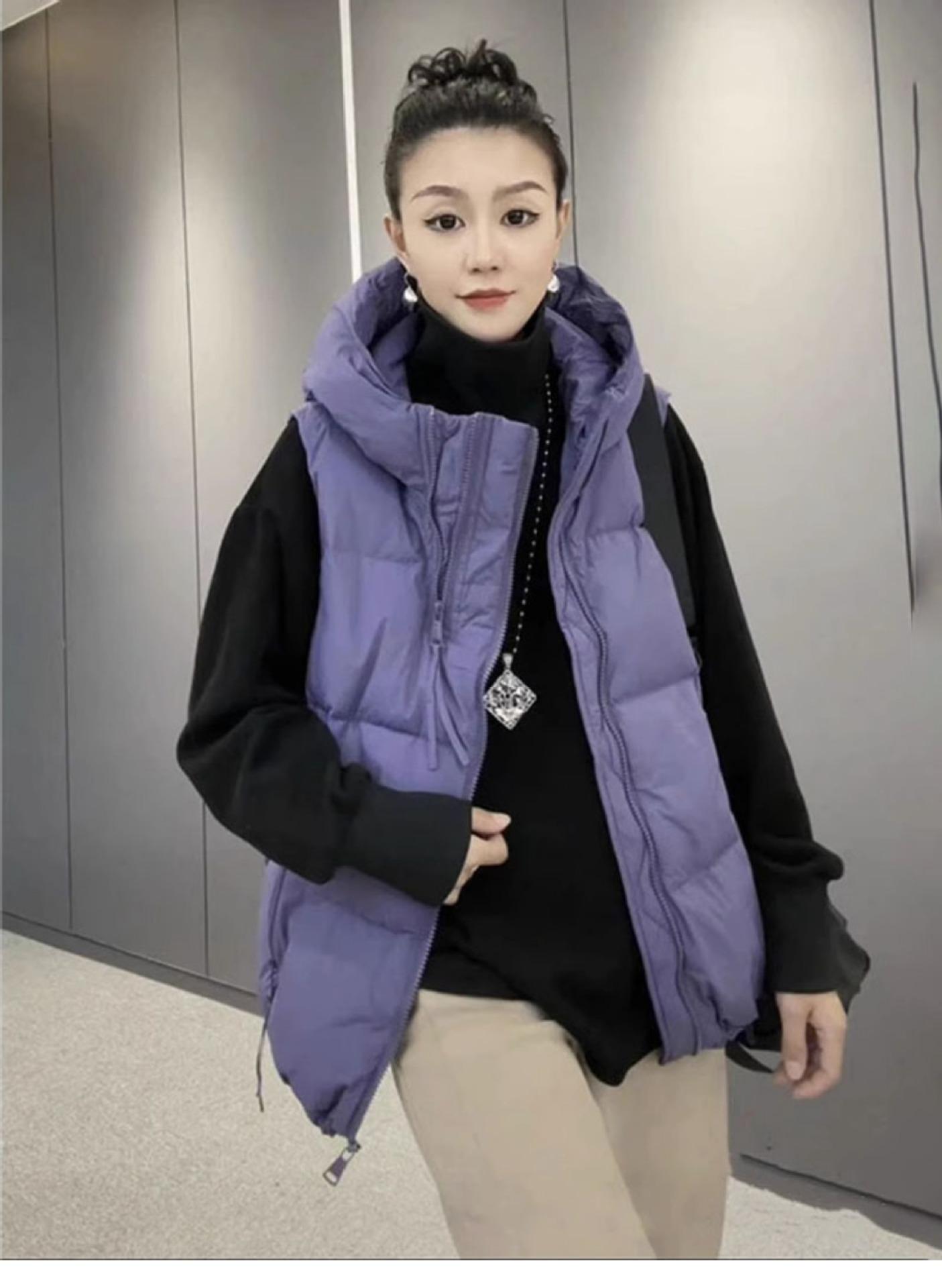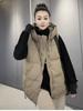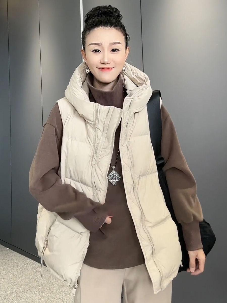 Chaqueta de algodón con capucha y doble cremallera para otoño e invierno de 2023, chaleco de plumón de algodón, chaleco informal de moda para mujer.