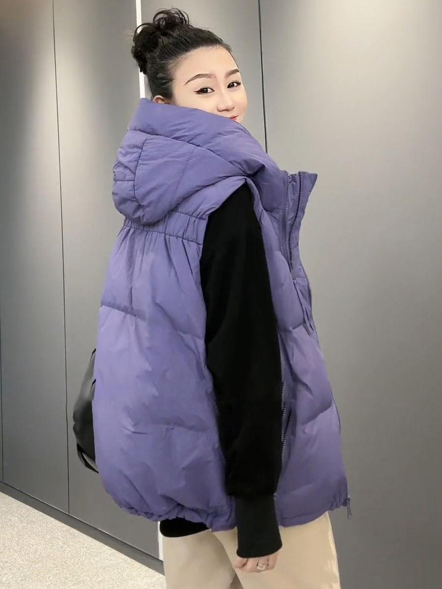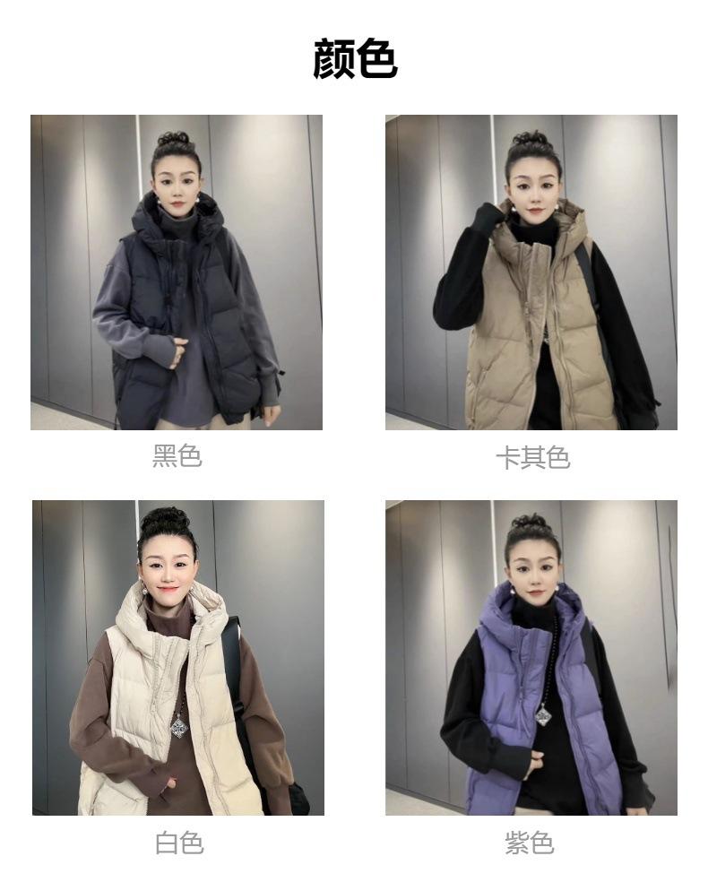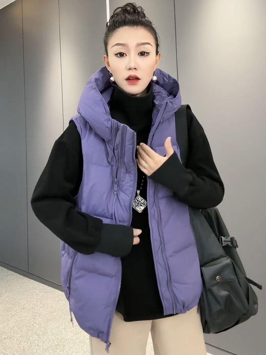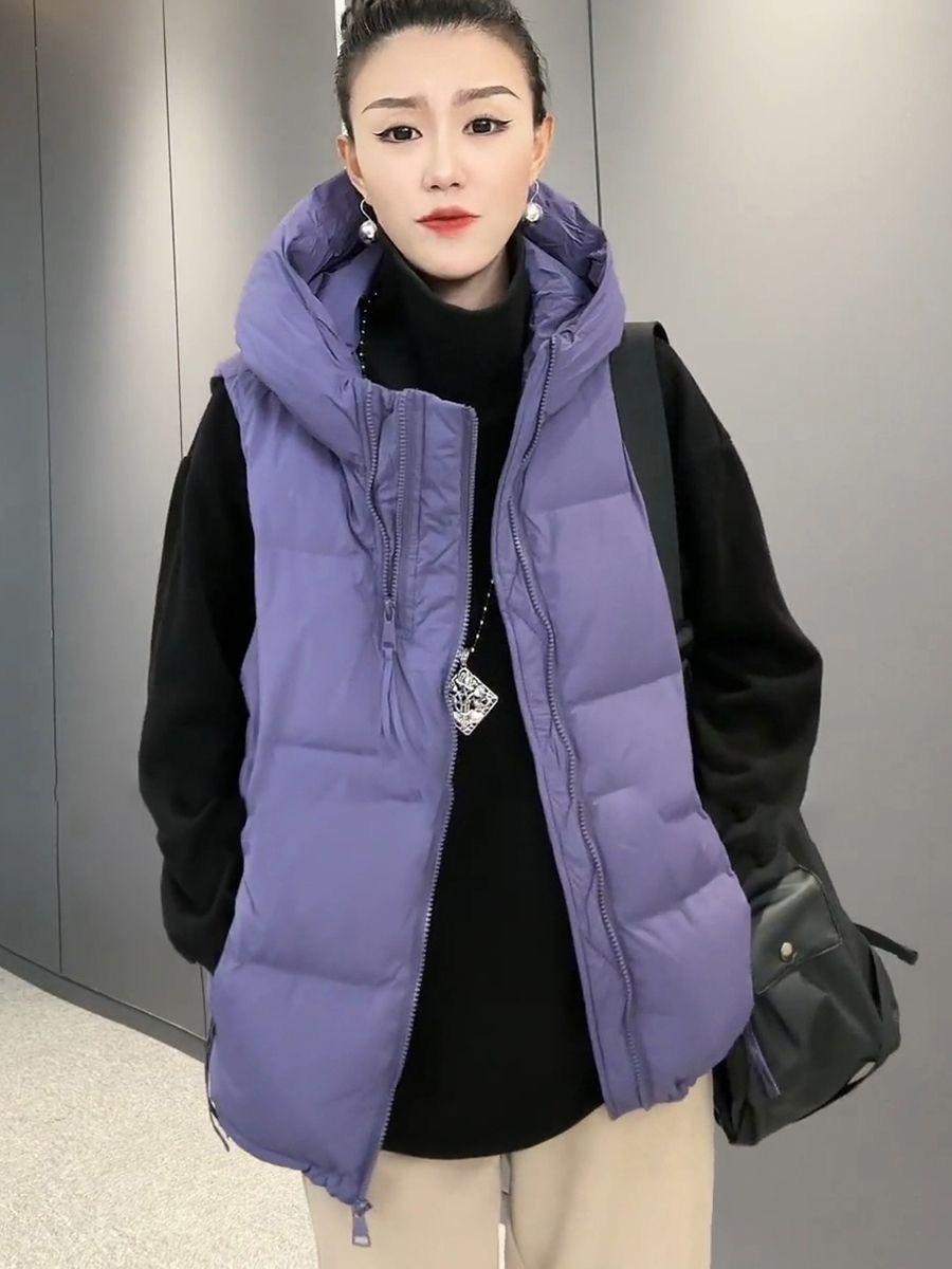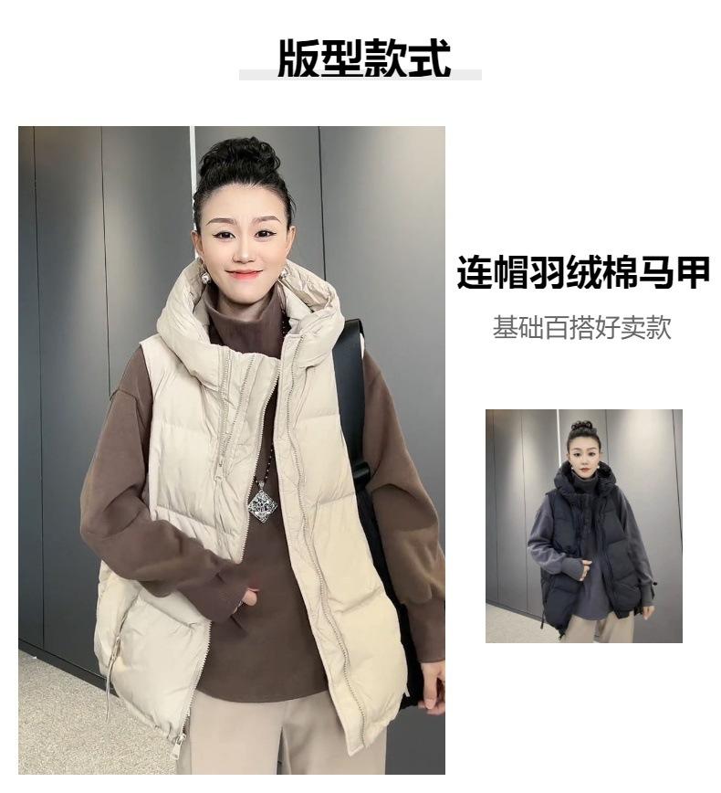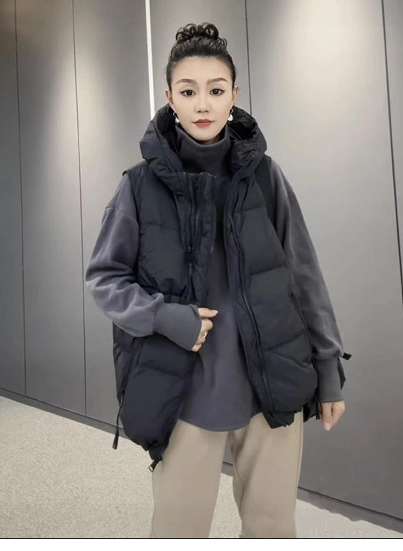 Chaqueta de algodón con capucha y doble cremallera para otoño e invierno de 2023, chaleco de plumón de algodón, chaleco informal de moda para mujer.