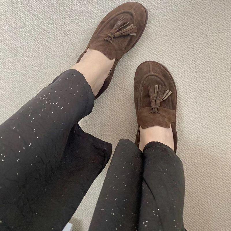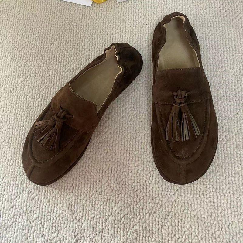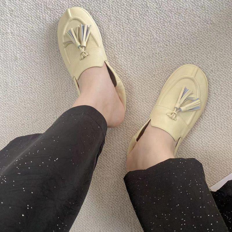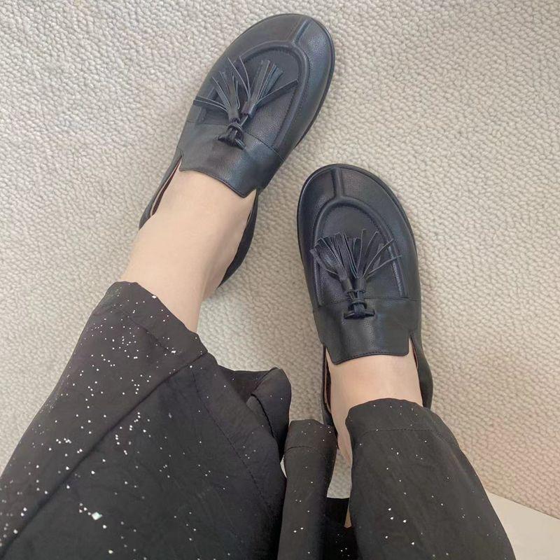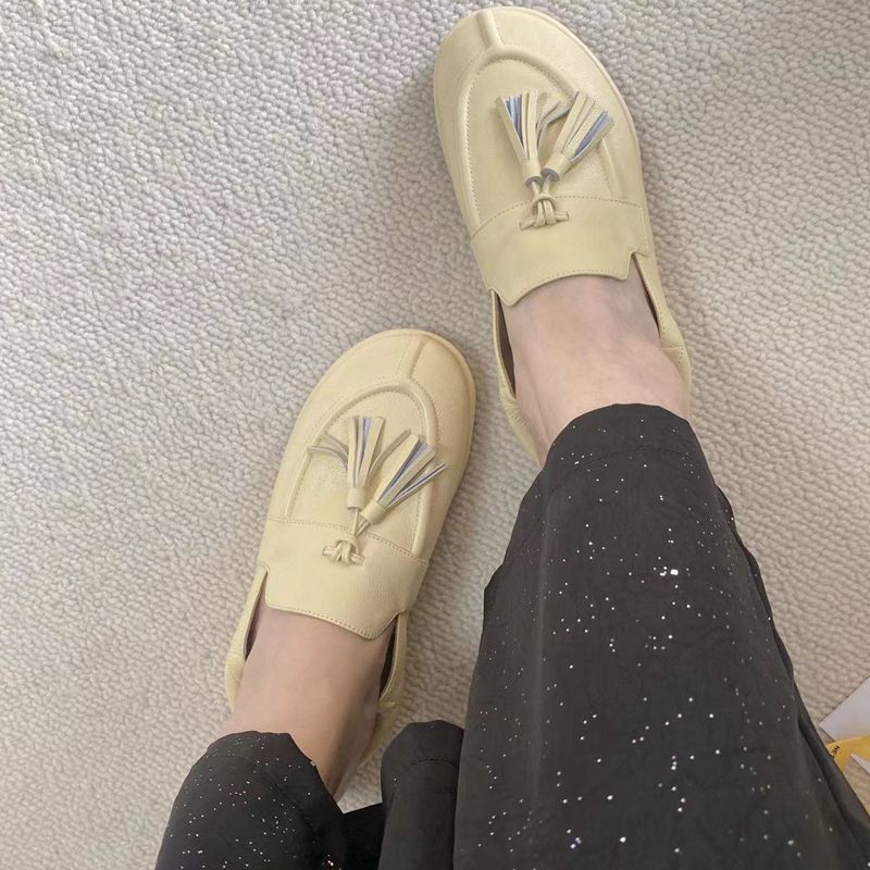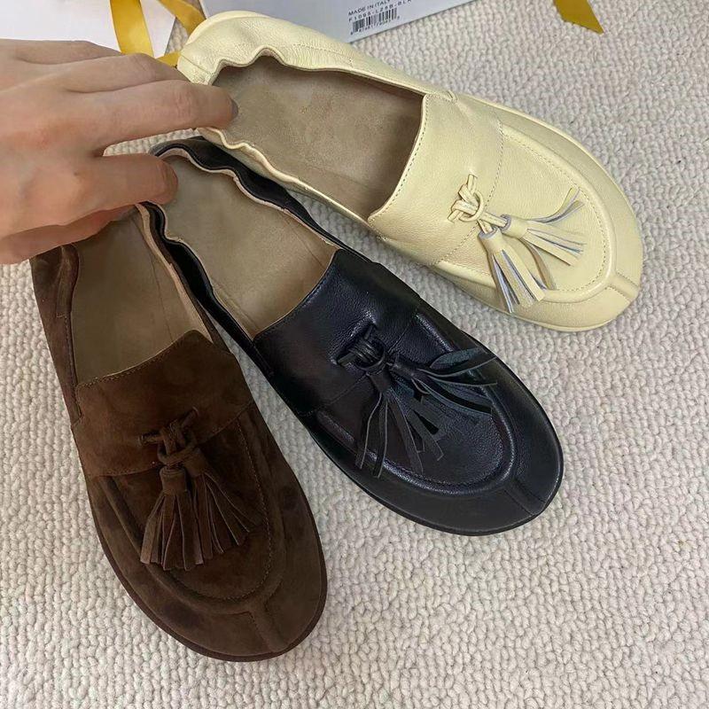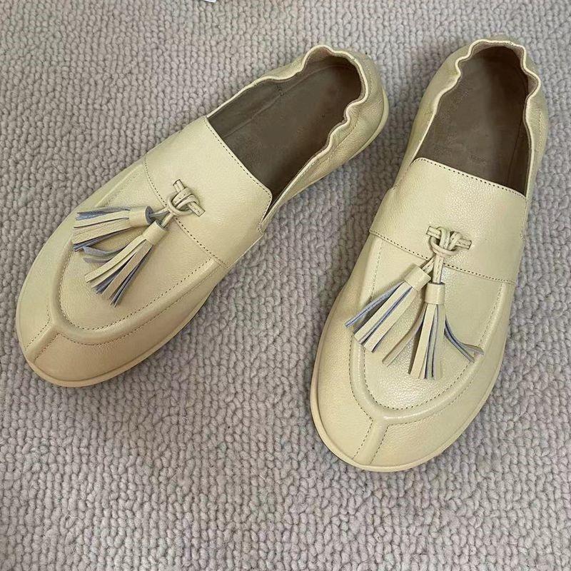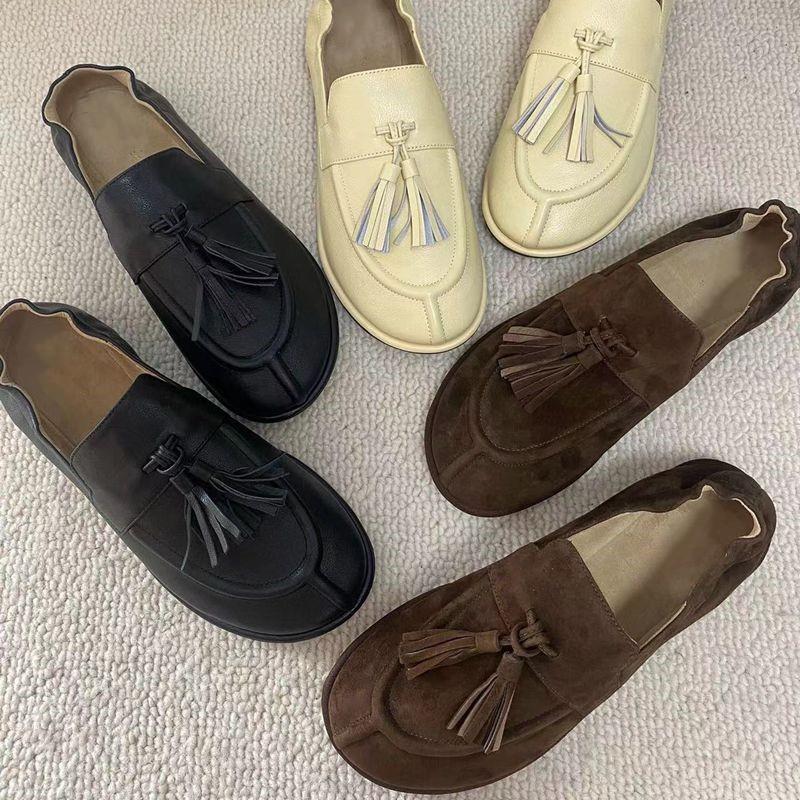 Continuando con el estilo minimalista consistente, la estructura sin forro hace que el cuerpo del zapato sea extremadamente ligero y cercano a la piel. Todo el par de zapatos luce simple pero en realidad es muy difícil de hacer. Las borlas en el empeine están hechas a mano con cuero genuino. Utiliza el proceso de producción de paquete completo de cuero, hecho por un maestro artesano, súper desperdicio. Es cómodo, suave y agradable para la piel cuando se usa descalzo. No hay necesidad de preocuparse por la sensación en el pie. El uso cómodo es imprescindible. Si lo usas sin usarlo, no querrás quitártelo una vez que te lo pongas. Aquellos que tienen altas exigencias en cuanto a la sensación en el pie pueden comprarlo con los ojos cerrados.