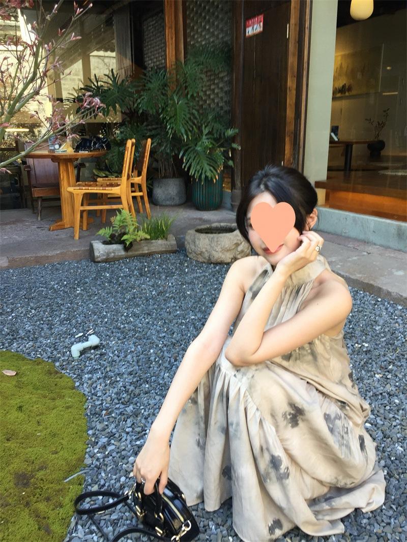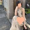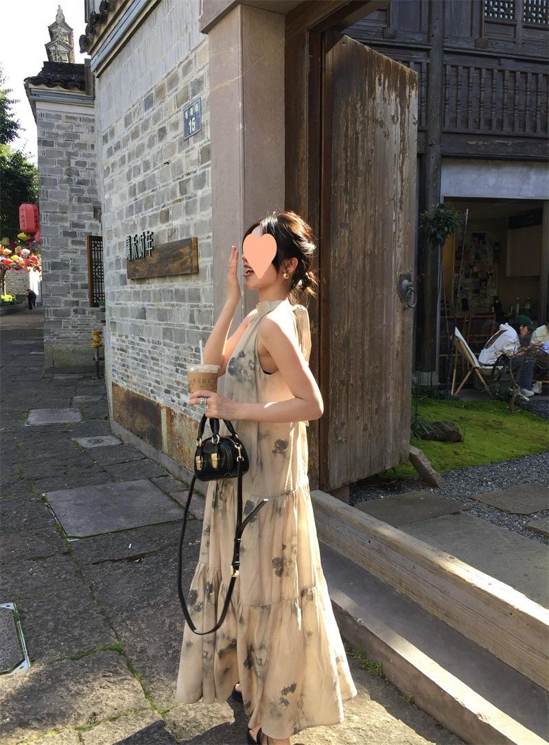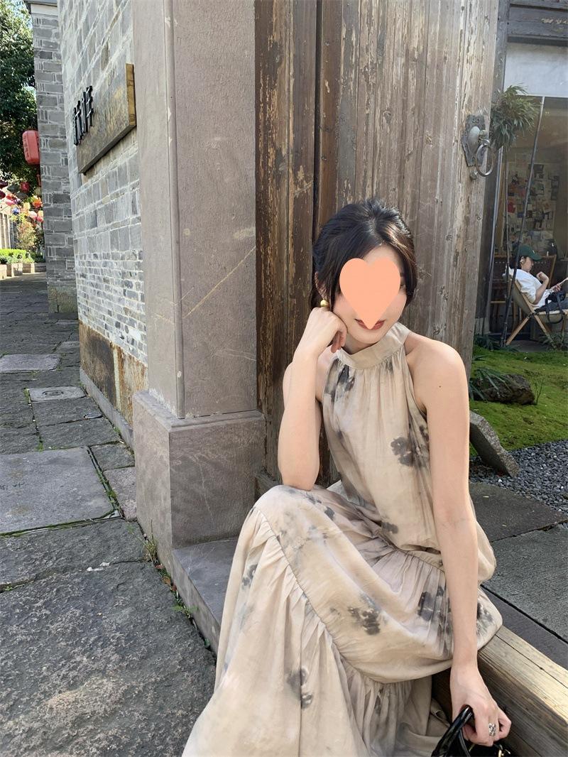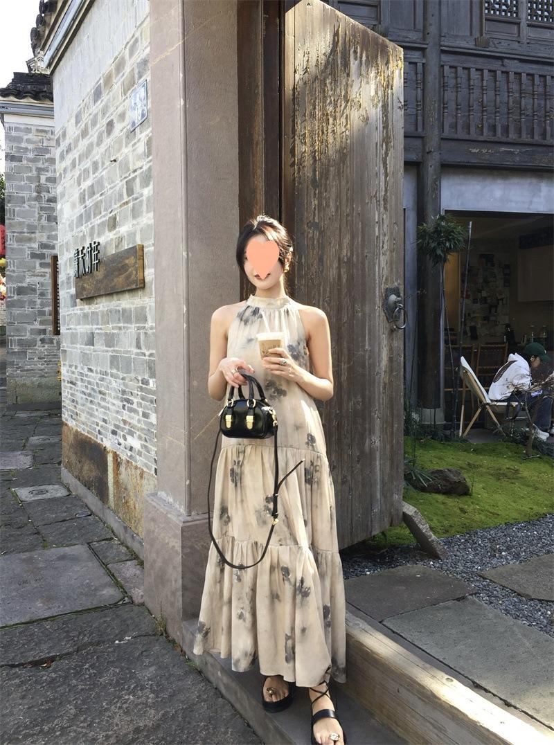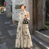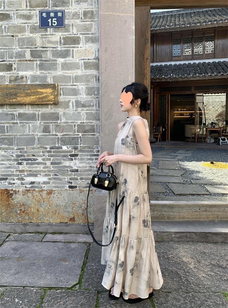 Vestido de verano de estilo chino con cuello teñido anudado, elegante y holgado, con corte en A y hombros descubiertos.