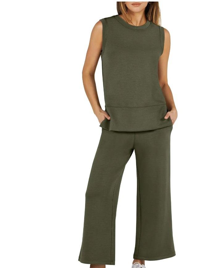 Traje de chaleco con pantalones y cuello redondo sin mangas para mujer, primavera y verano, estilo europeo y americano, 2024