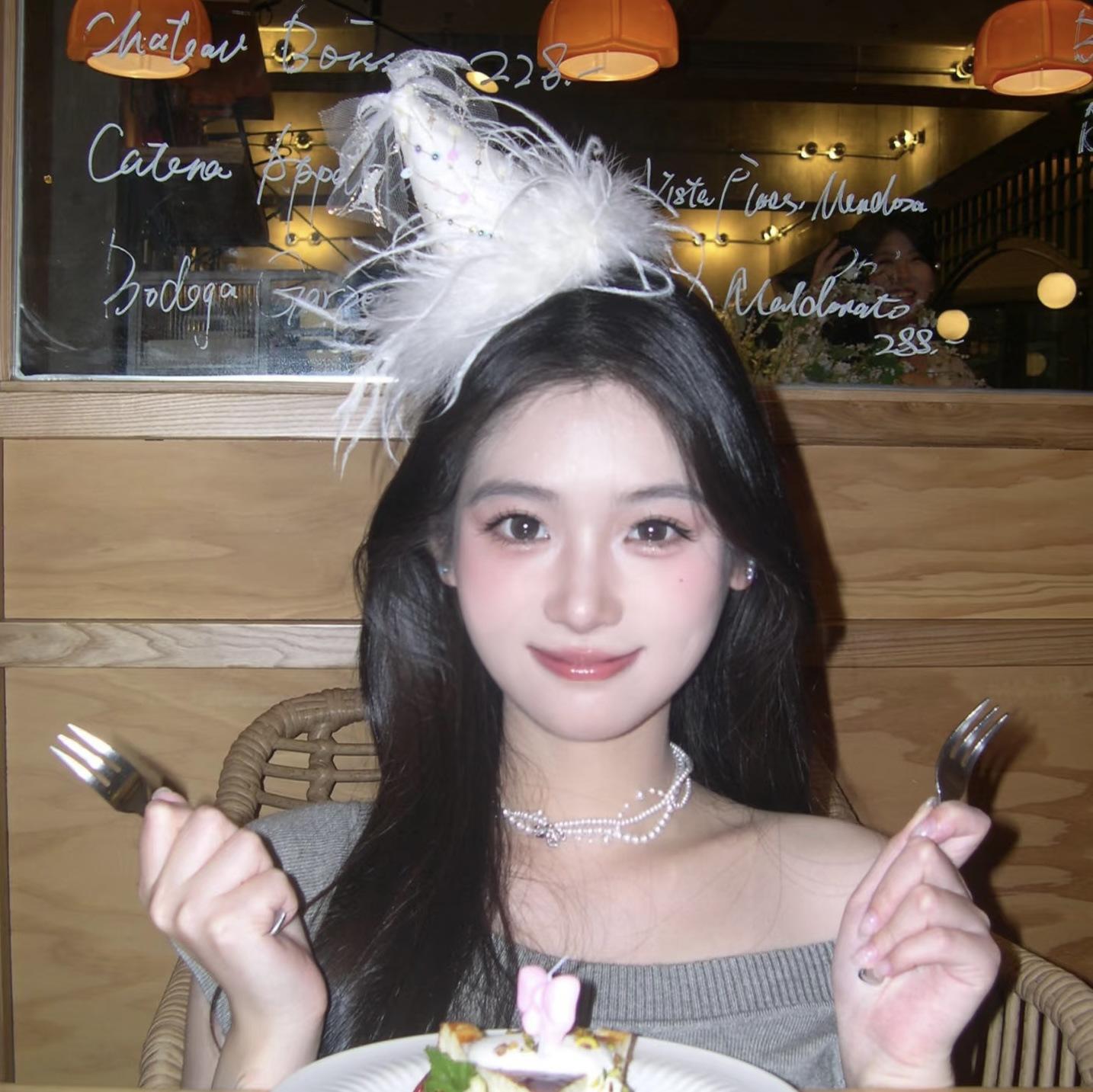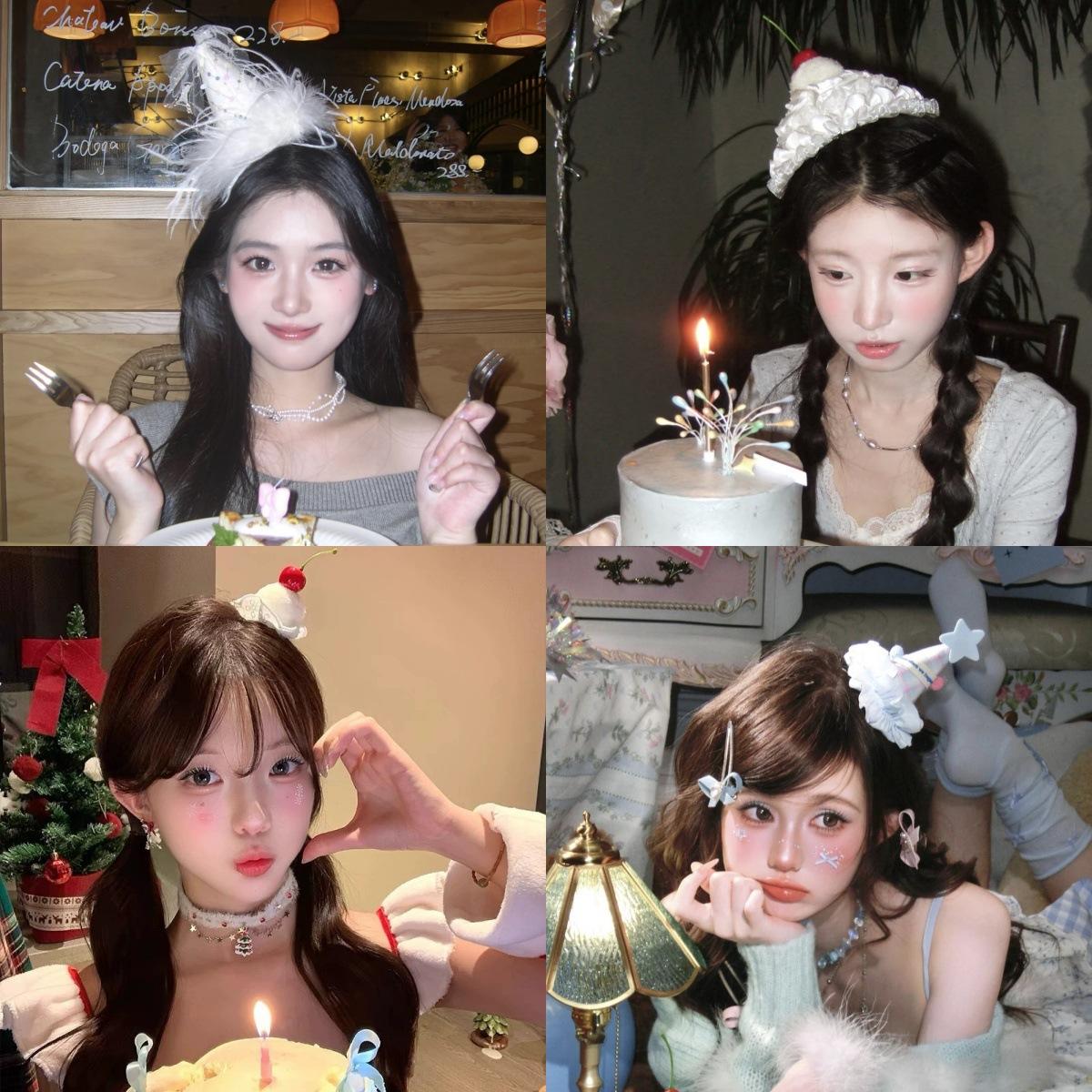 1#Blue star birthday hat clip (da2648), 2#White bow mesh birthday hat clip (jb0458), 3#Pink lace birthday hat ...