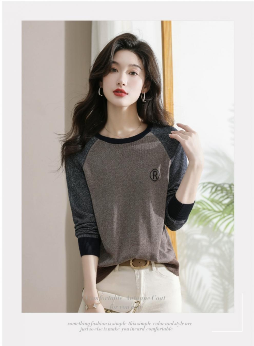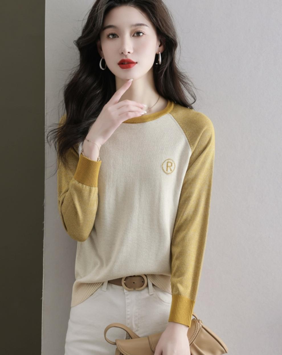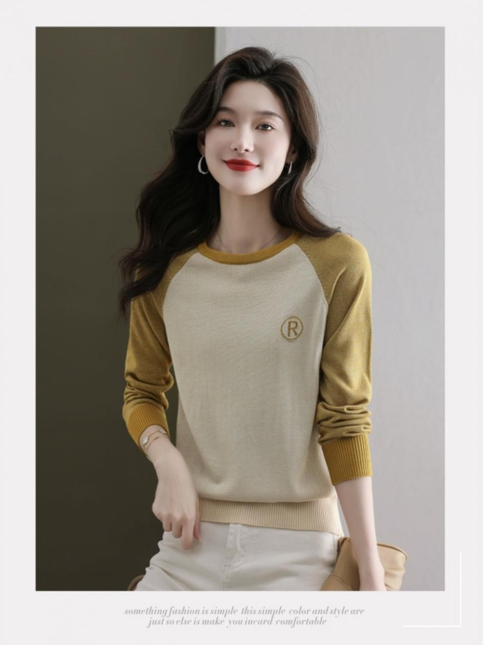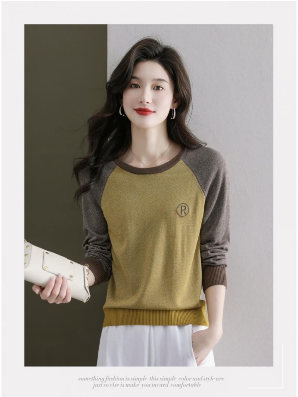 Prendas de punto fino de color a juego, ropa de moda de primavera para mujer, nuevas blusas de manga larga, camisa de seda brillante, primavera y otoño 2024