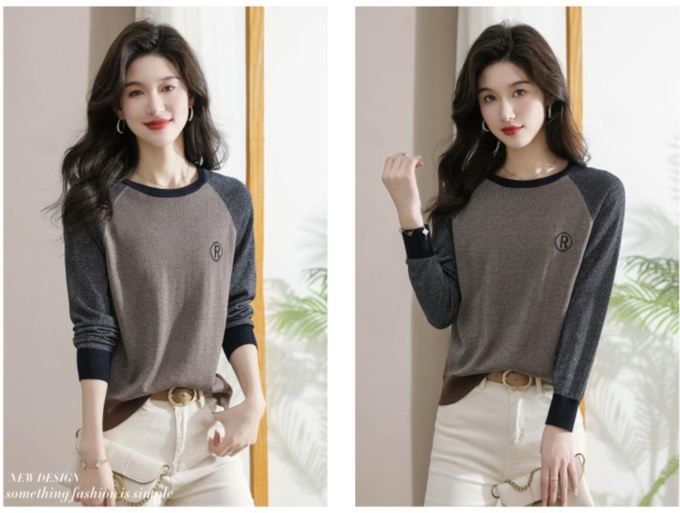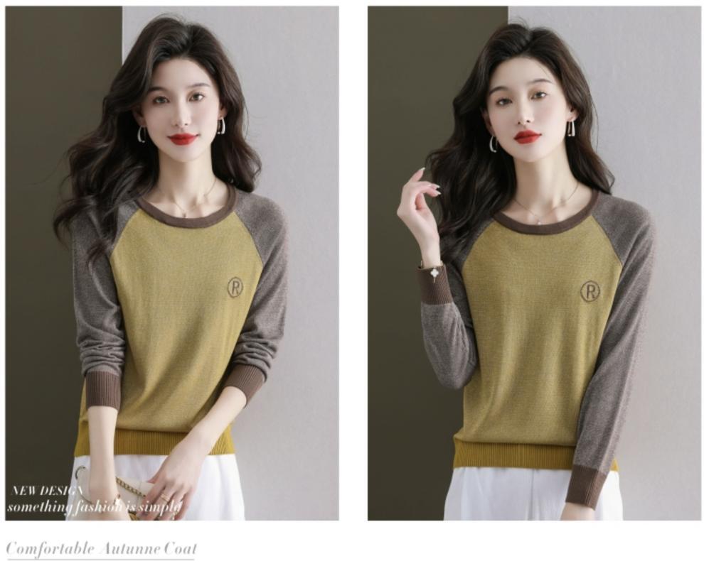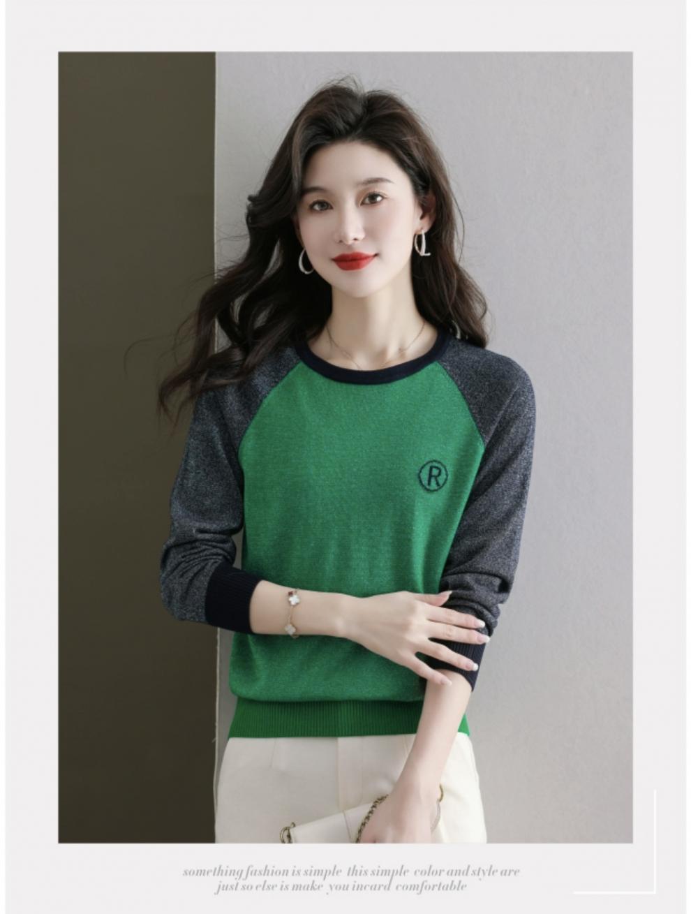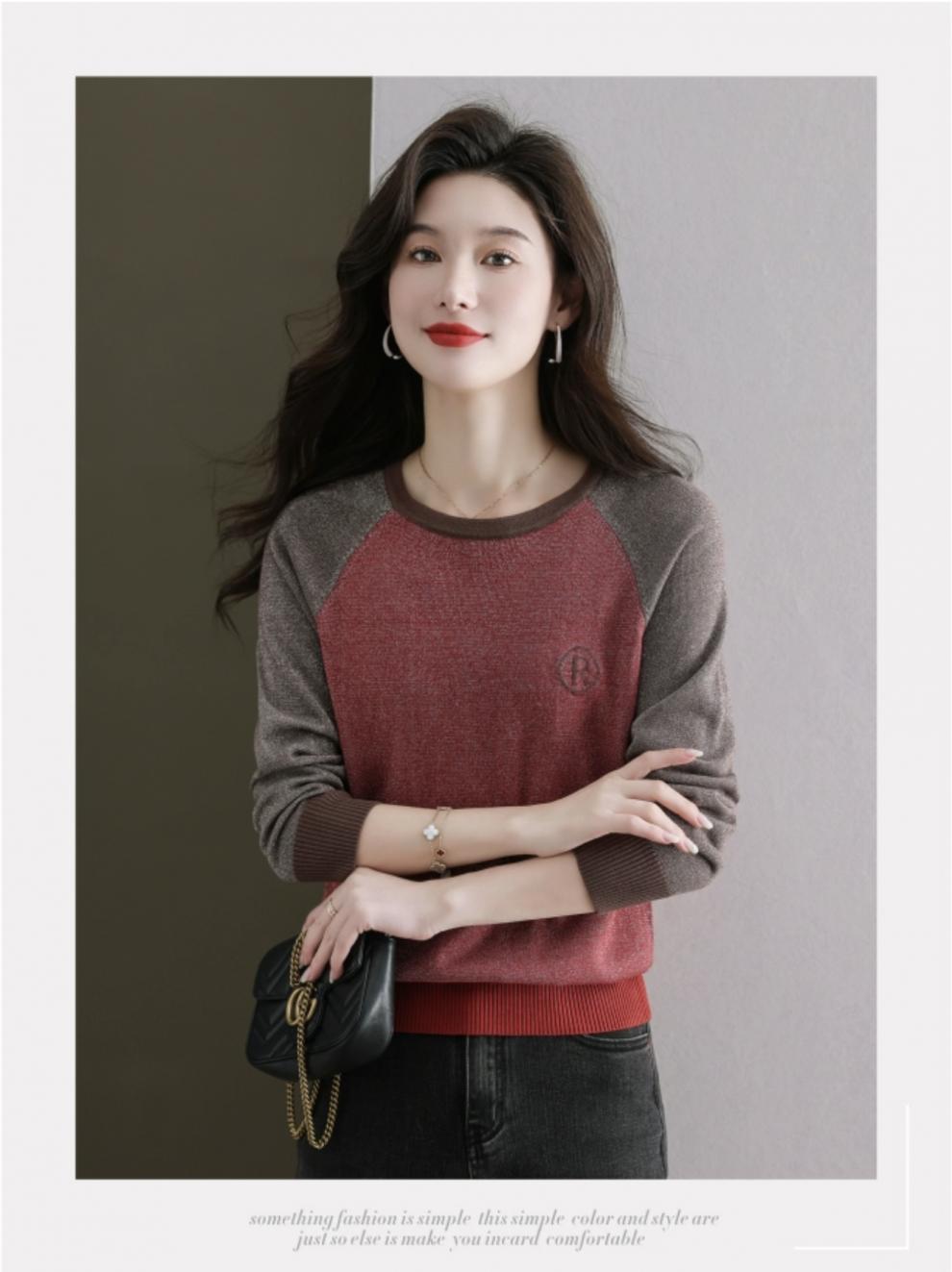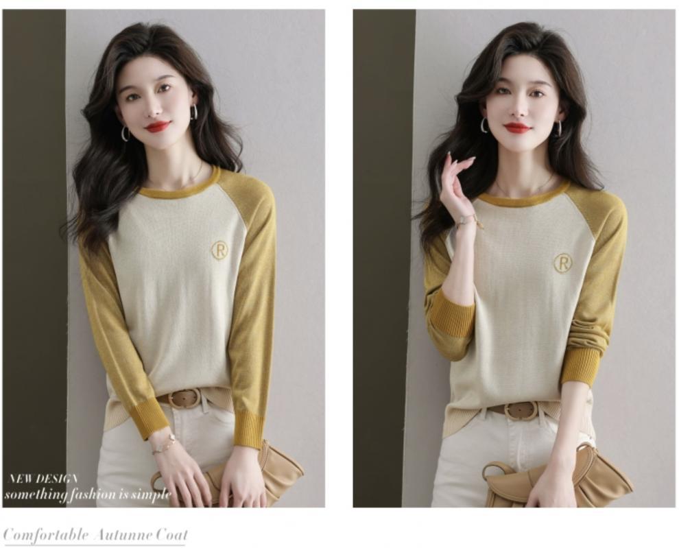 Prendas de punto fino de color a juego, ropa de moda de primavera para mujer, nuevas blusas de manga larga, camisa de seda brillante, primavera y otoño 2024