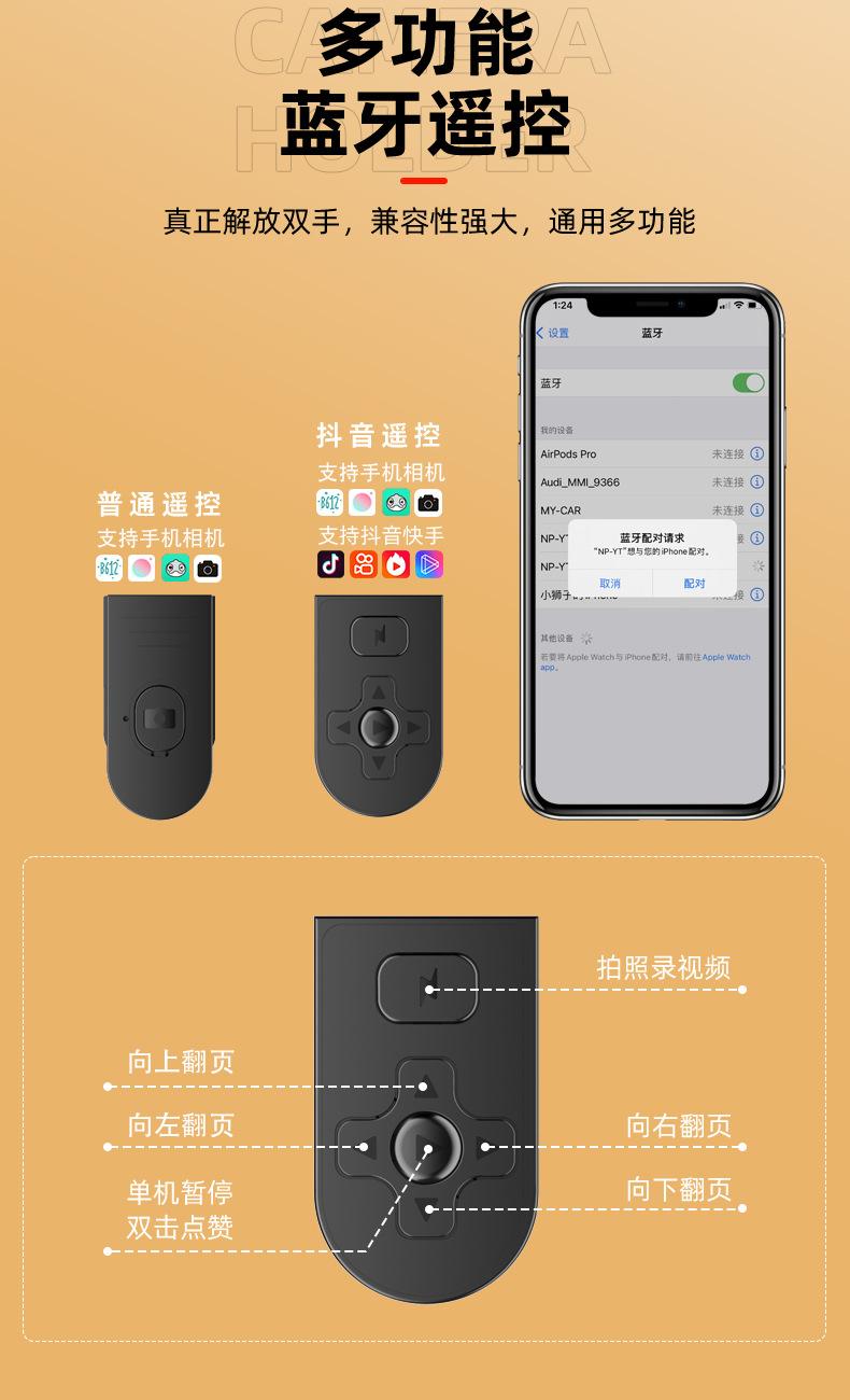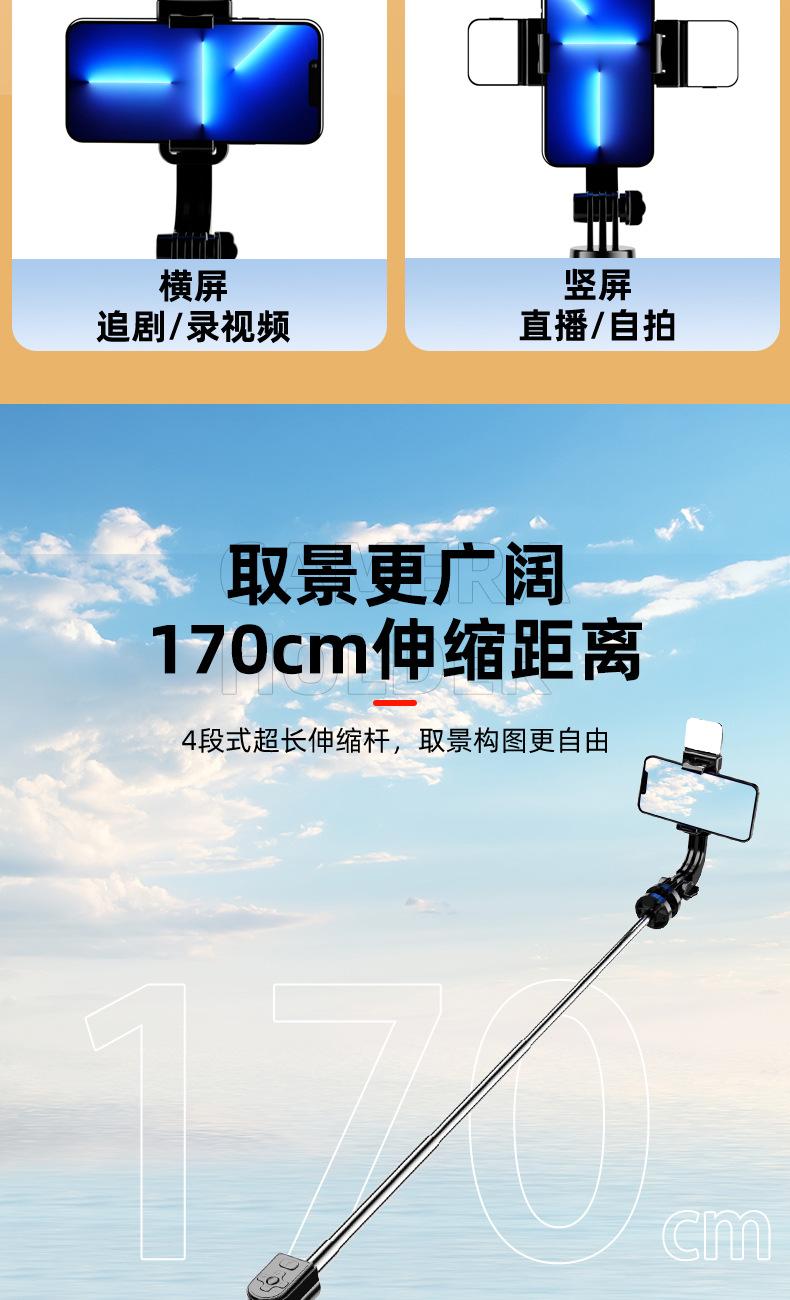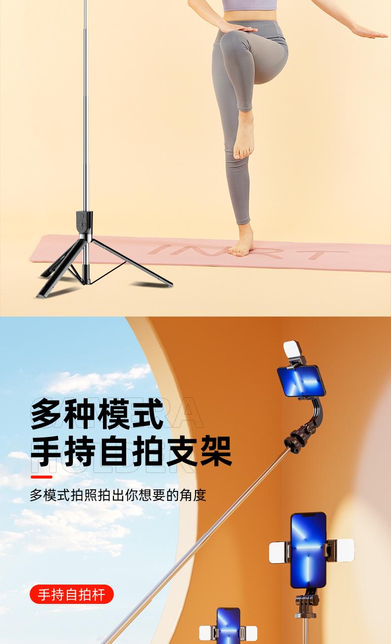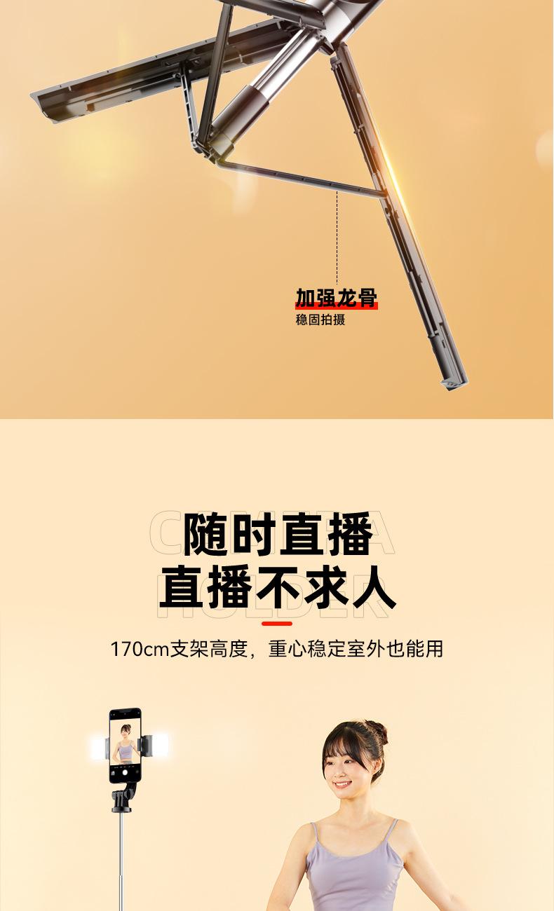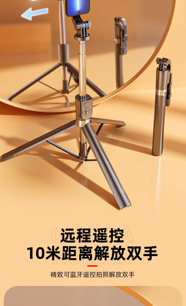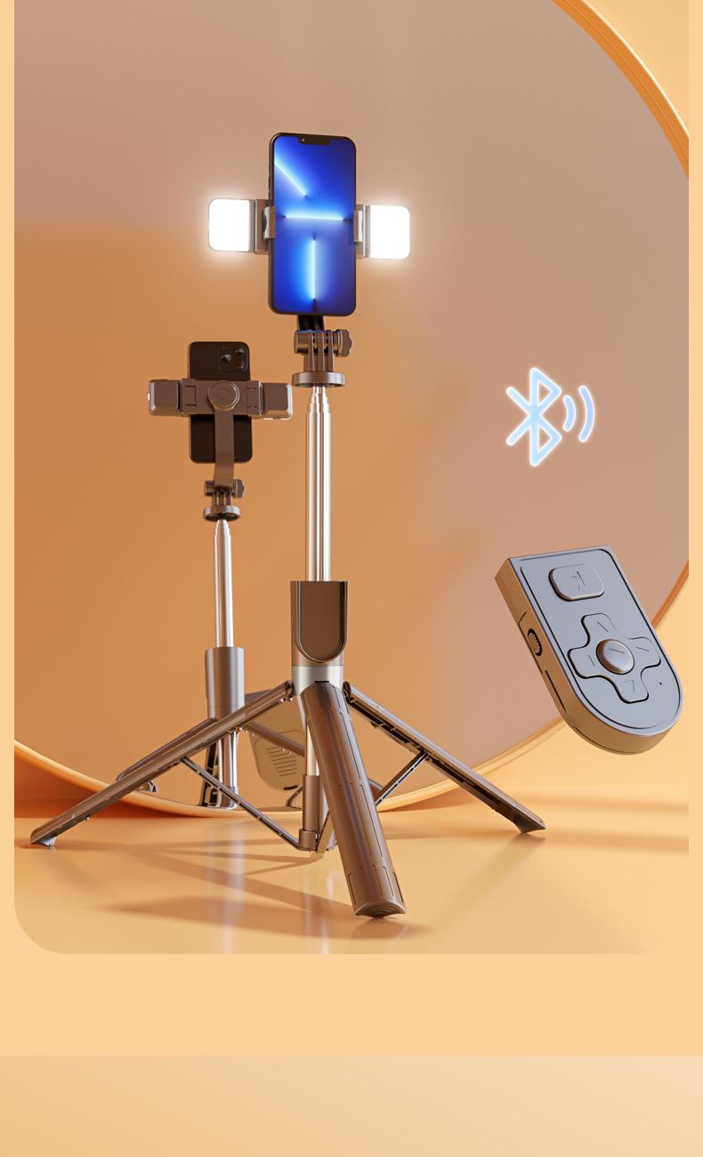 Palo Selfie para Teléfono Móvil de 1.7m Acero Inoxidable Trípode Todo en Uno de Piso Portátil Telescópico Transmisión en Vivo Palo Selfie Bluetooth