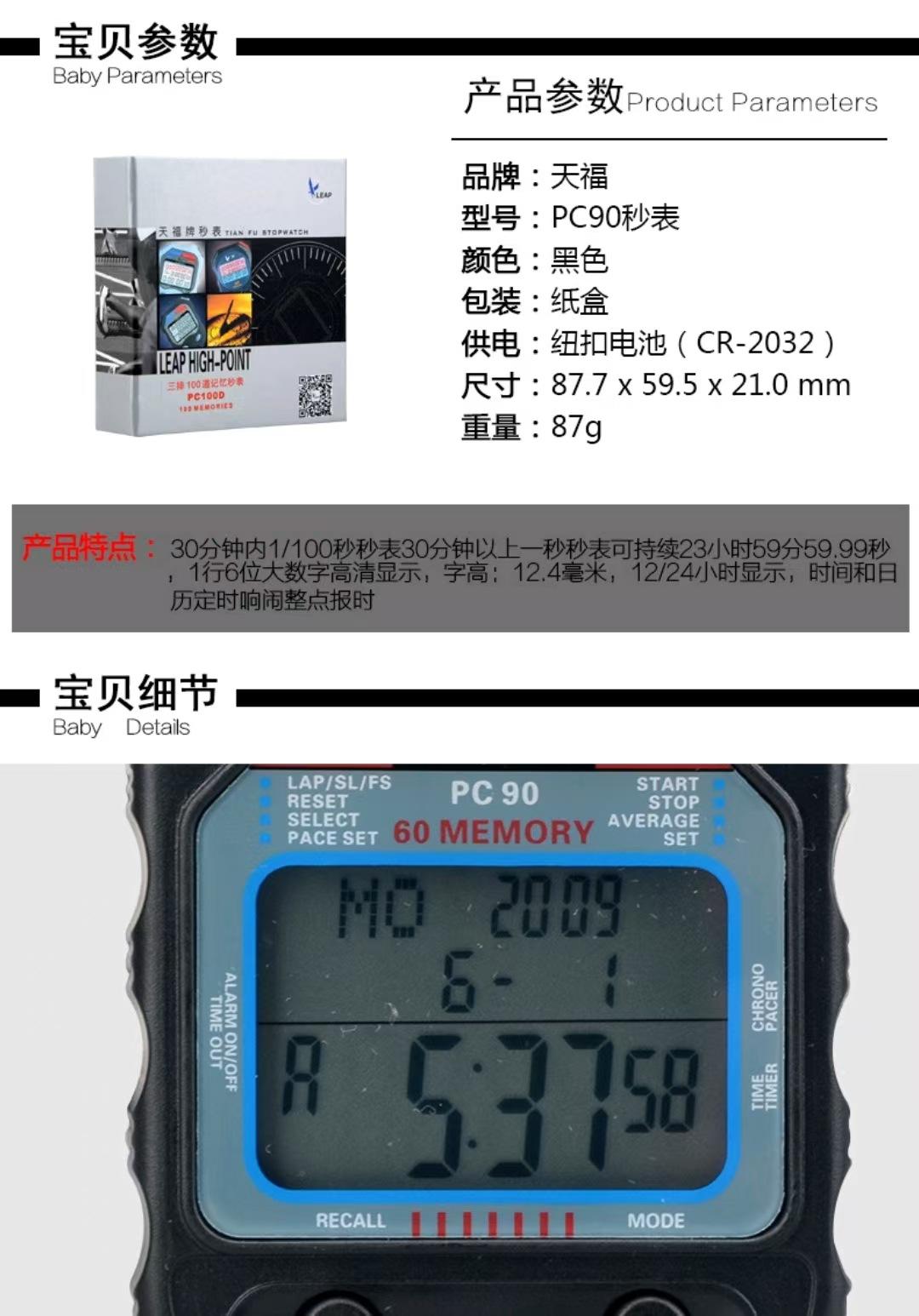 Cronómetro Tianfu PC90 de tres filas y 60 canales para árbitros, medidor de código deportivo especial, pantalla de alta precisión, temporizador