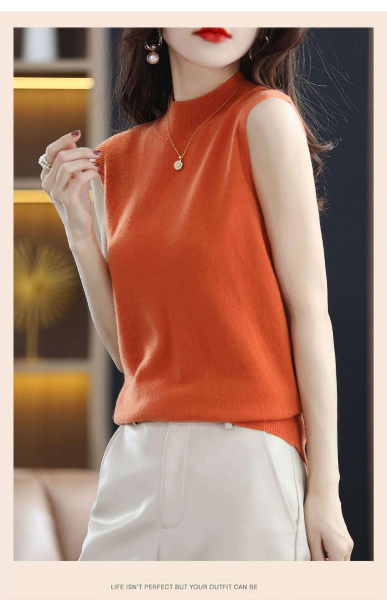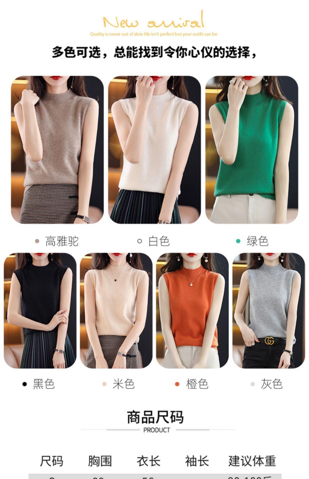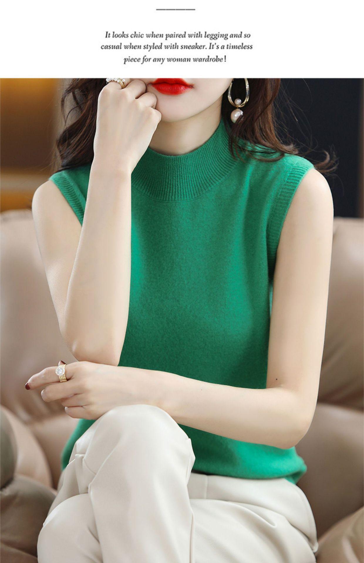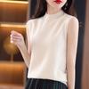 Chaleco de punto de lana para mujer, sin mangas, con cuello alto y tirantes, de color liso, para primavera