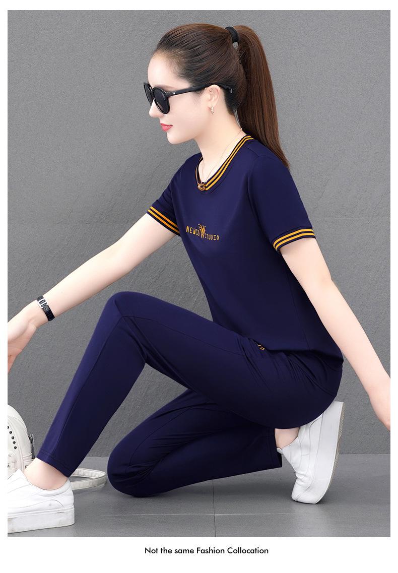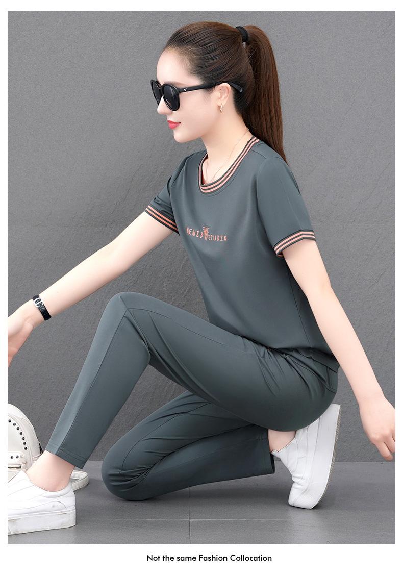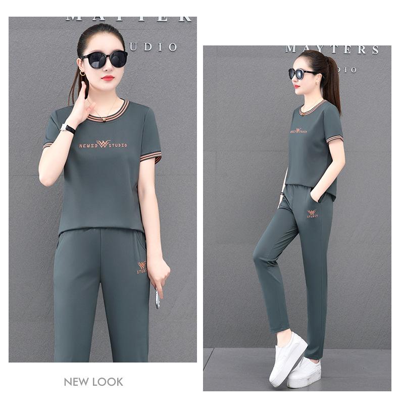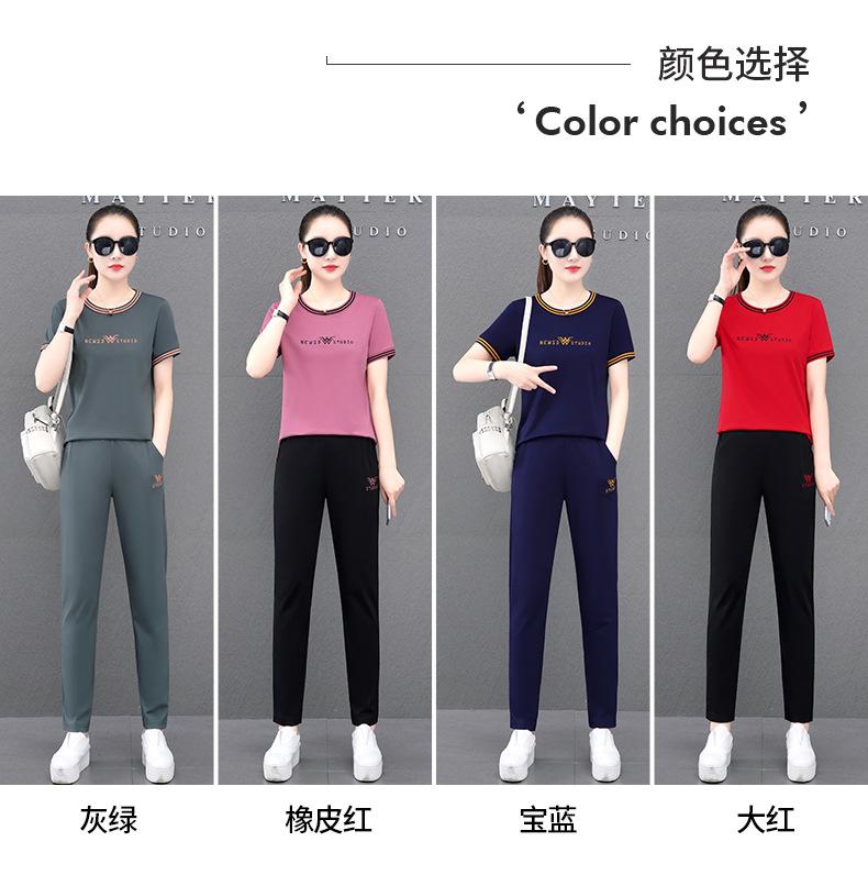 Traje deportivo casual para mujer, verano 2022, nuevo, de moda, estilo occidental, de manga corta, de dos piezas, para correr, moda casual