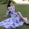 Vestido francés de alta gama, elegante, adelgazante, largo, dividido, para mujer, novedad de verano de 2024
