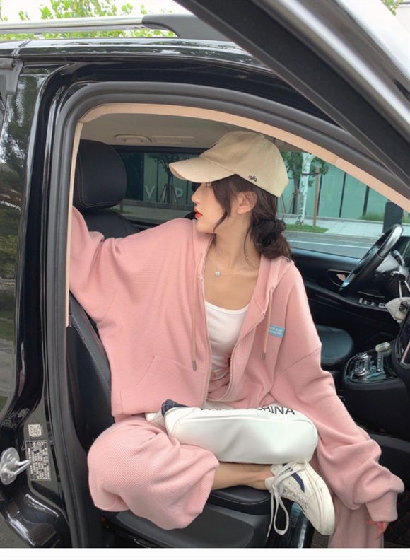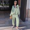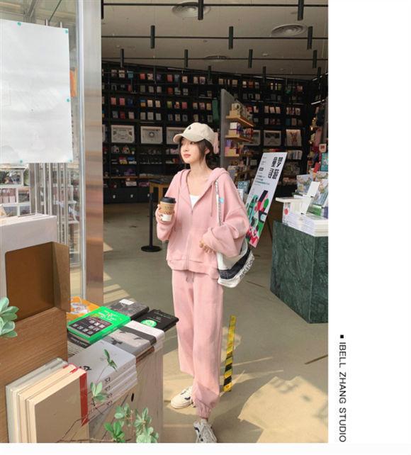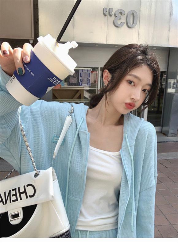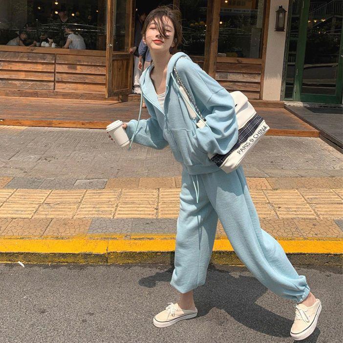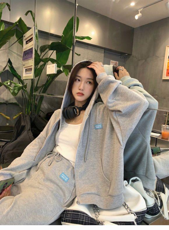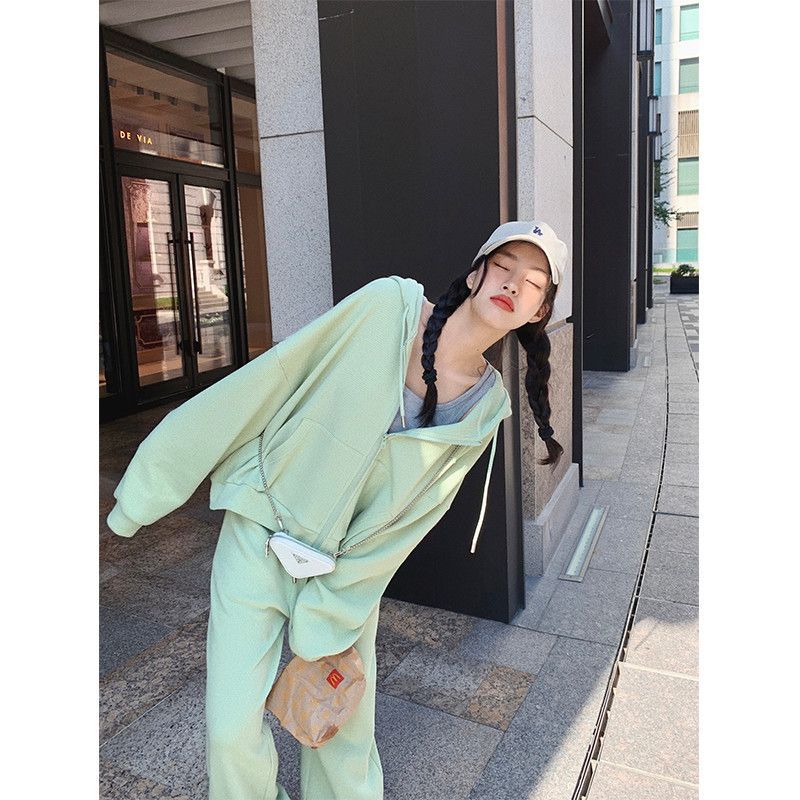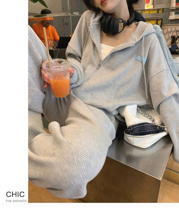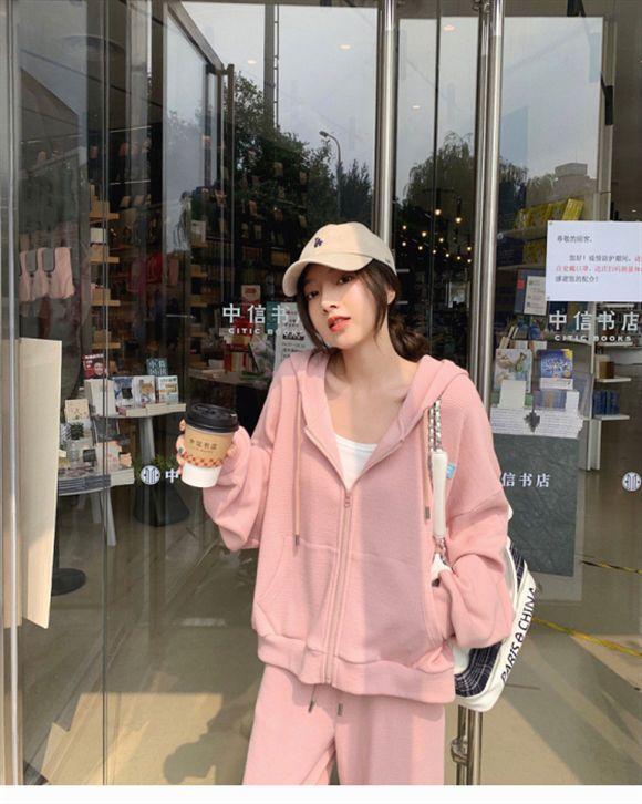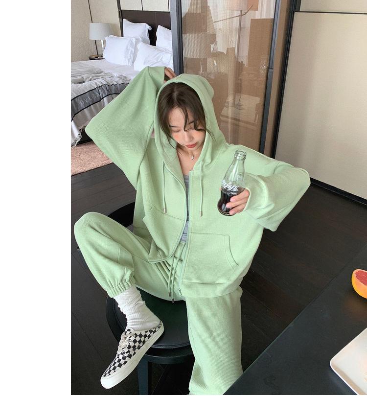 Traje waffle de color sólido para mujer, primavera y otoño, deportivo, para estudiante nuevo, estilo coreano, holgado, moda, suéter casual de dos piezas
