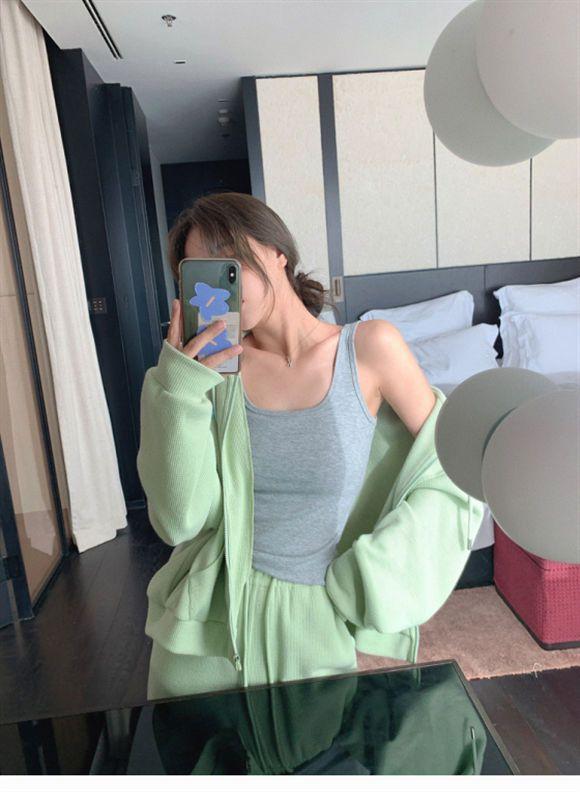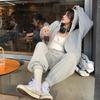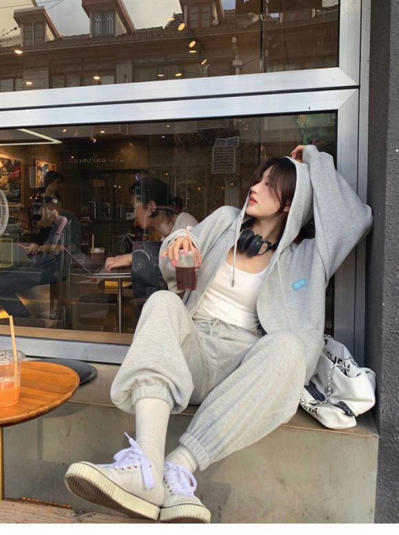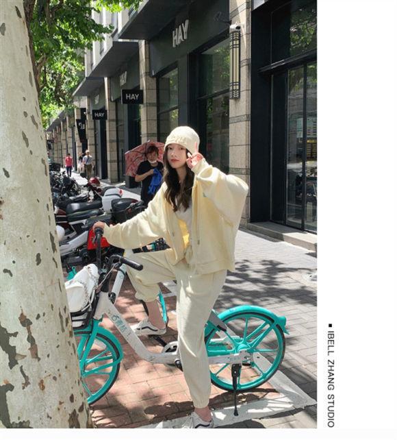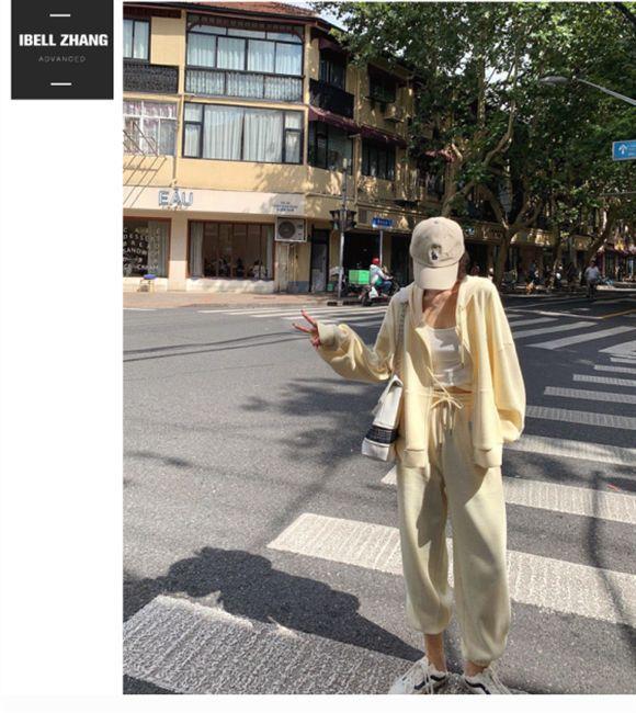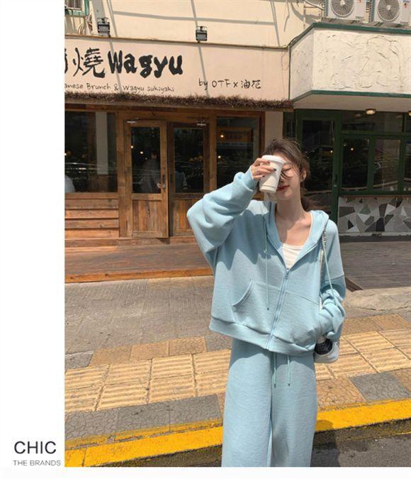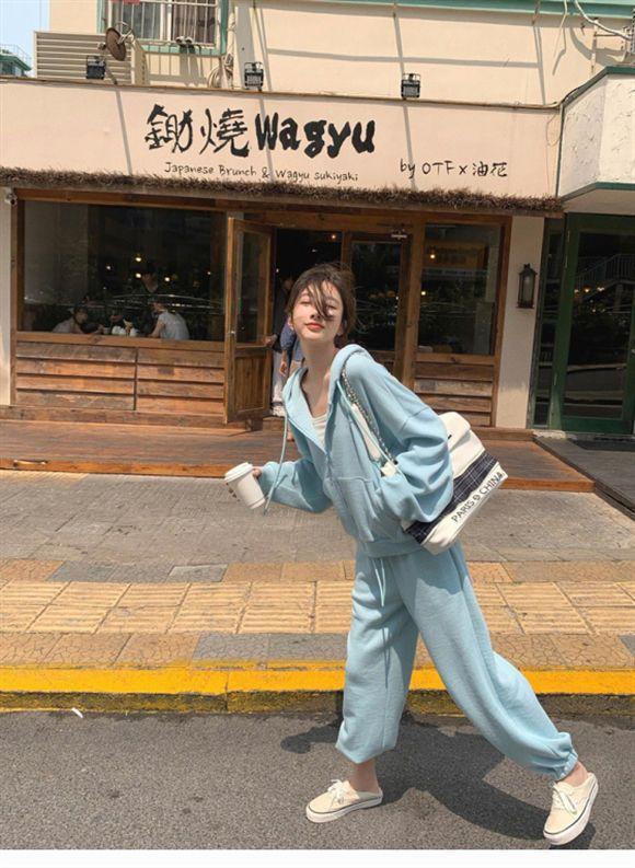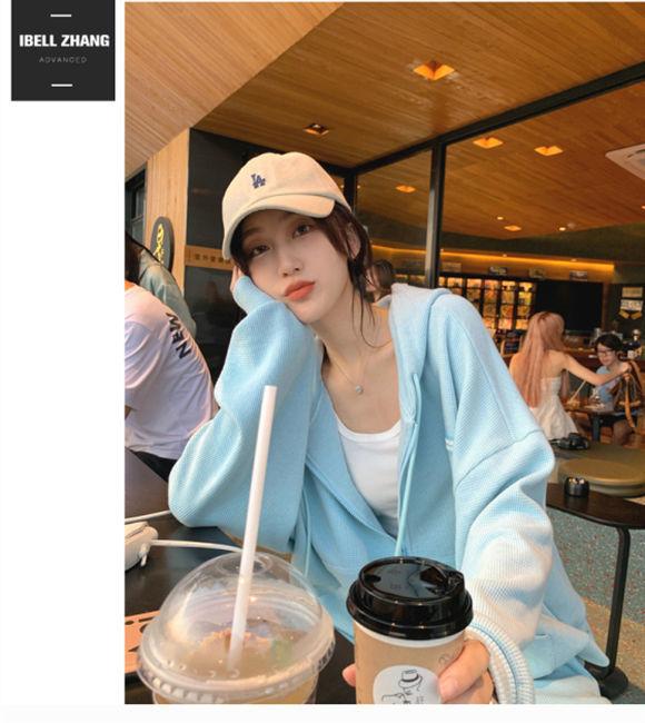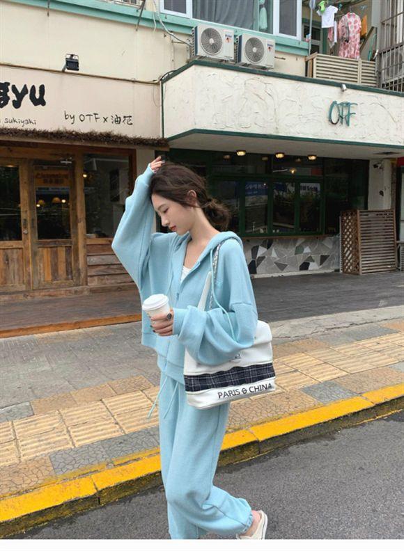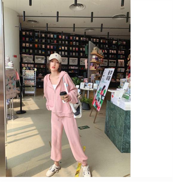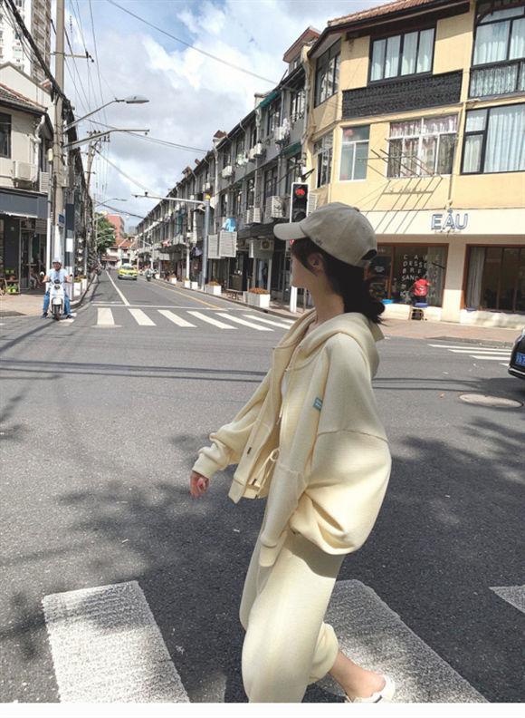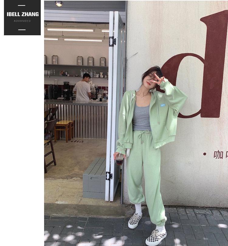 Traje waffle de color sólido para mujer, primavera y otoño, deportivo, para estudiante nuevo, estilo coreano, holgado, moda, suéter casual de dos piezas