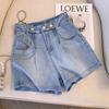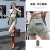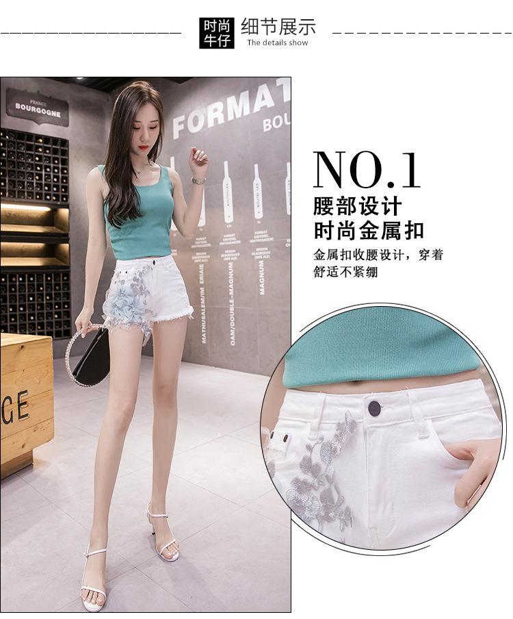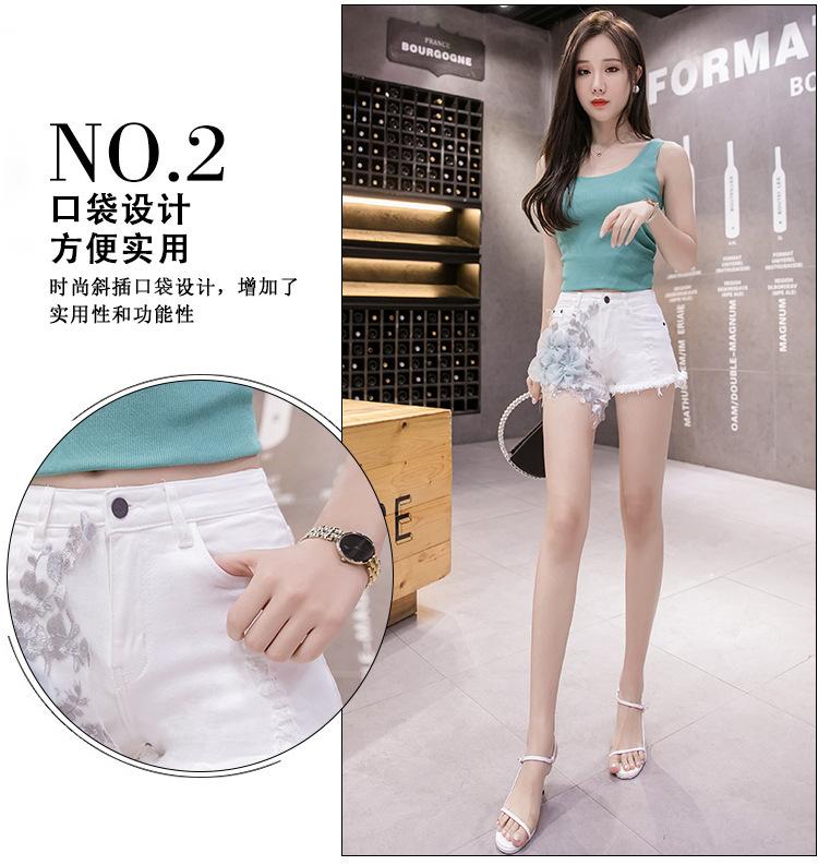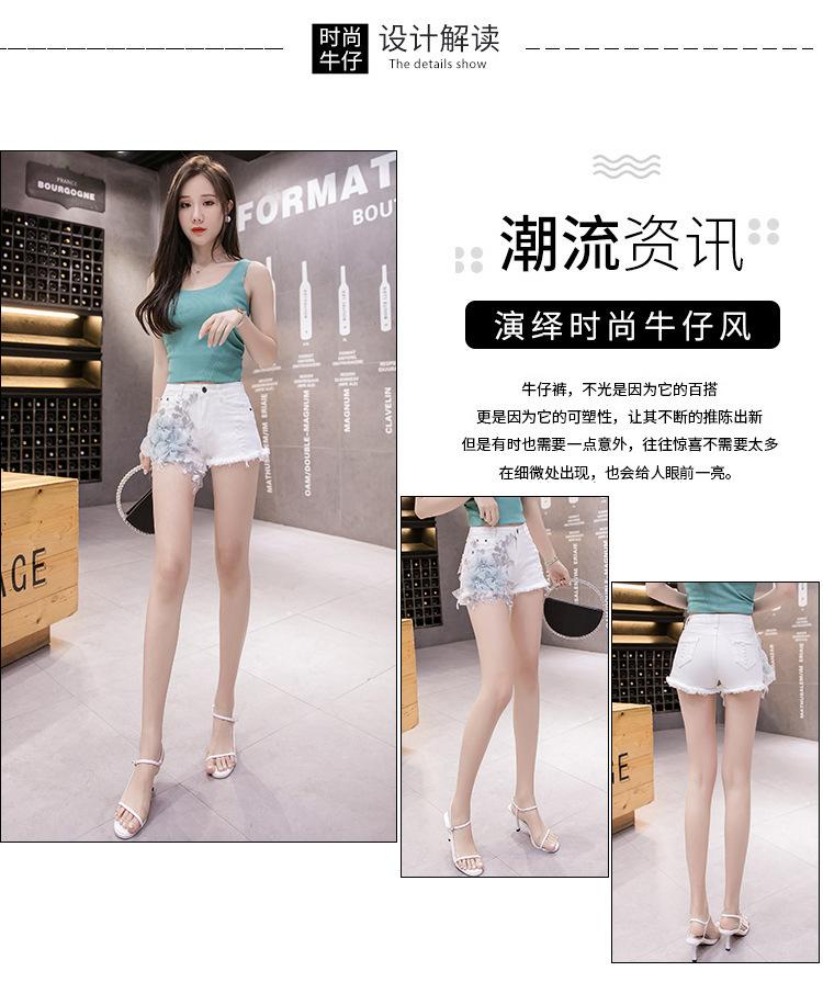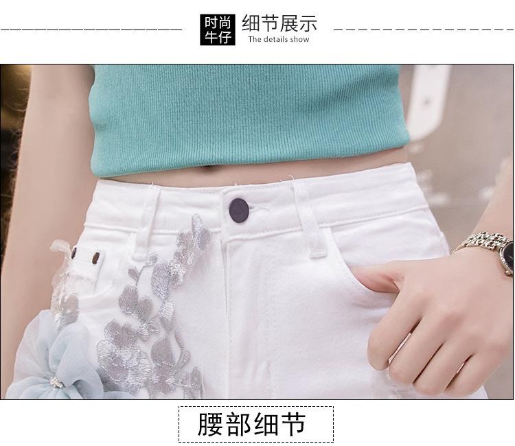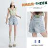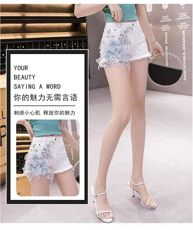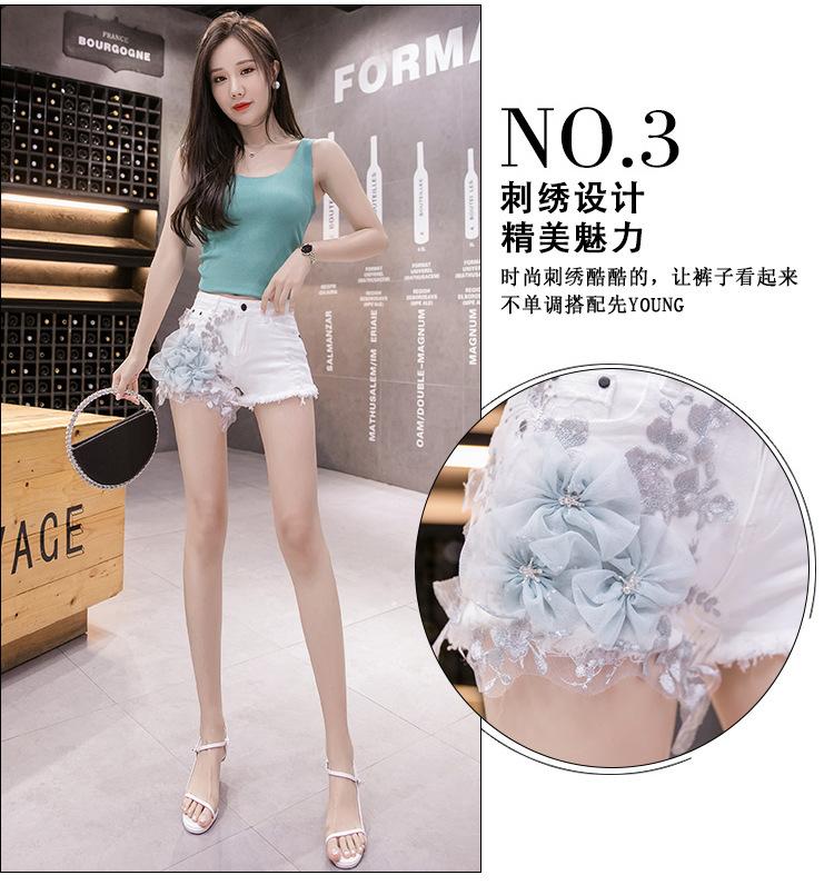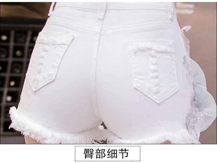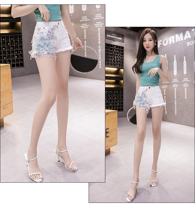 Pantalones cortos vaqueros con estampado de flores tridimensionales para mujer, shorts blancos brillantes con borlas, vaqueros de moda que combinan con todo, primavera y verano de 2024.