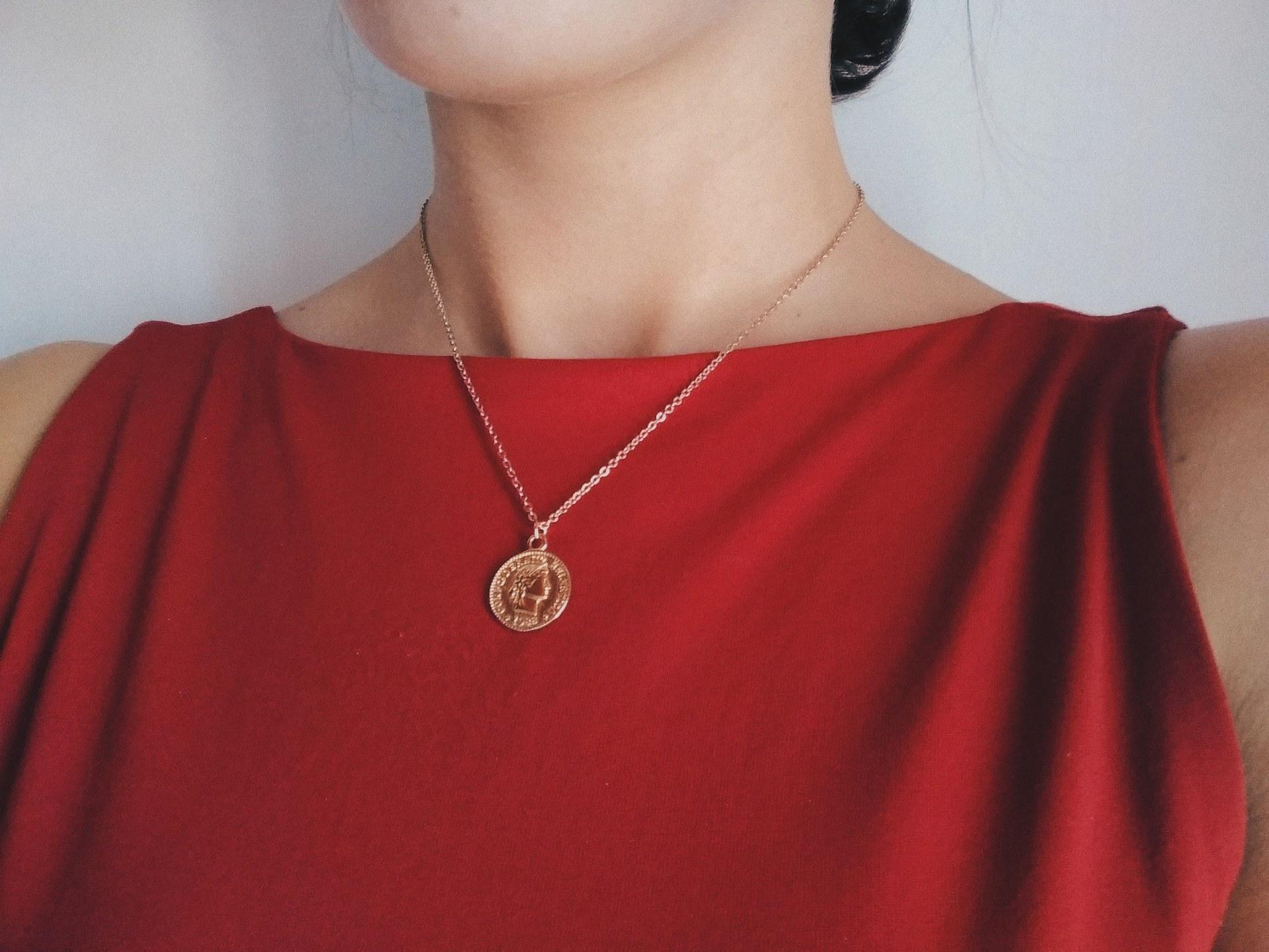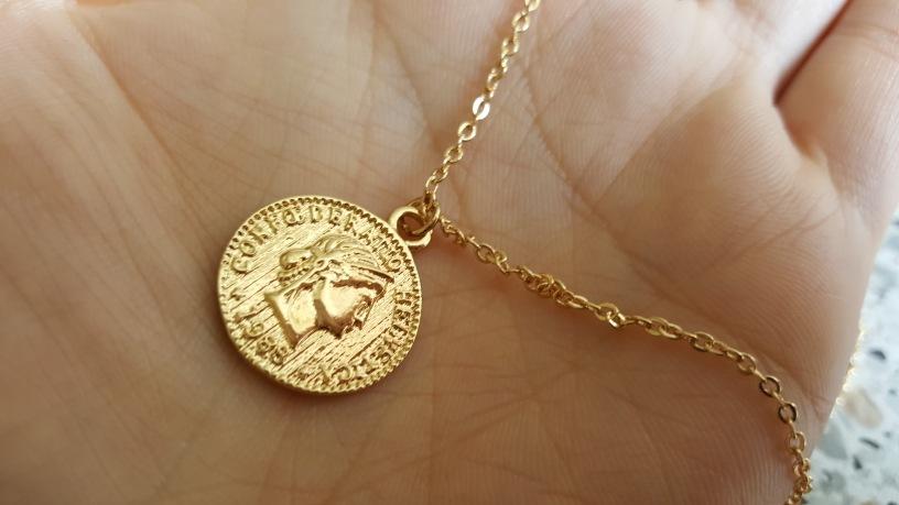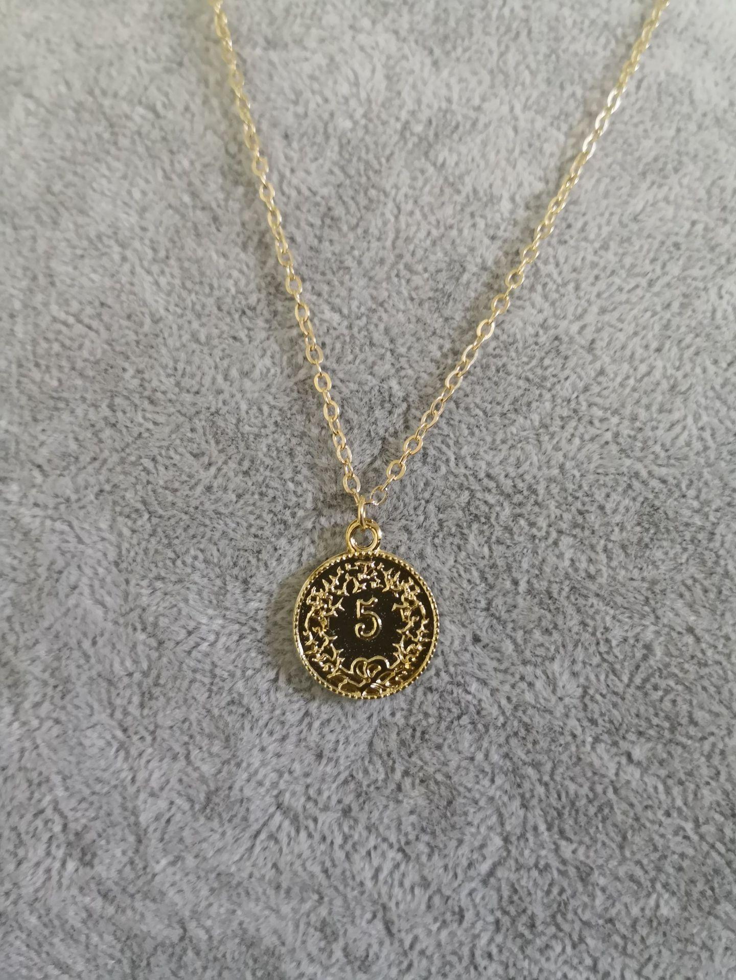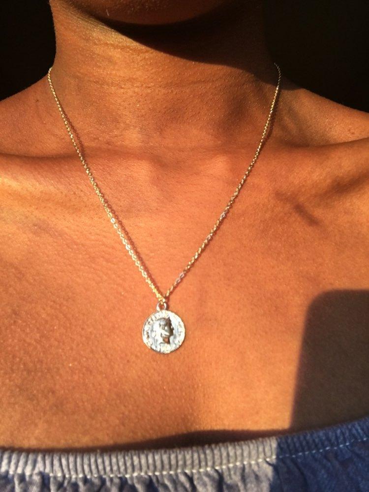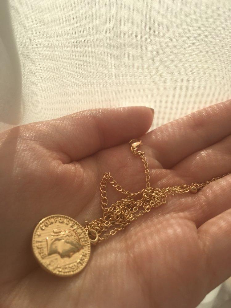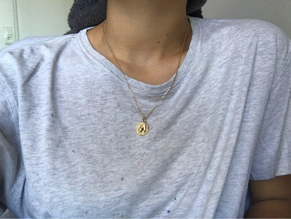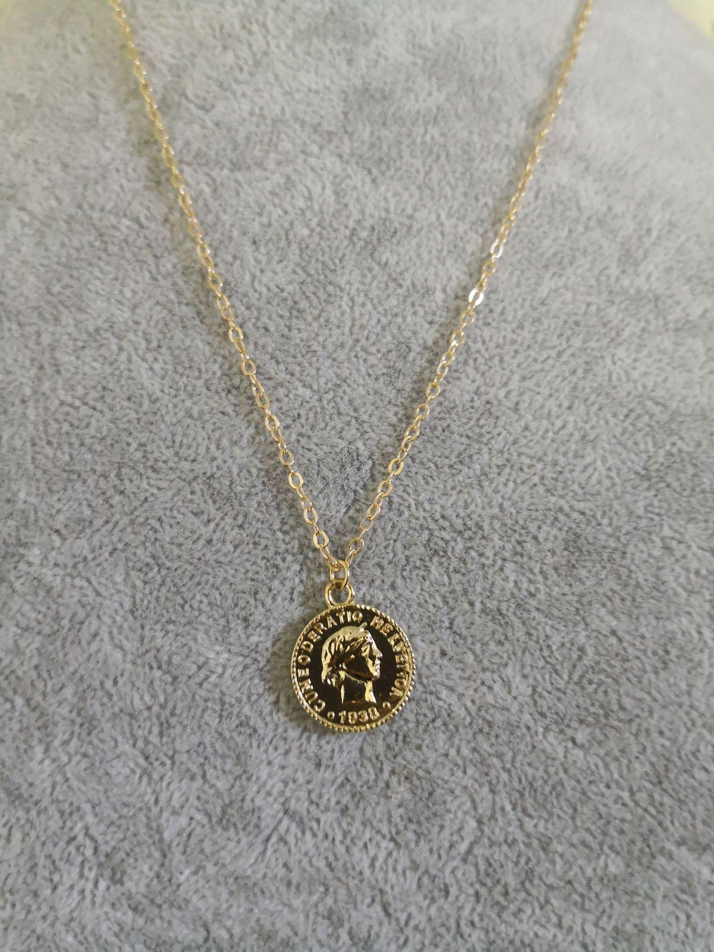 Collar de Moneda de Oro Estilo Europeo y Americano, Colgante de Moneda de Cabeza Vintage, Cadena para Clavícula Estilo Callejero Moderno y Sencillo