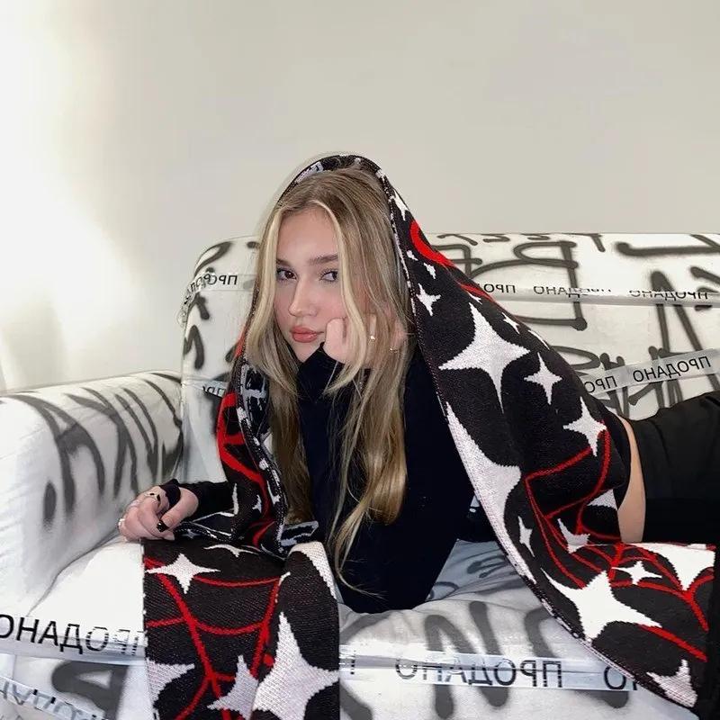 Diablo Bufanda Chal Accesorios Jacquard Punk Europeo y Americano Novedad Creativa Nicho Personalidad Transfronteriza Doble Cara Harajuku Gótico Combinable