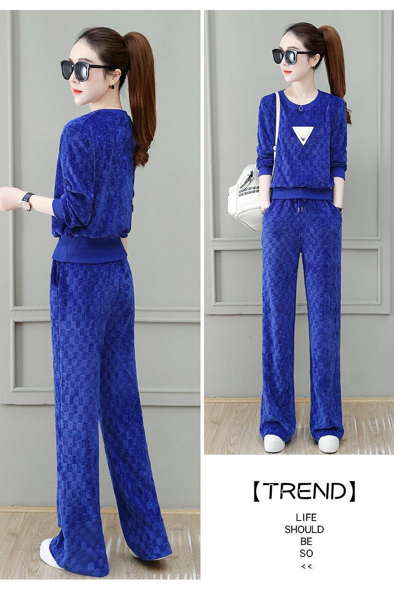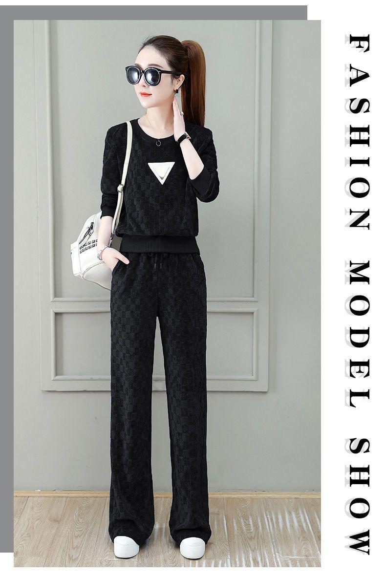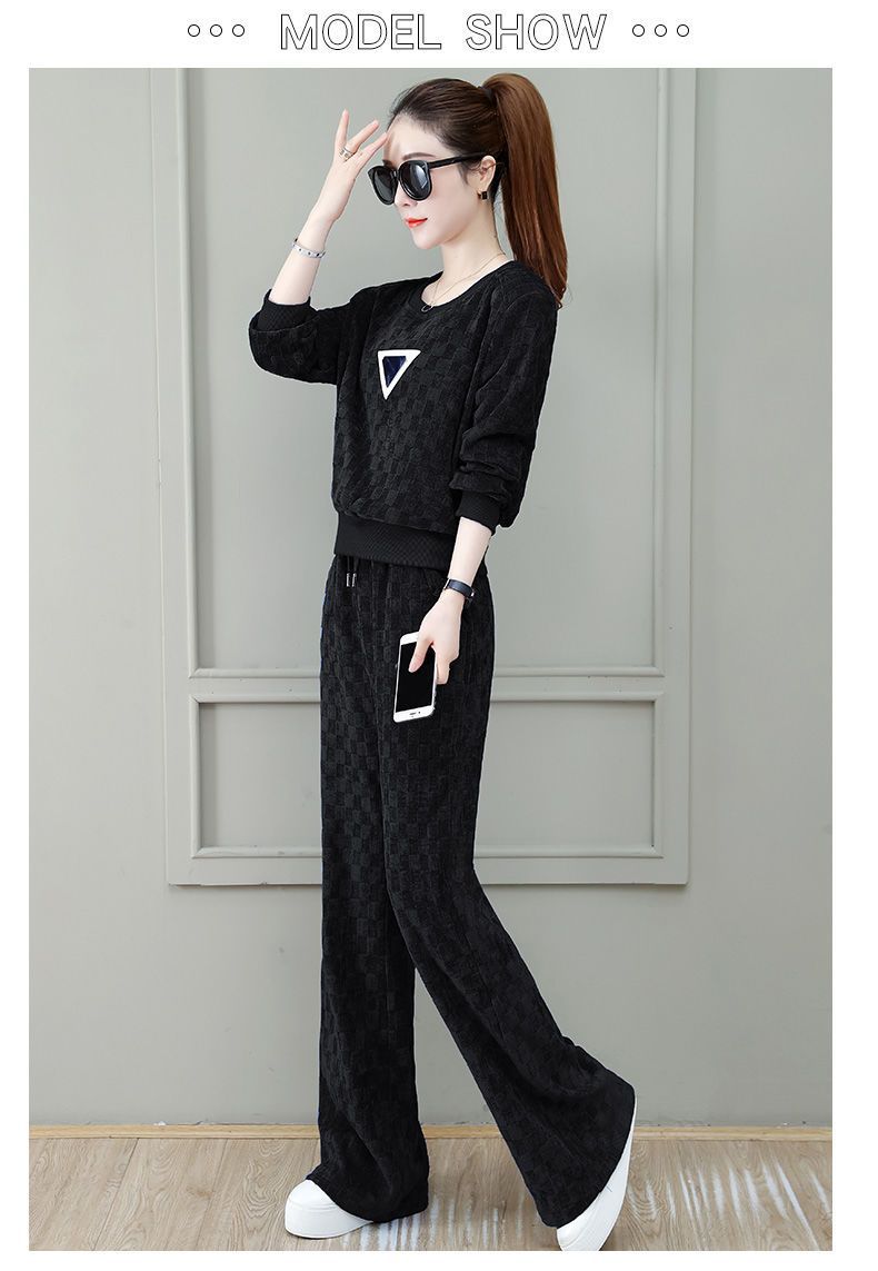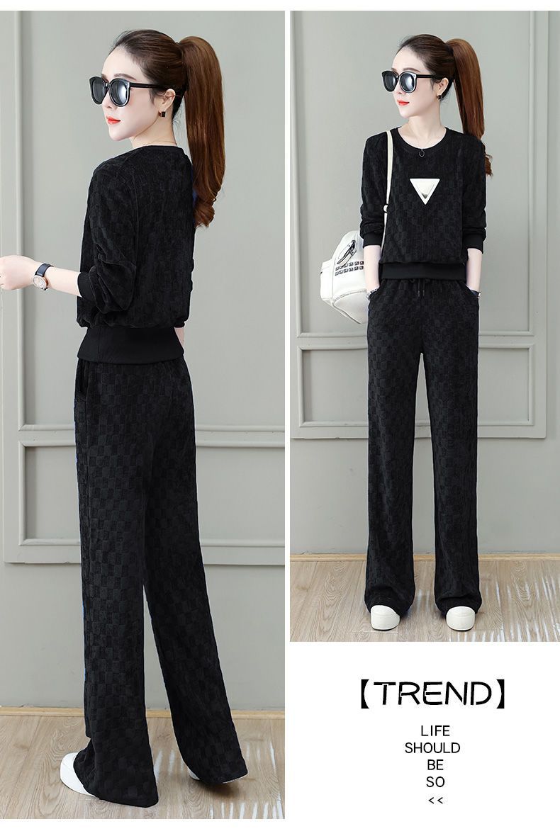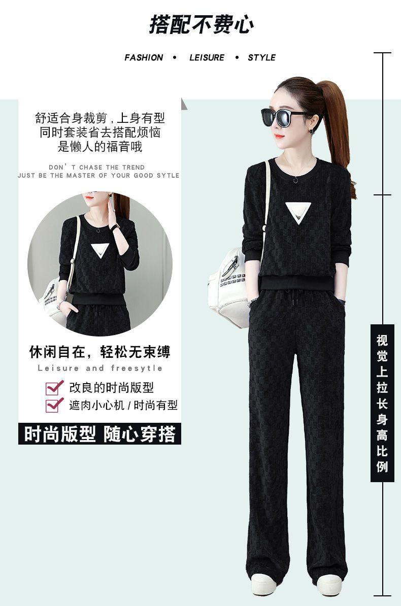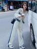 Traje de Moda para Mujer Primavera y Otoño 2025 Transfronterizo Coreano Nuevo Elegante Talla Grande Manga Larga Pantalones de Pierna Ancha Conjunto de Dos Piezas