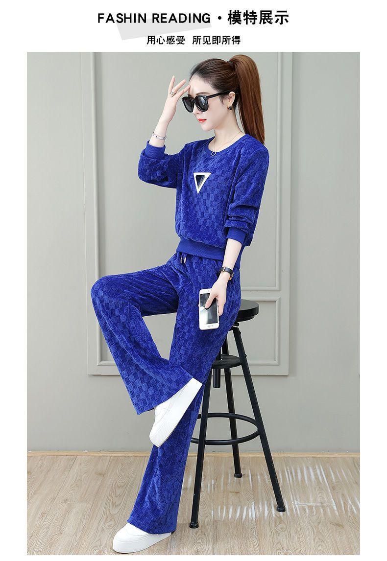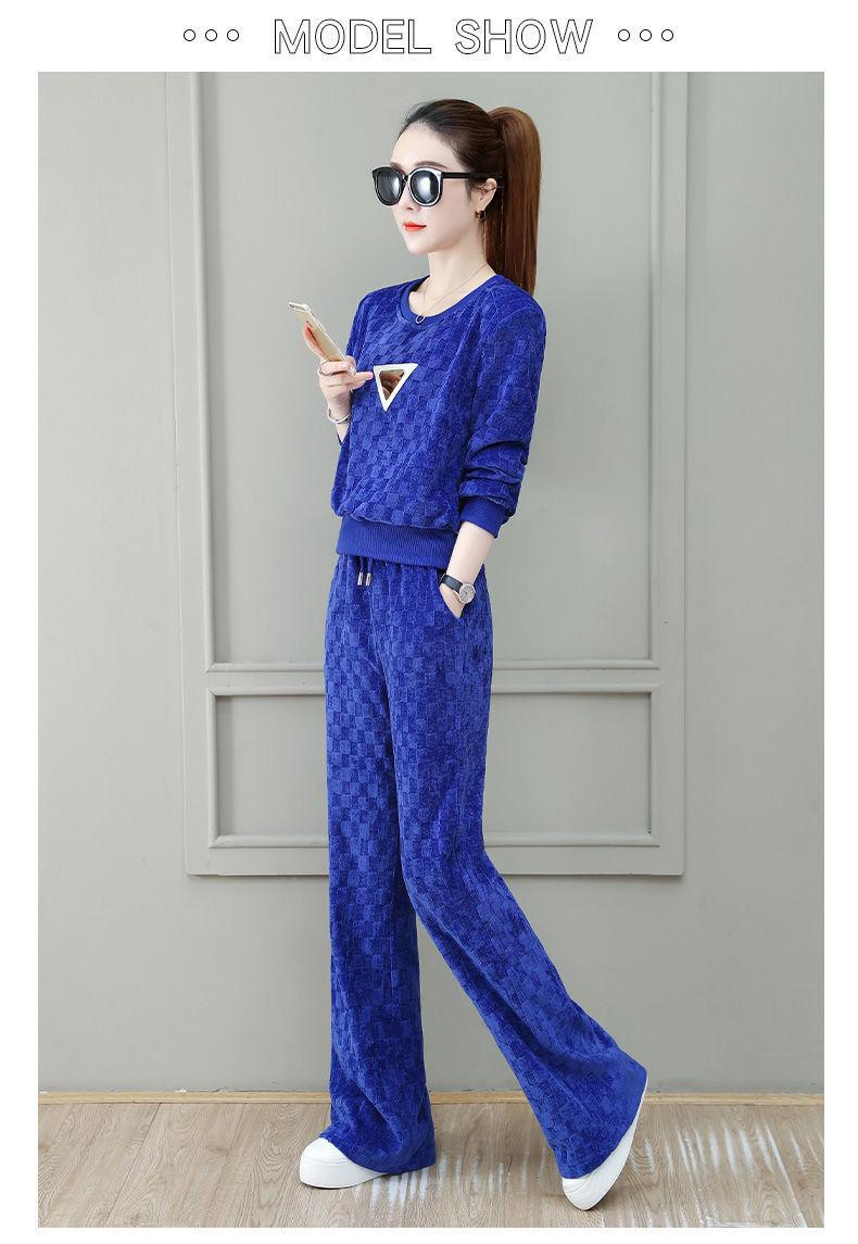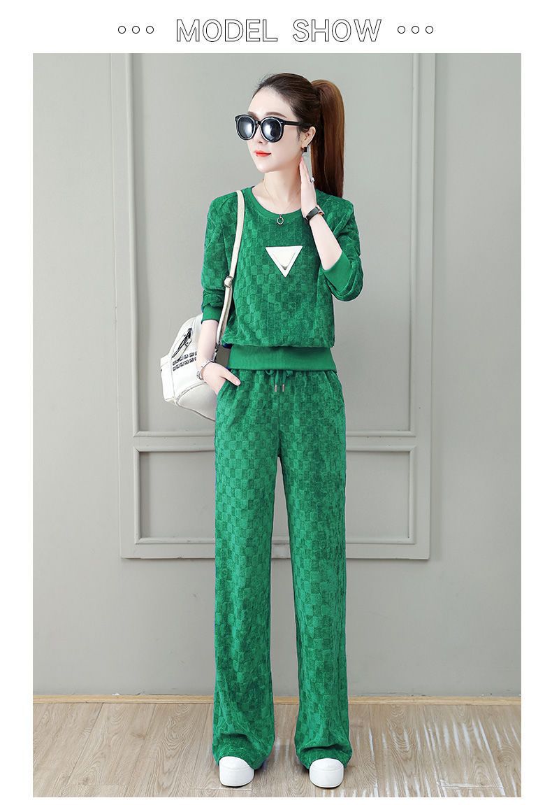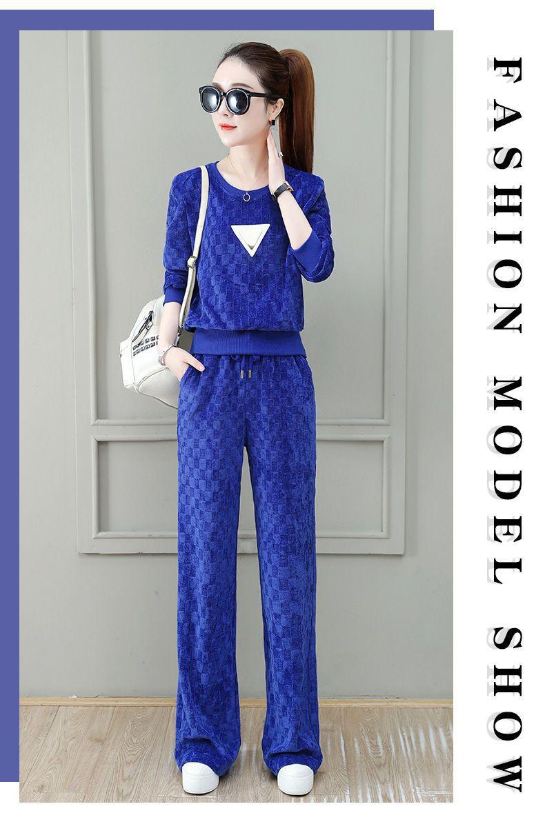 Traje de Moda para Mujer Primavera y Otoño 2025 Transfronterizo Coreano Nuevo Elegante Talla Grande Manga Larga Pantalones de Pierna Ancha Conjunto de Dos Piezas