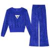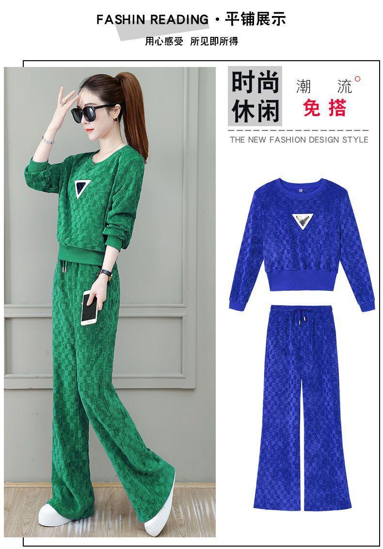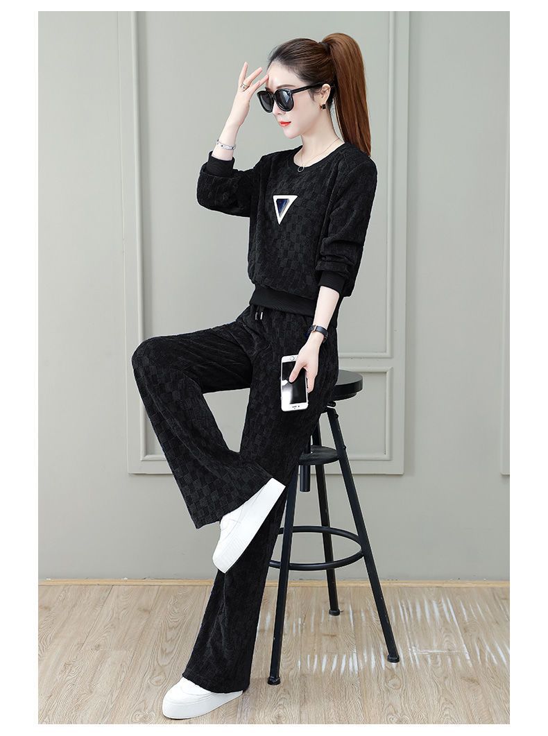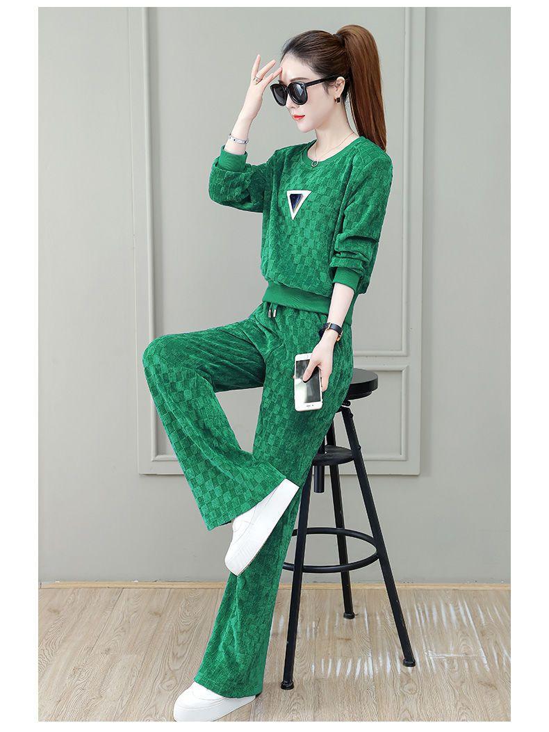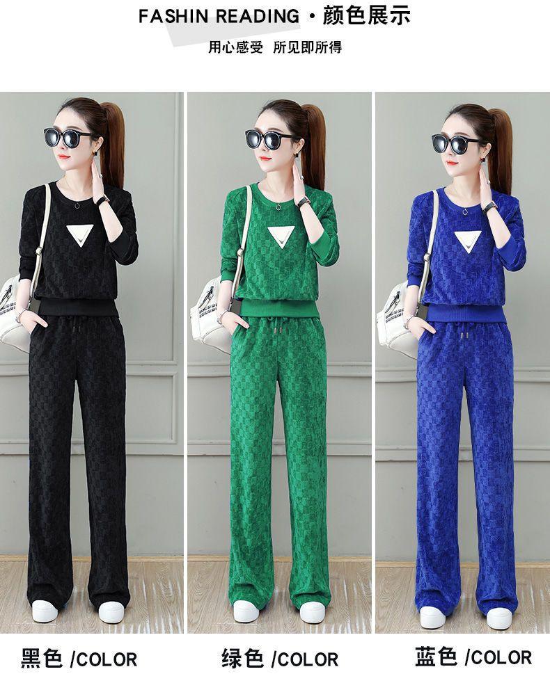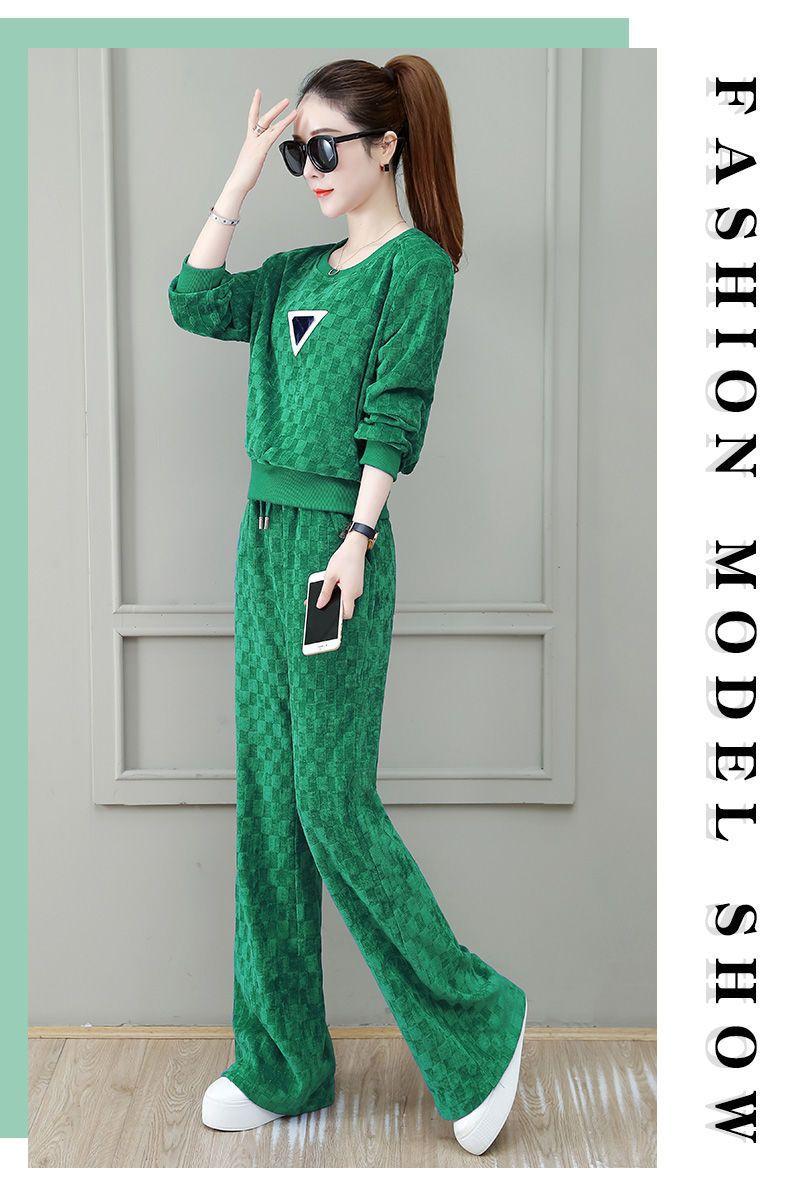 Traje de Moda para Mujer Primavera y Otoño 2025 Transfronterizo Coreano Nuevo Elegante Talla Grande Manga Larga Pantalones de Pierna Ancha Conjunto de Dos Piezas