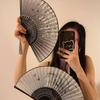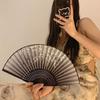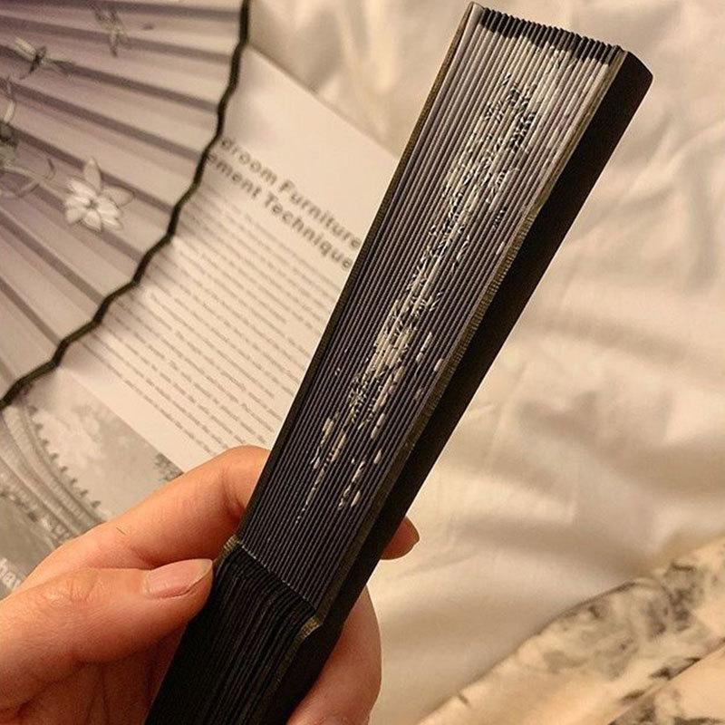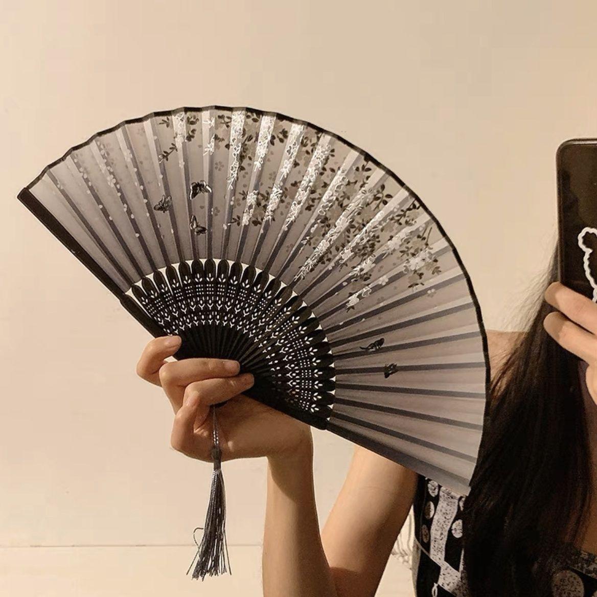 Abanico pequeño plegable de estilo chino para llevar, estilo antiguo Hanfu, vestido antiguo de danza, nuevo abanico de bambú negro de estilo chino para mujer