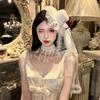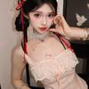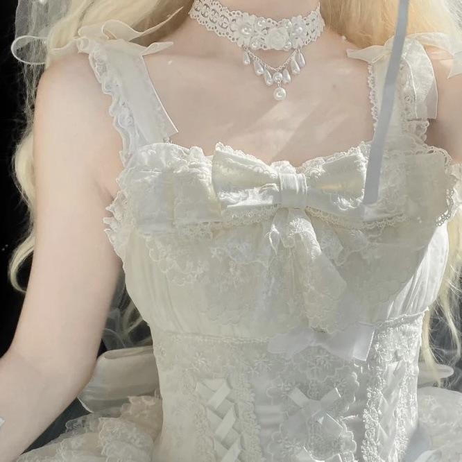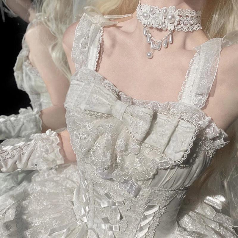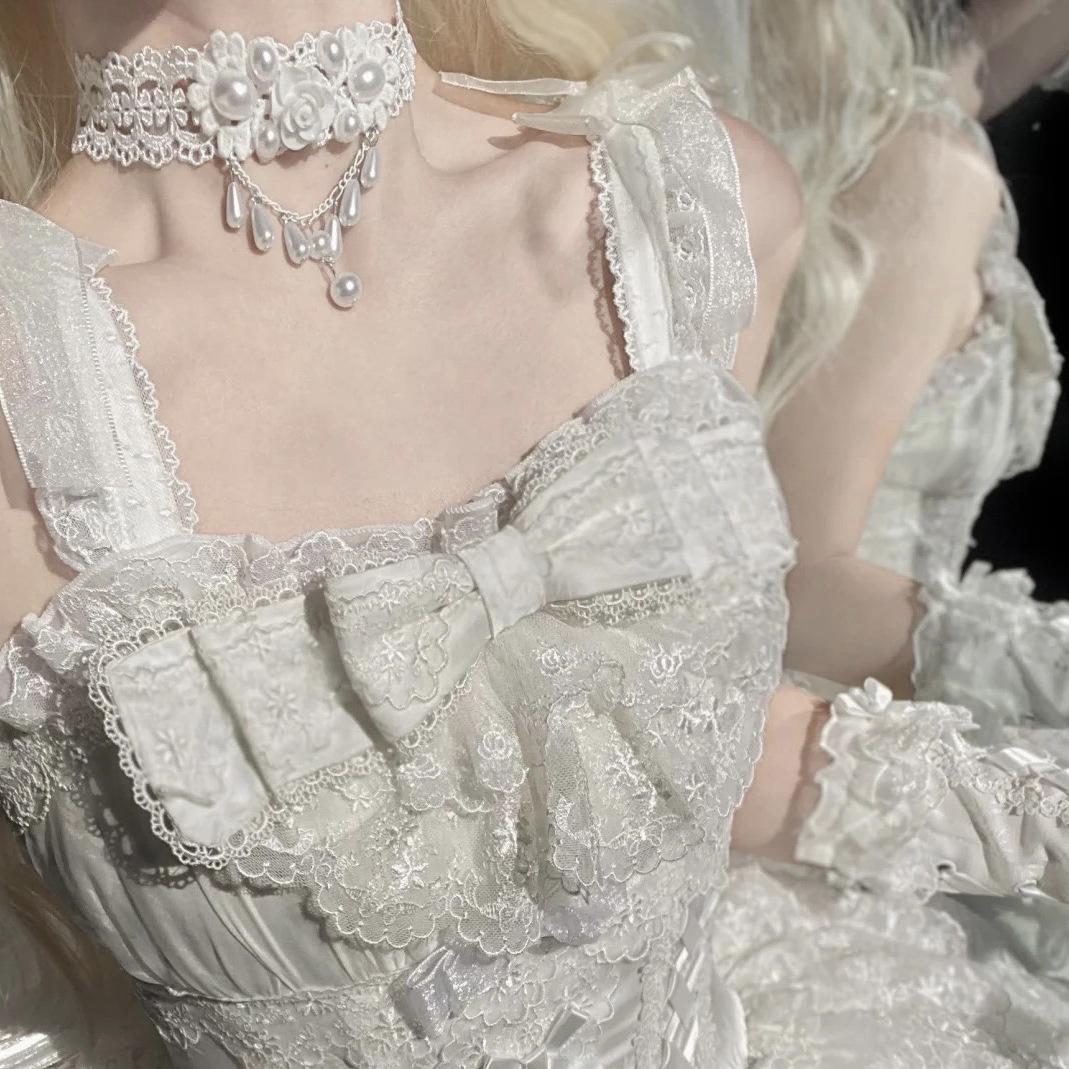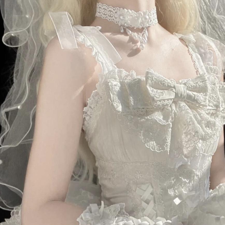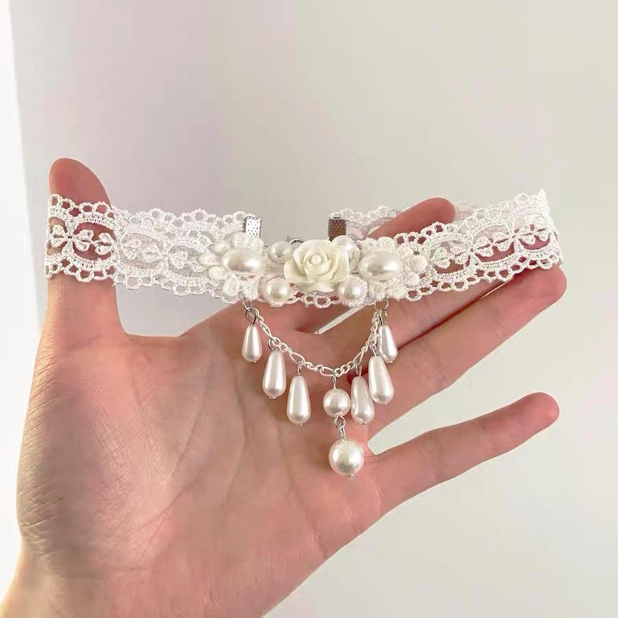 Estilo Lujuria Pura Encaje Blanco Rosa Gargantilla Gota de Agua Collar de Perlas Nicho Femenino Ropa Lolita Accesorios a Juego