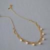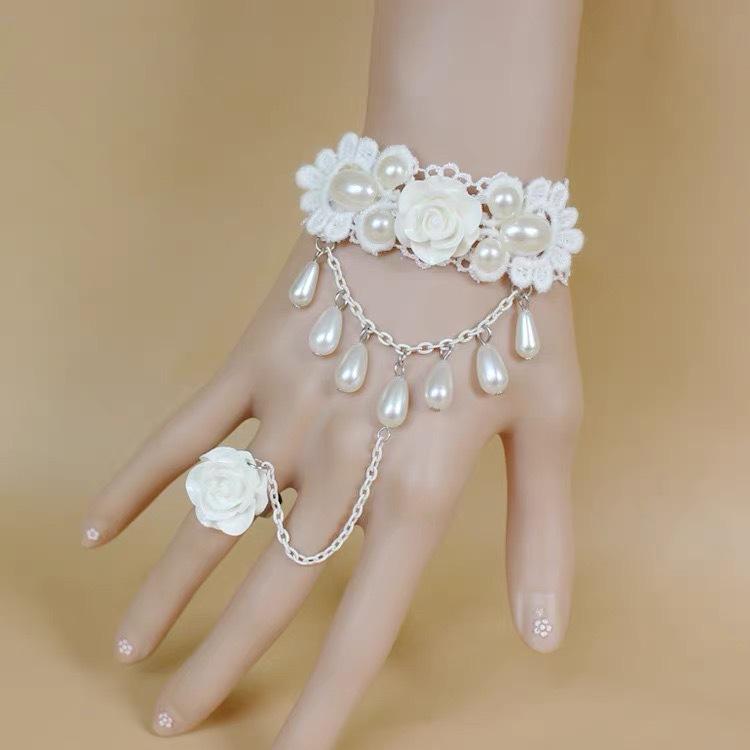 White camellia water drop pearl collarbone chain (gb2214), White camellia water drop pearl bracelet-ring (gb22...