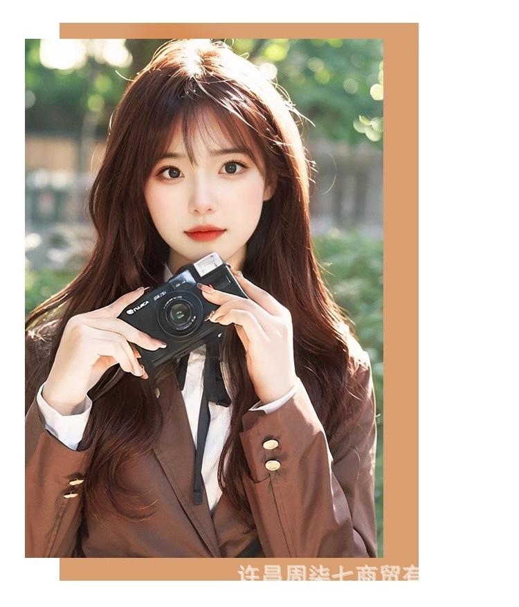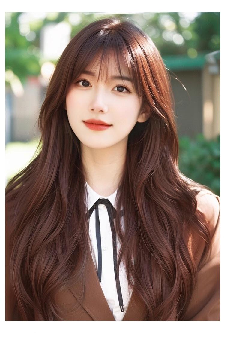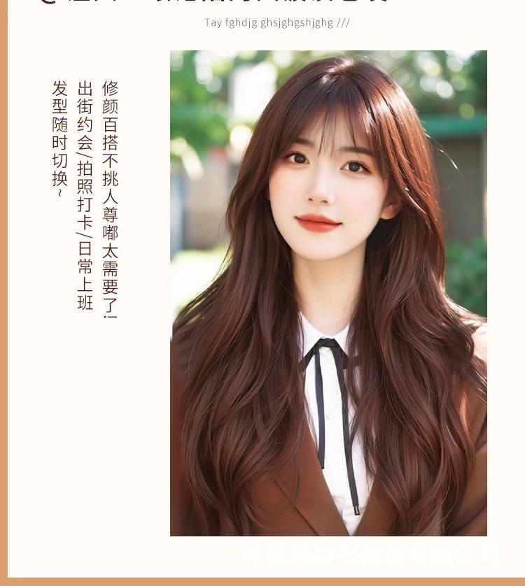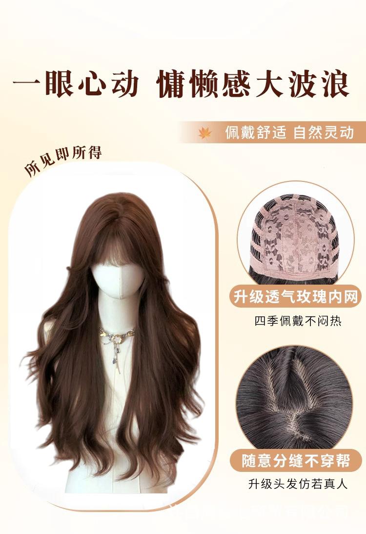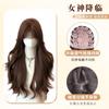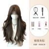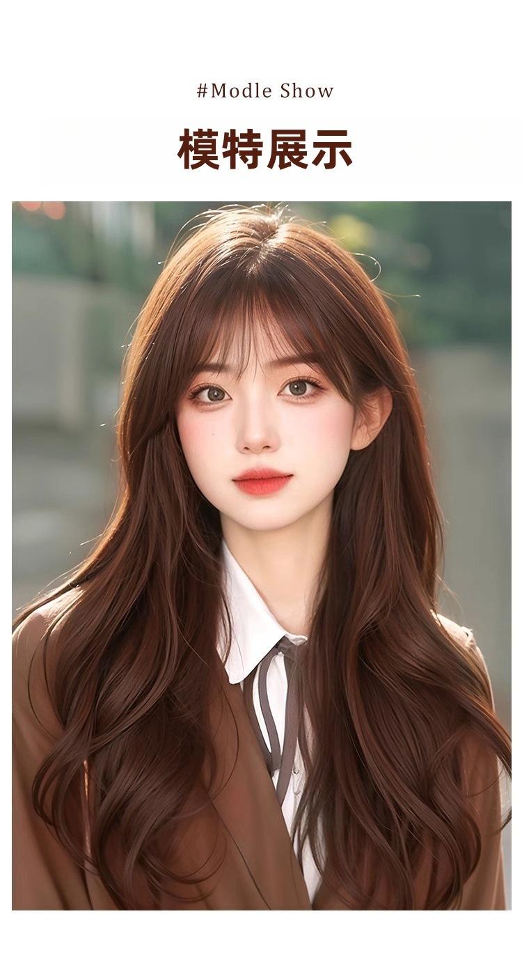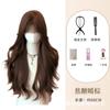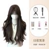 | Peluca para mujer, cabello largo, color gris avellana, marrón, atmósfera, cabello largo y rizado, simulación de cabeza completa, conjunto de peluca de temperamento perezoso coreano |