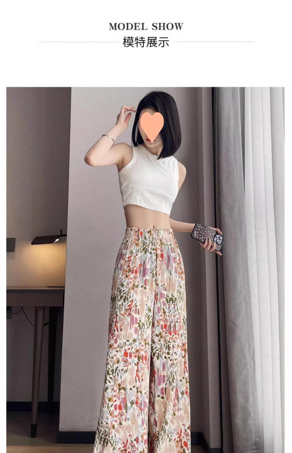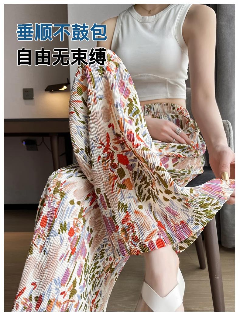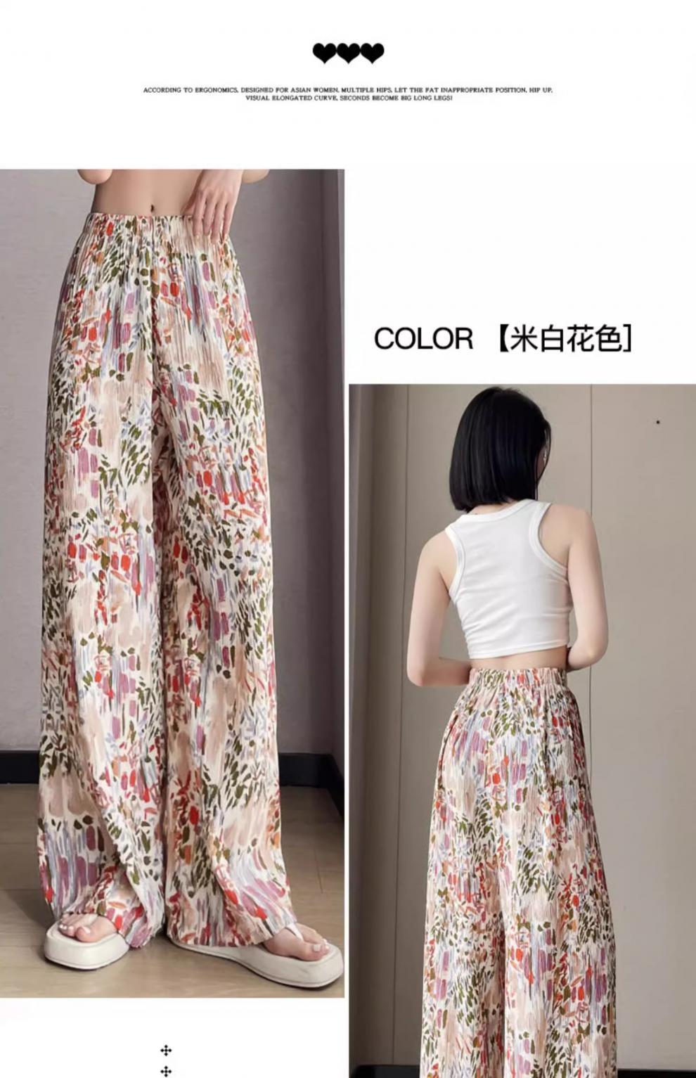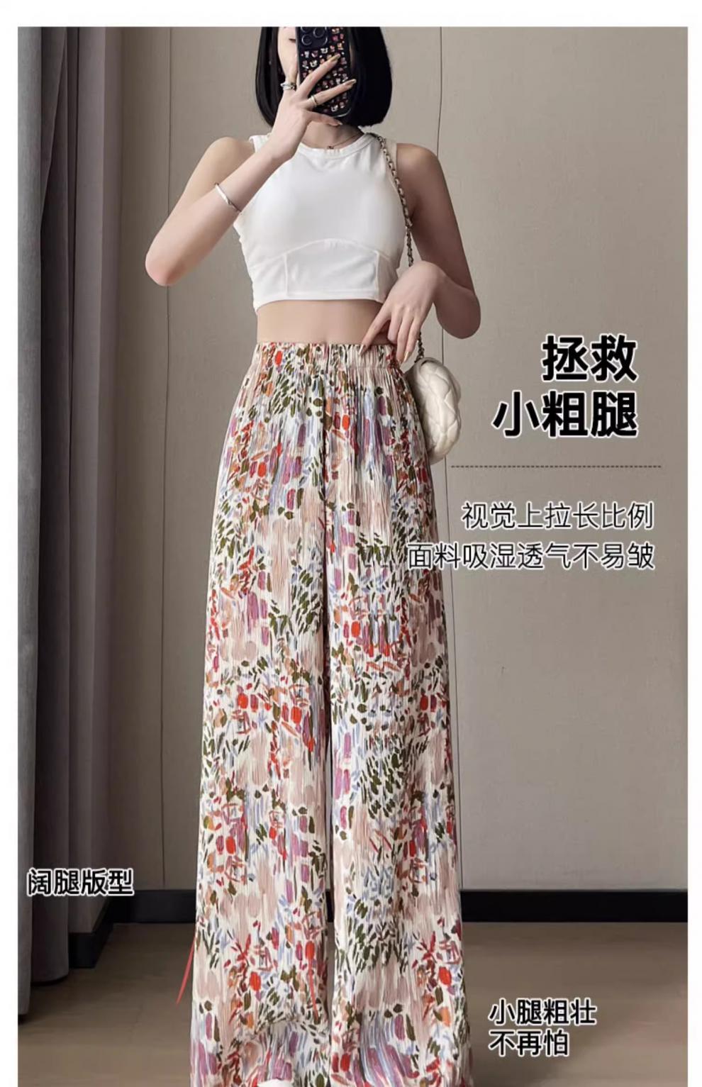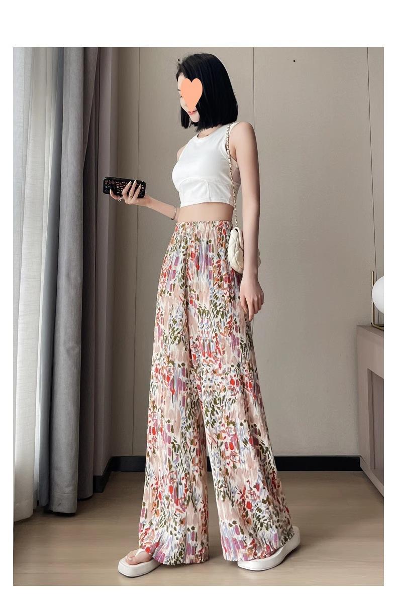 Pantalones de Verano Delgados para Mujer Nuevo Estilo 2025 Diseño Chic Nicho Casual Colorido Dulce Cool Seda de Hielo Pantalones de Pierna Ancha para Mujer