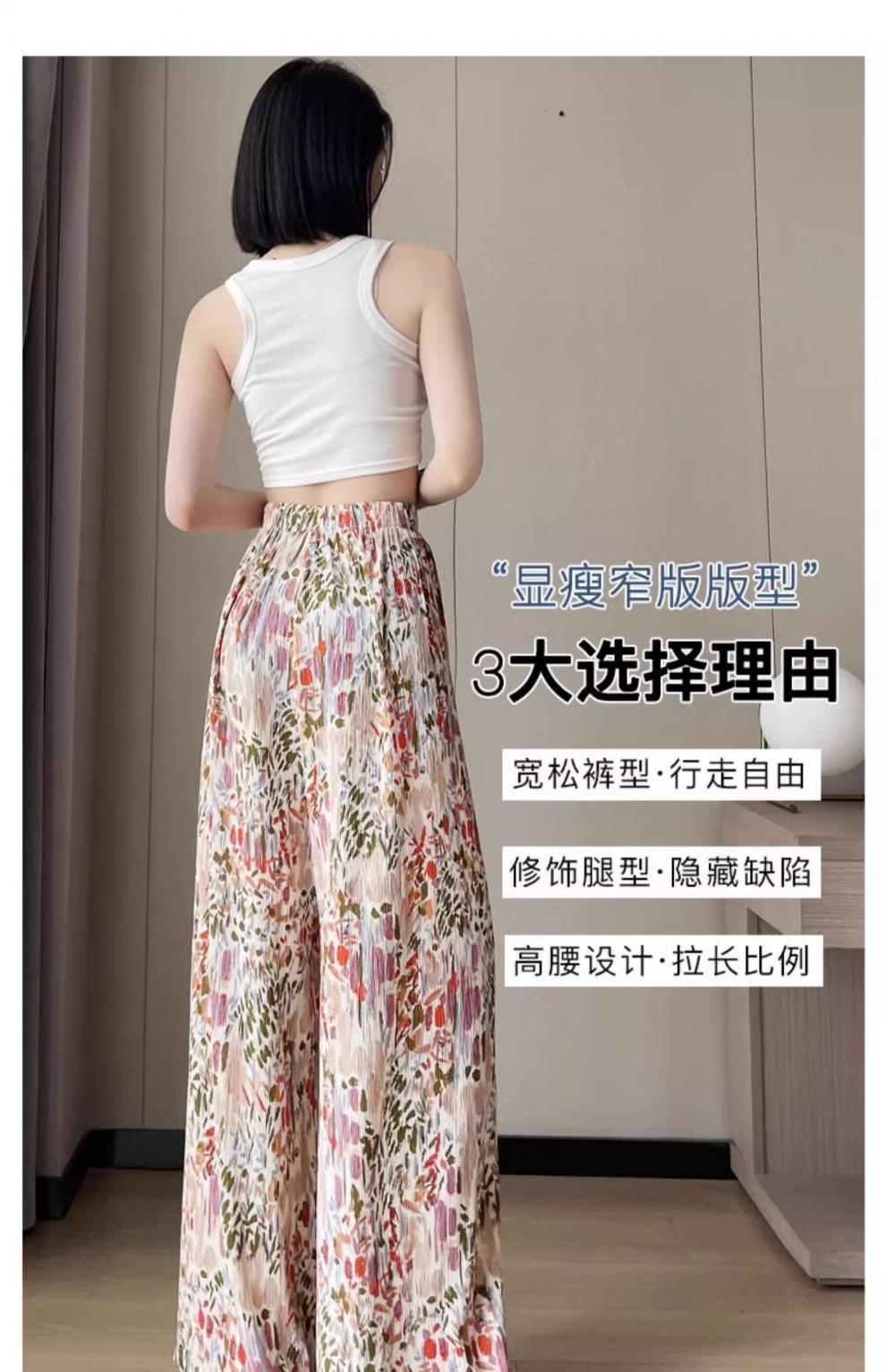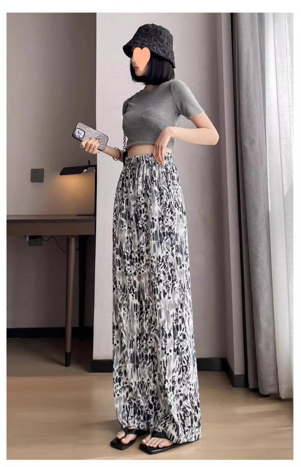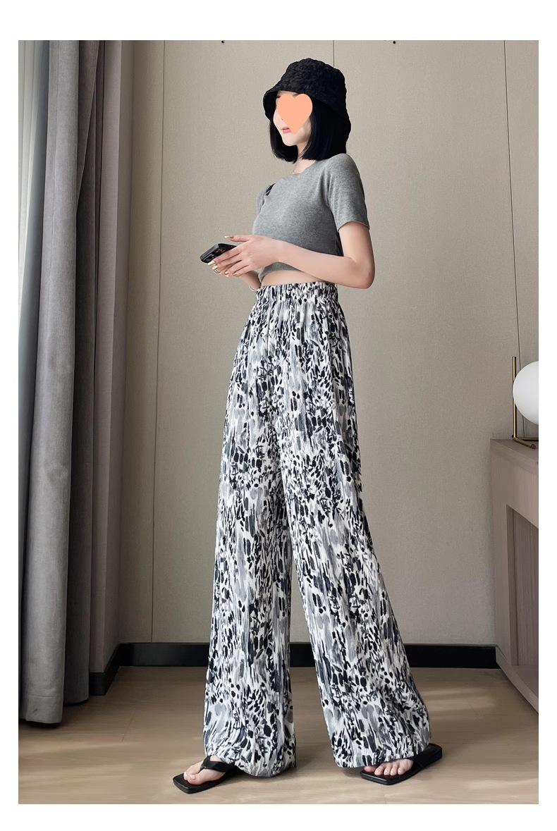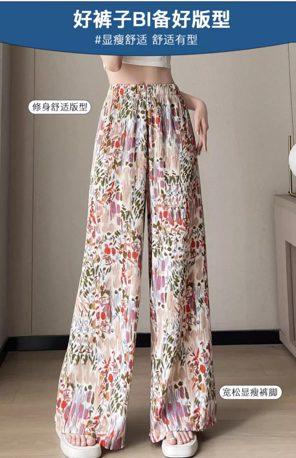 Pantalones de Verano Delgados para Mujer Nuevo Estilo 2025 Diseño Chic Nicho Casual Colorido Dulce Cool Seda de Hielo Pantalones de Pierna Ancha para Mujer