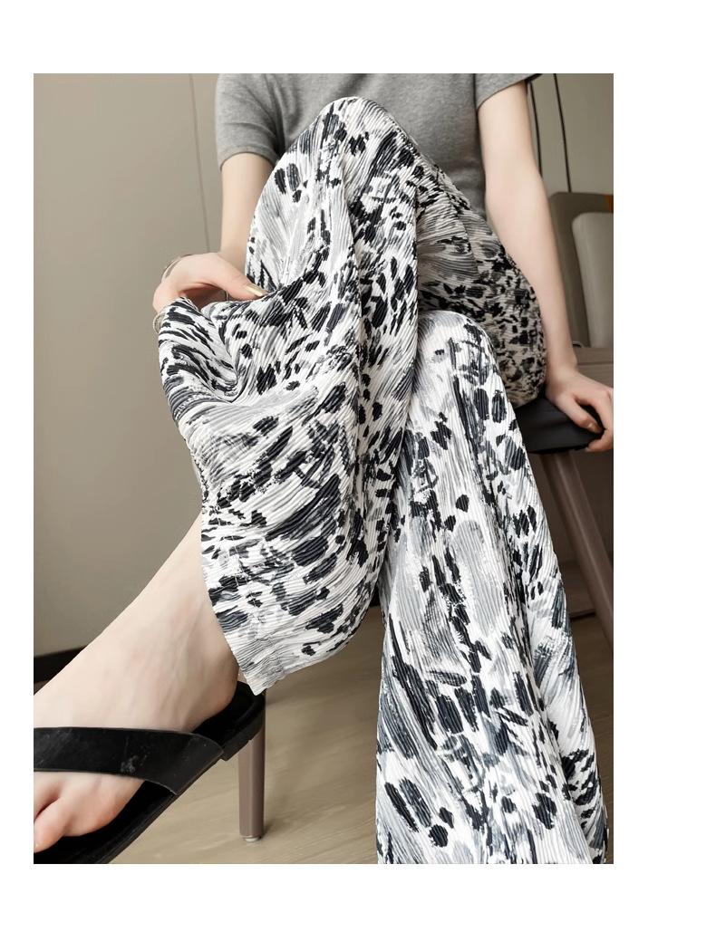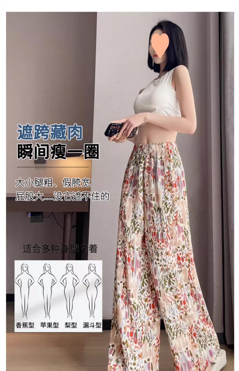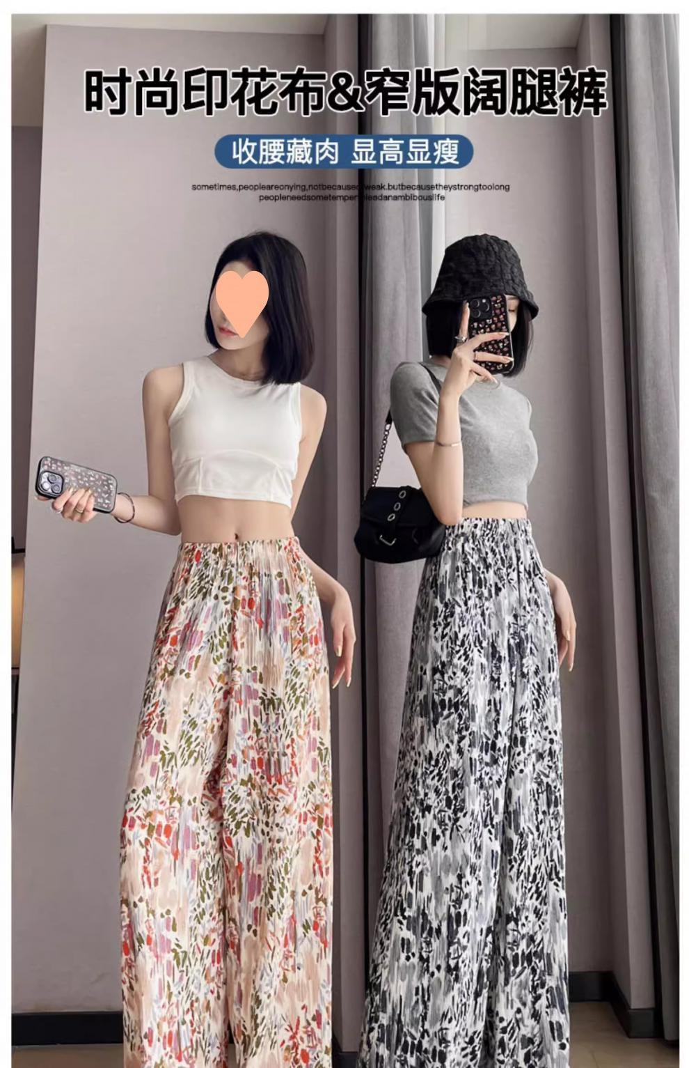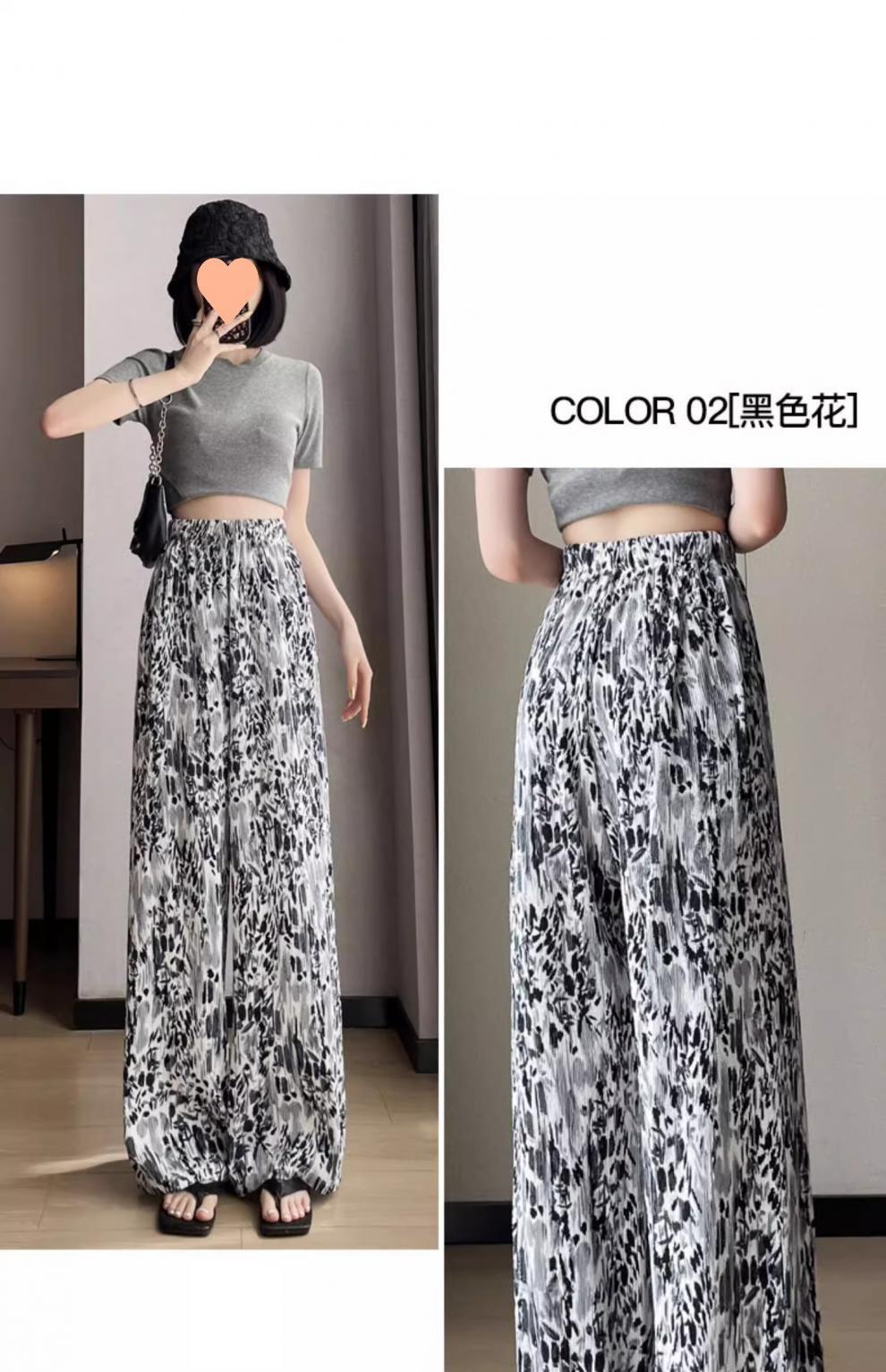 Pantalones de Verano Delgados para Mujer Nuevo Estilo 2025 Diseño Chic Nicho Casual Colorido Dulce Cool Seda de Hielo Pantalones de Pierna Ancha para Mujer