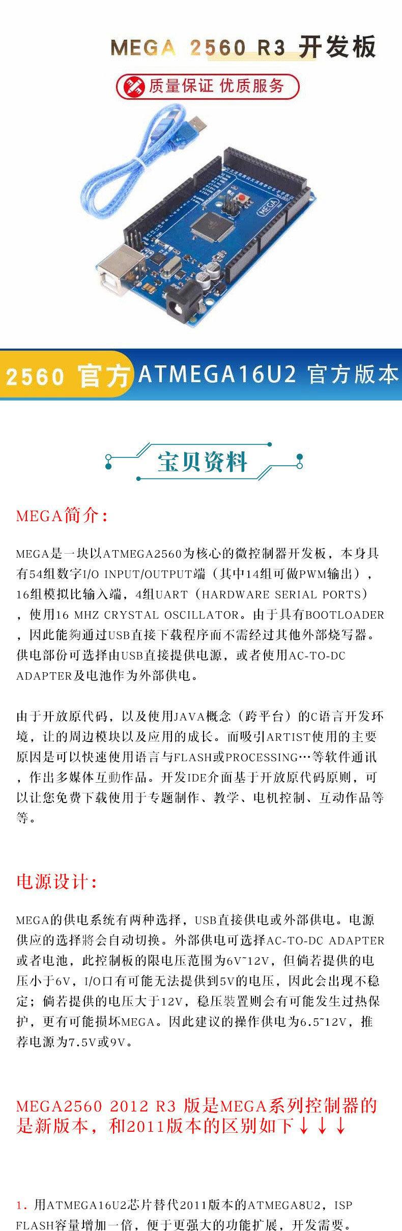 Placa de Desarrollo Mega2560 R3 (Edición Nueva 2018, Atmega16U2, Versión Oficial)