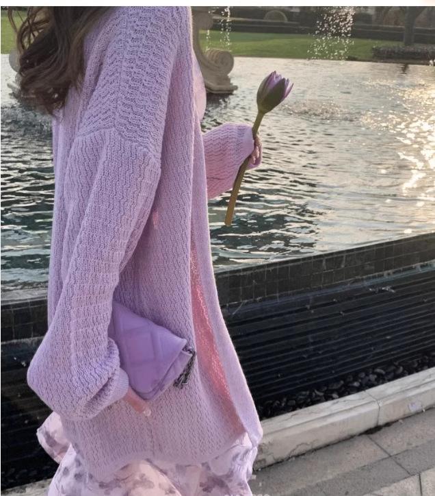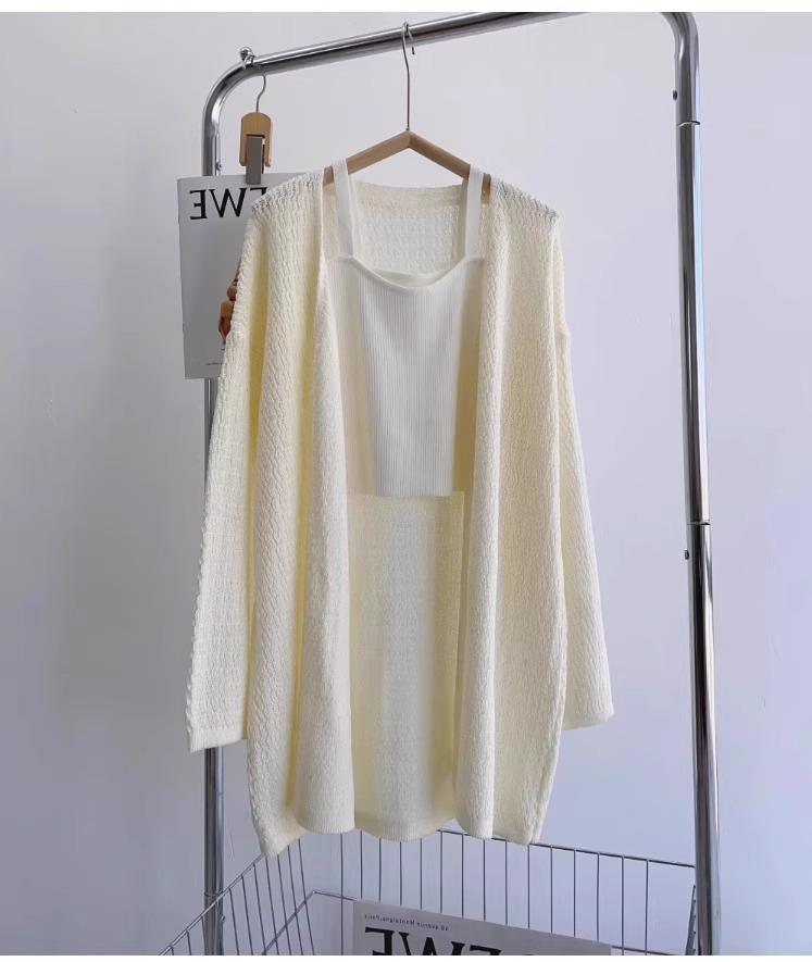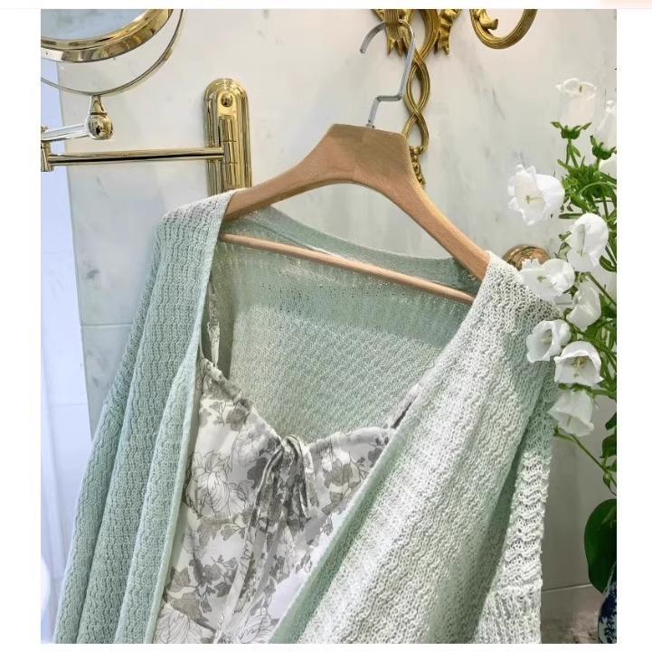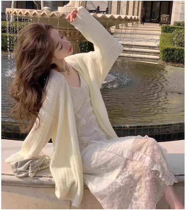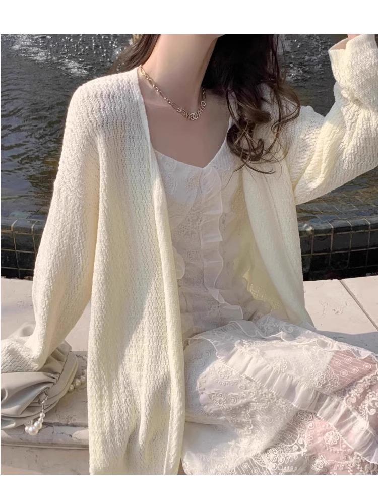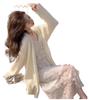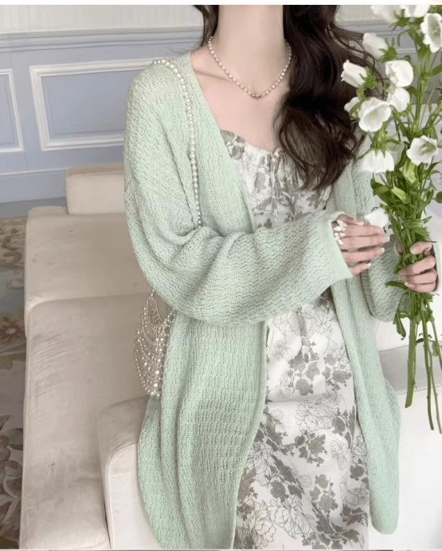 Chaqueta tipo cárdigan de punto holgada de longitud media, estilo perezoso, para mujer, primavera y verano, fina, con protección solar y aire acondicionado.
