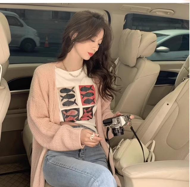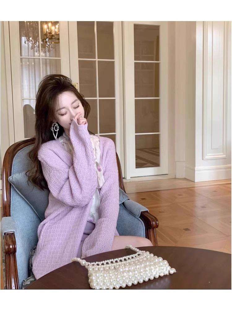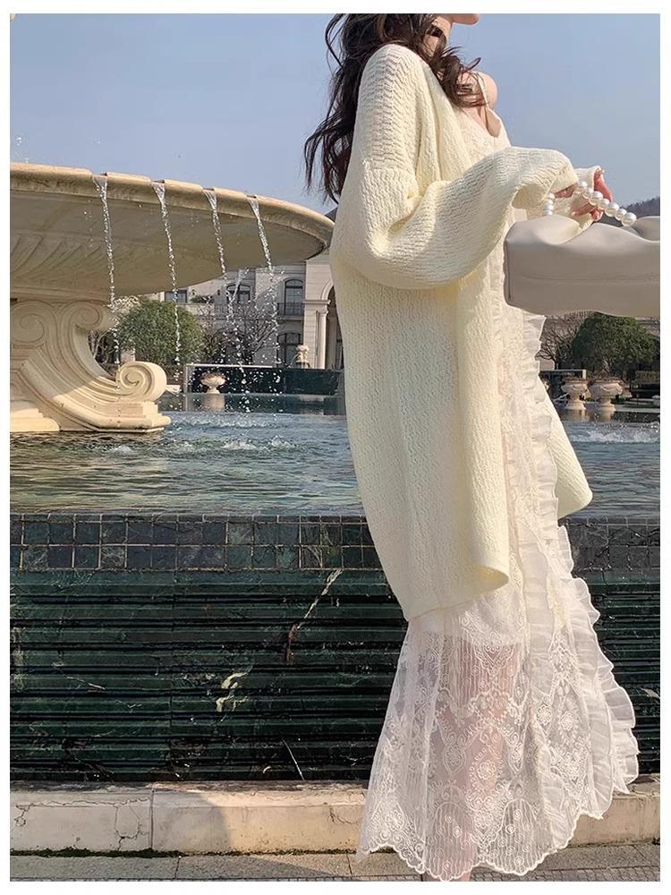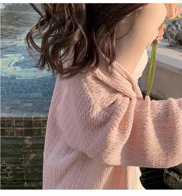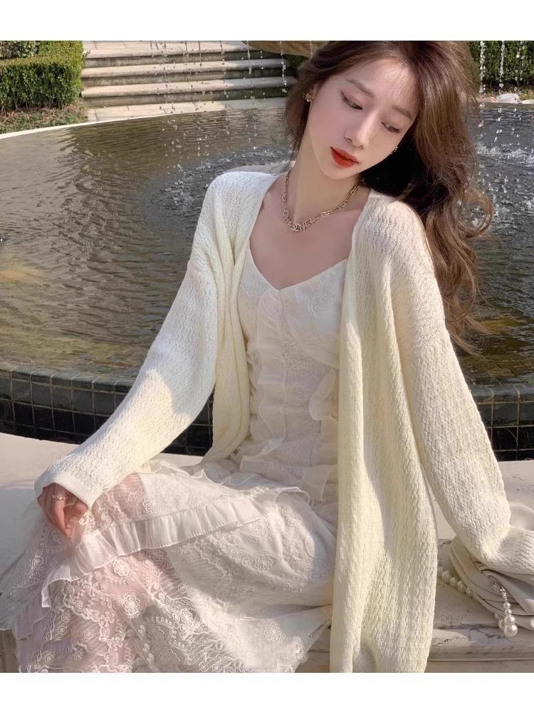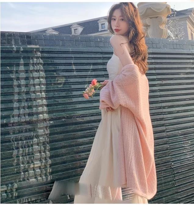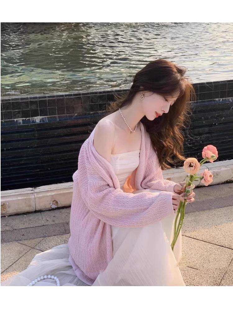 Chaqueta tipo cárdigan de punto holgada de longitud media, estilo perezoso, para mujer, primavera y verano, fina, con protección solar y aire acondicionado.