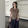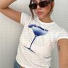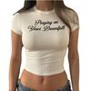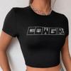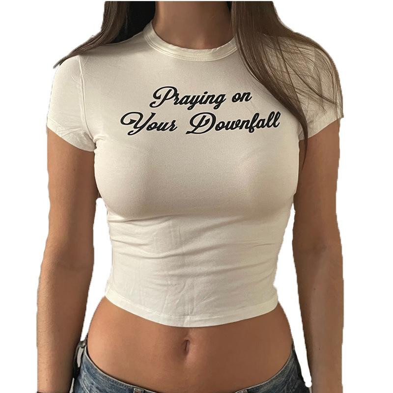 Camiseta de manga corta con estampado de letras negras, cuello redondo, sexy, para mujer, moda americana, verano