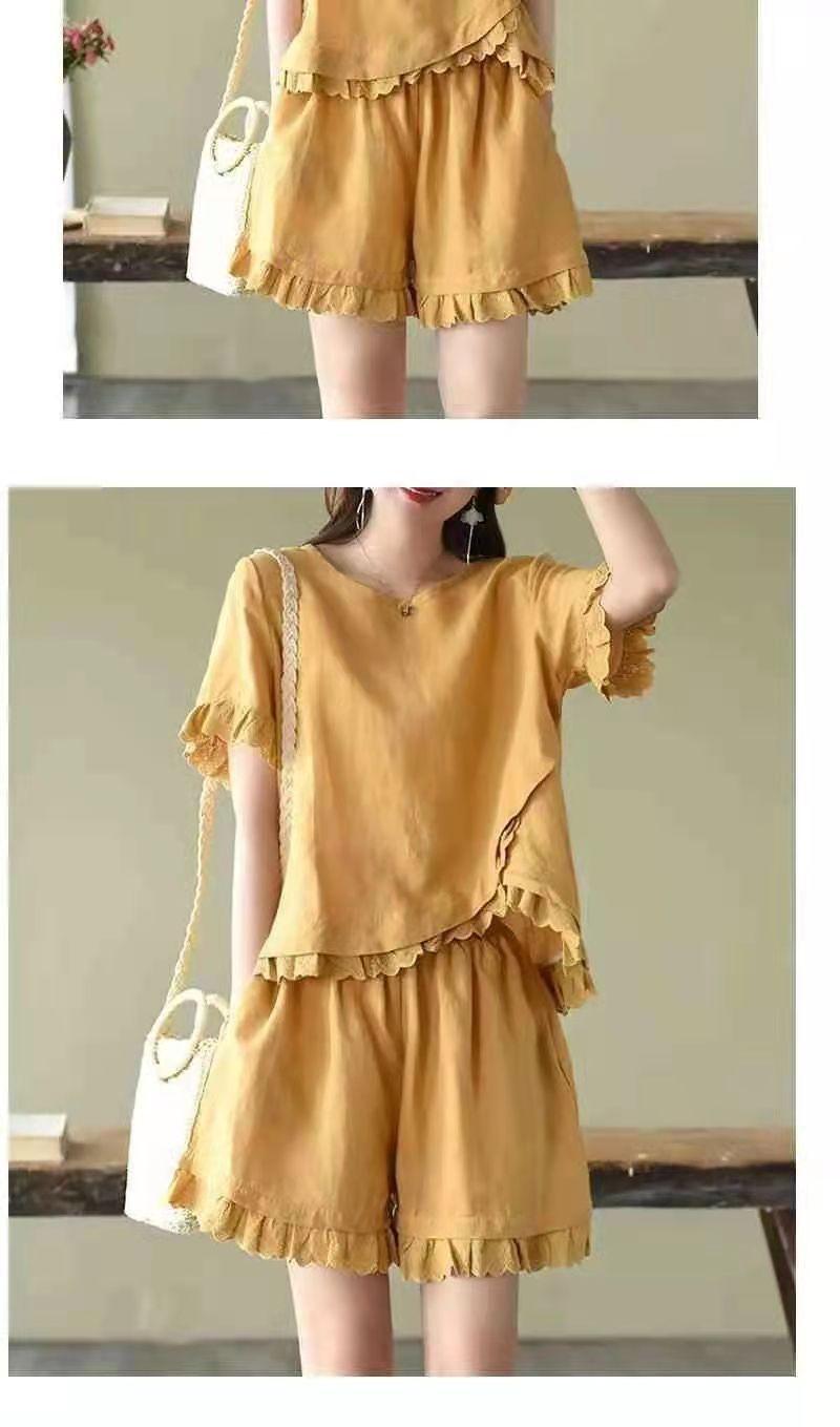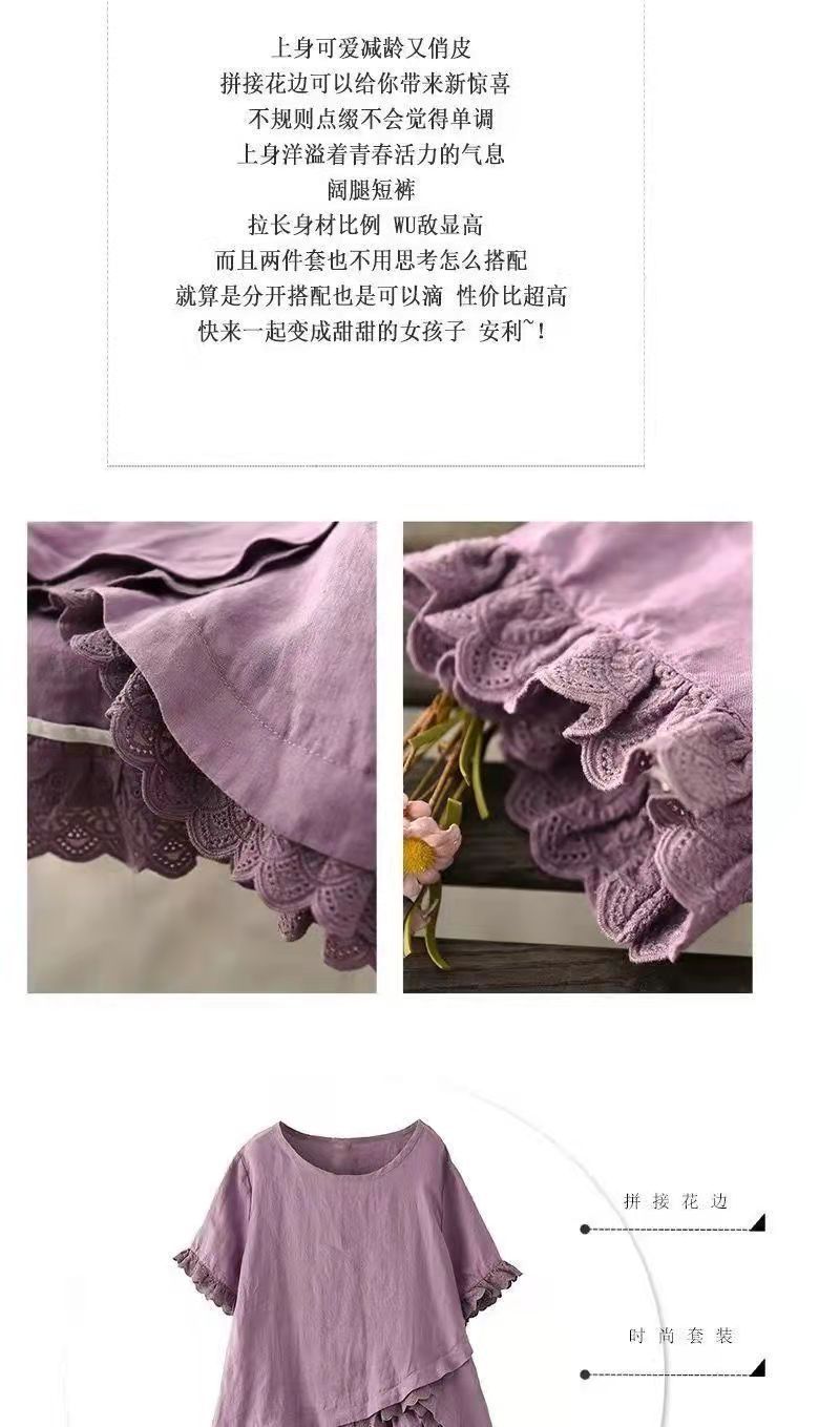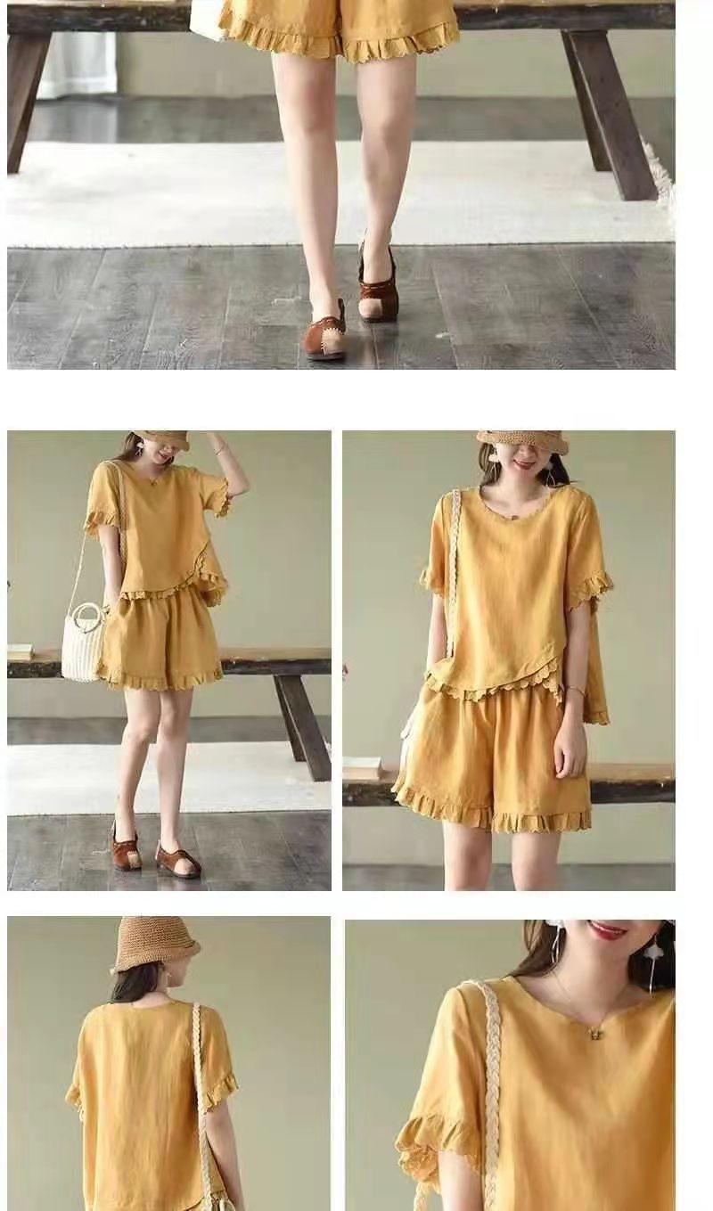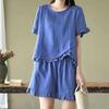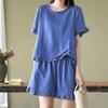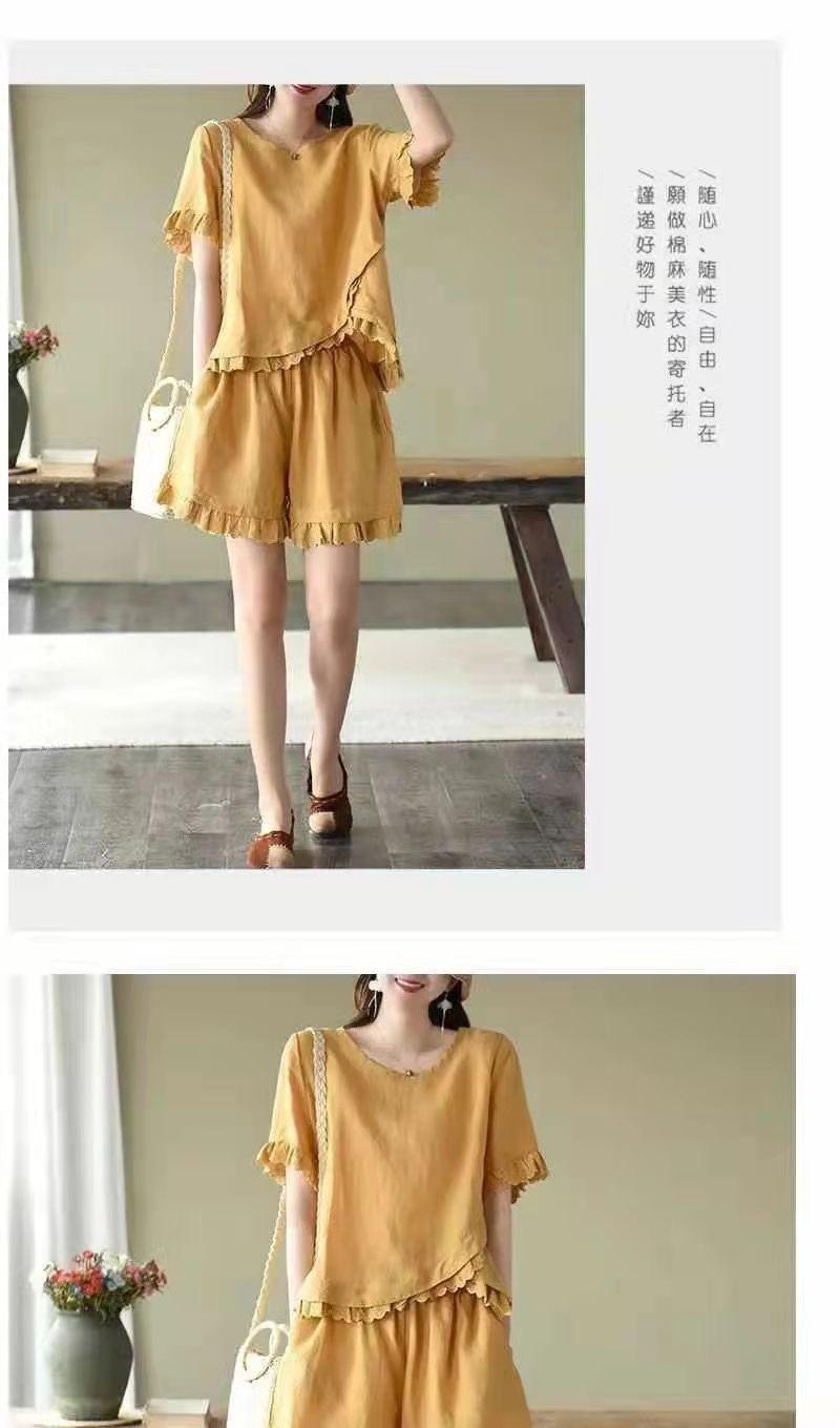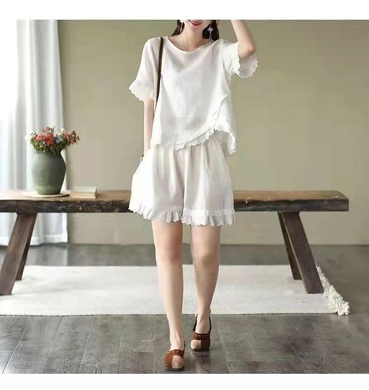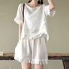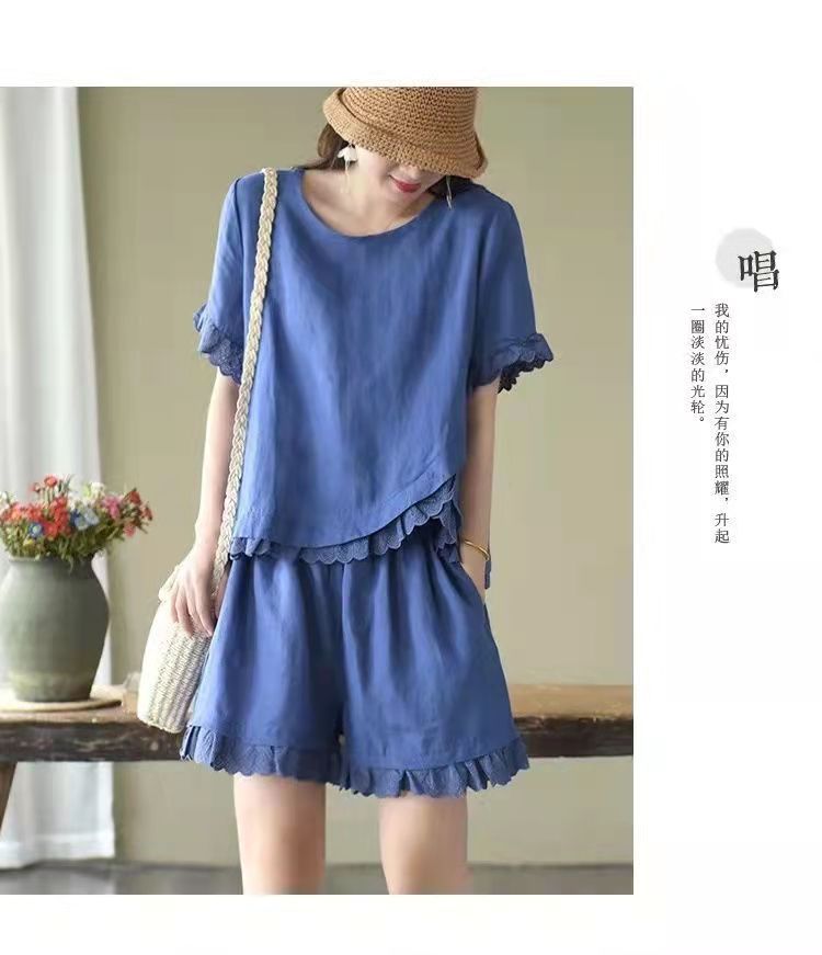 315/traje casual de algodón verano nuevo artístico imitación algodón y lino camiseta manga corta pantalones cortos pierna ancha moda dos generación cabello