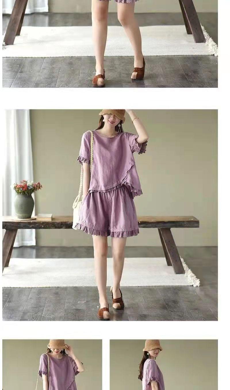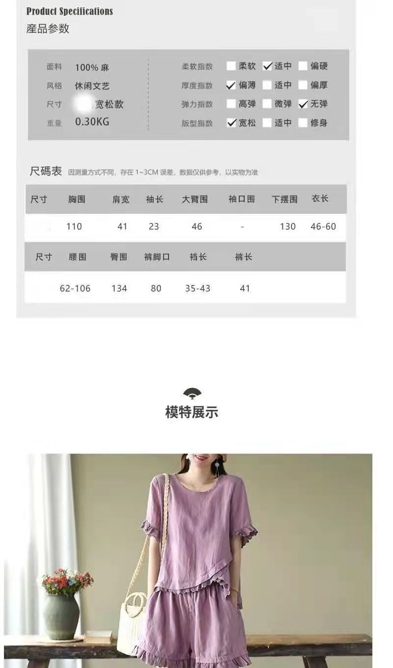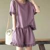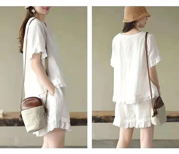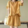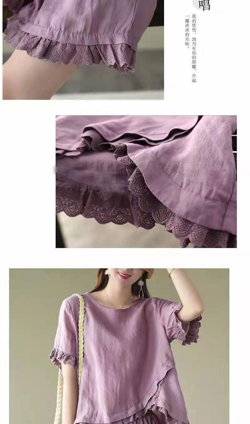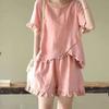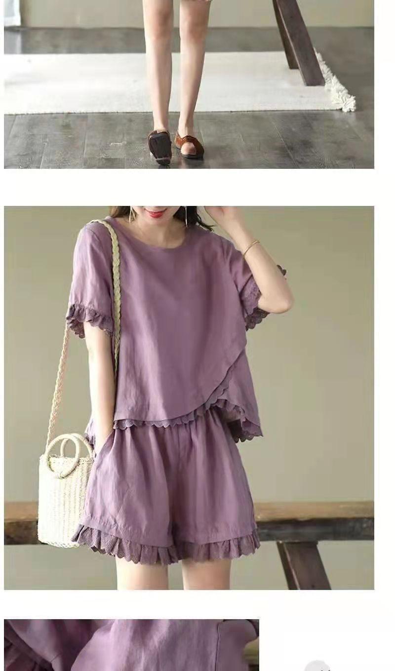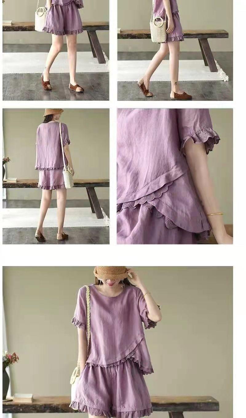 315/traje casual de algodón verano nuevo artístico imitación algodón y lino camiseta manga corta pantalones cortos pierna ancha moda dos generación cabello