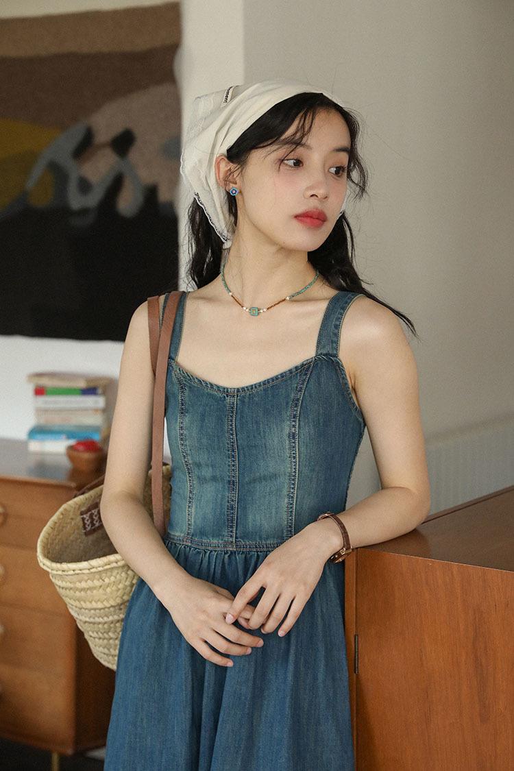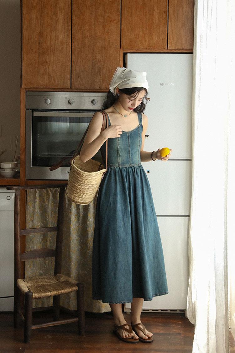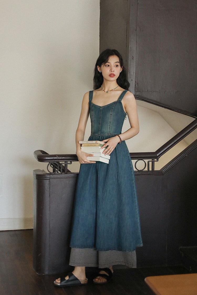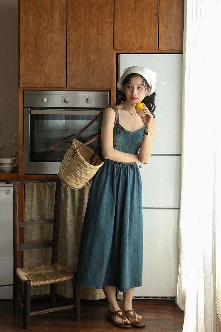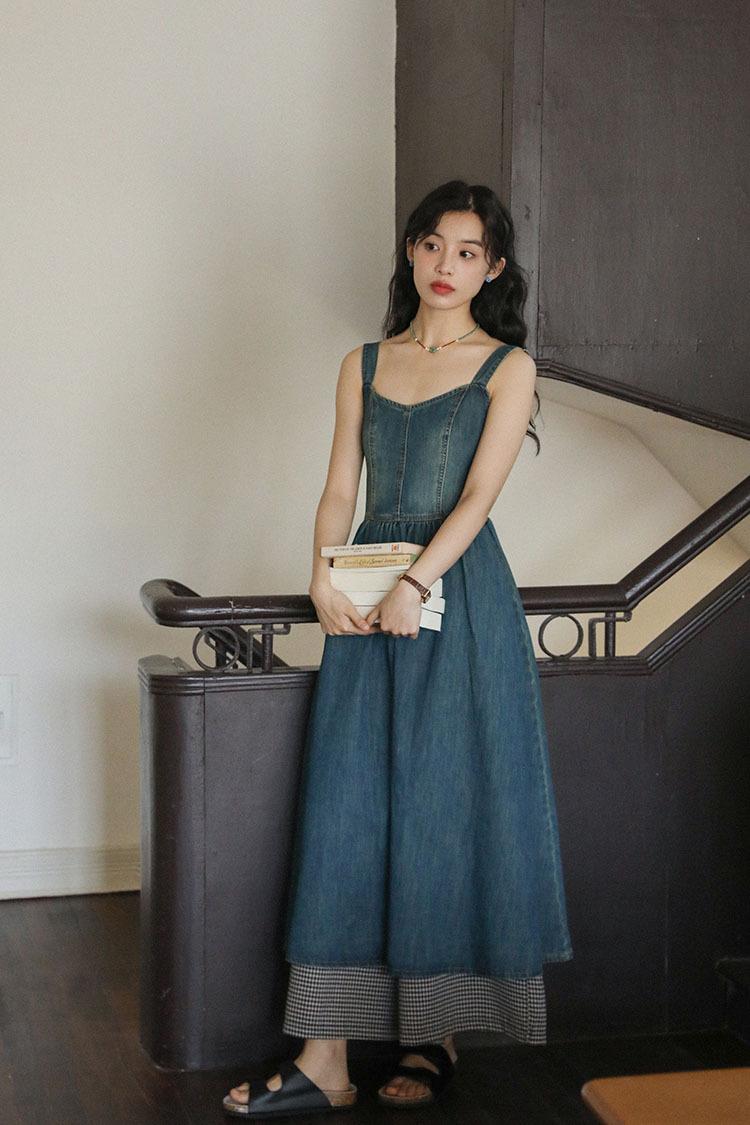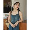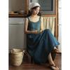 Vestido corto sin mangas con escote en V elegante, cintura alta, estilo retro artístico, adelgazante, falda deslizante para mujer, novedad de verano de 2024