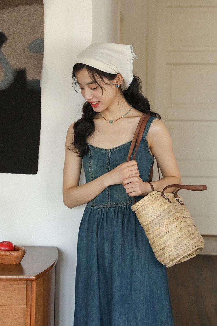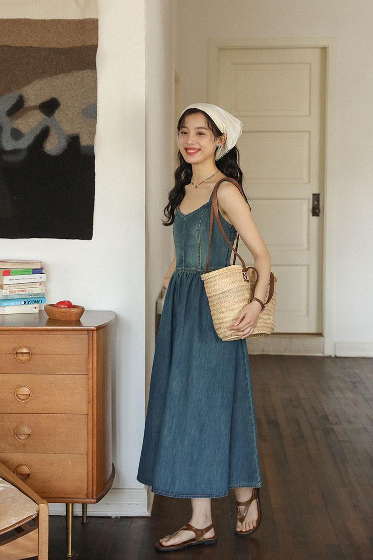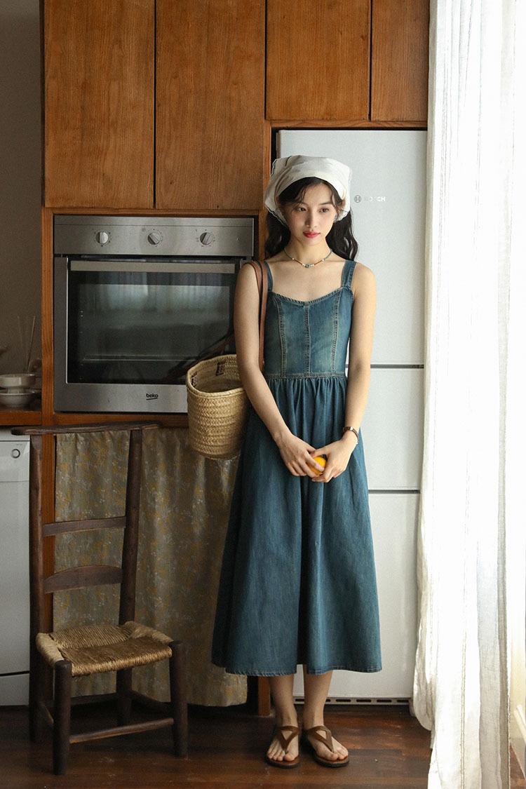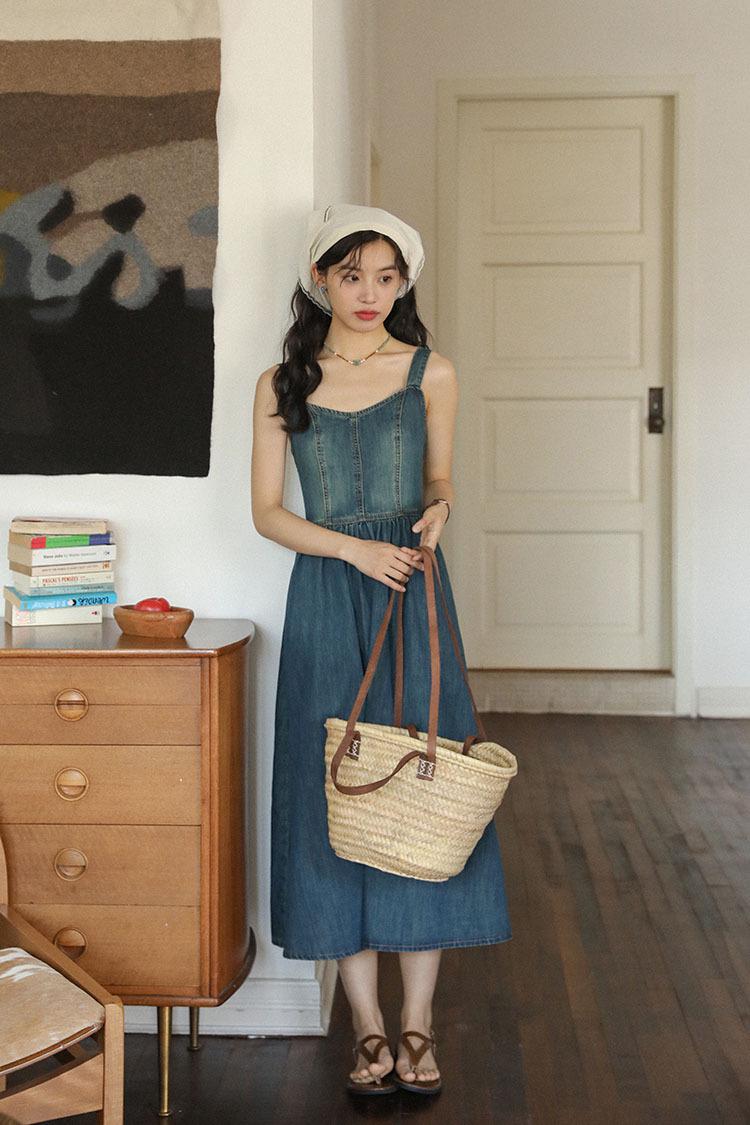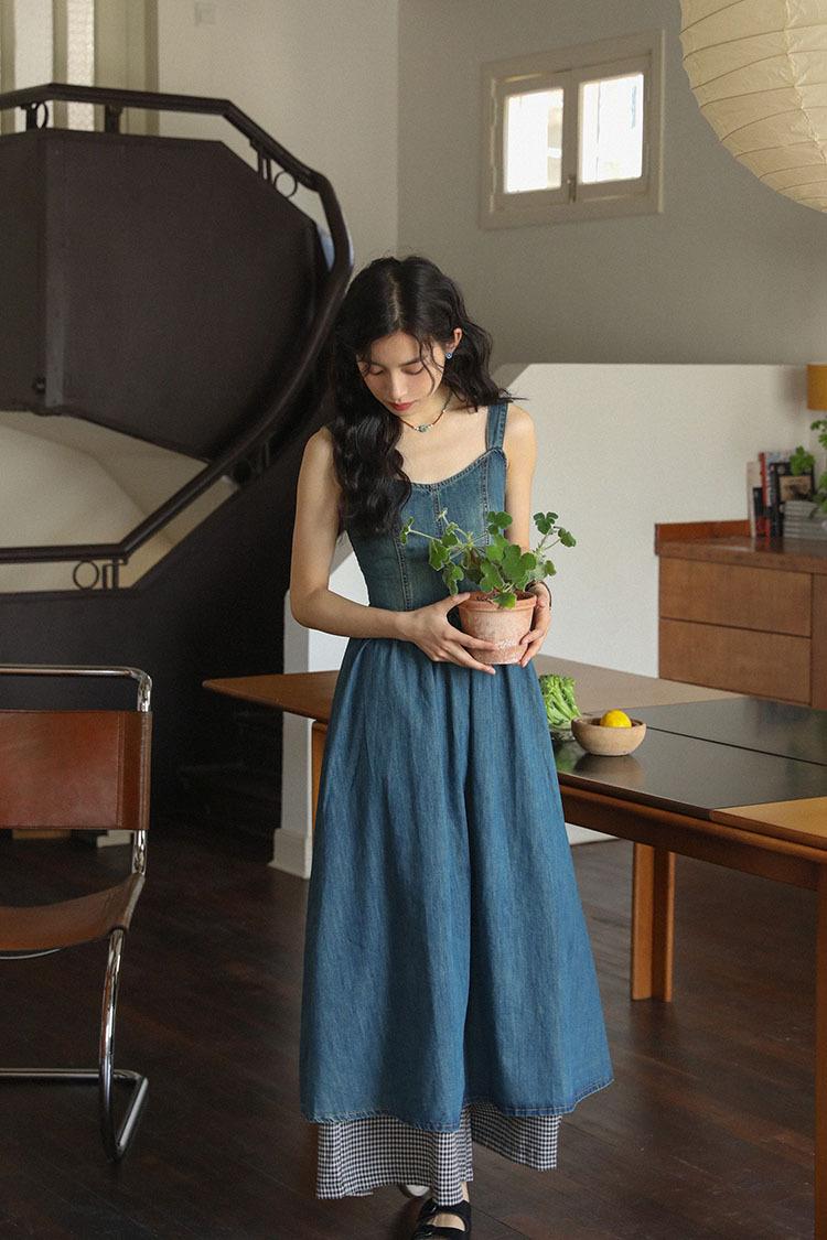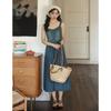 Vestido corto sin mangas con escote en V elegante, cintura alta, estilo retro artístico, adelgazante, falda deslizante para mujer, novedad de verano de 2024