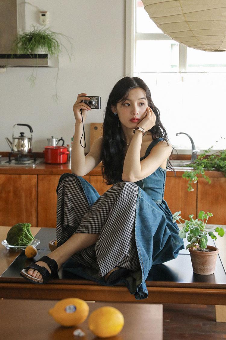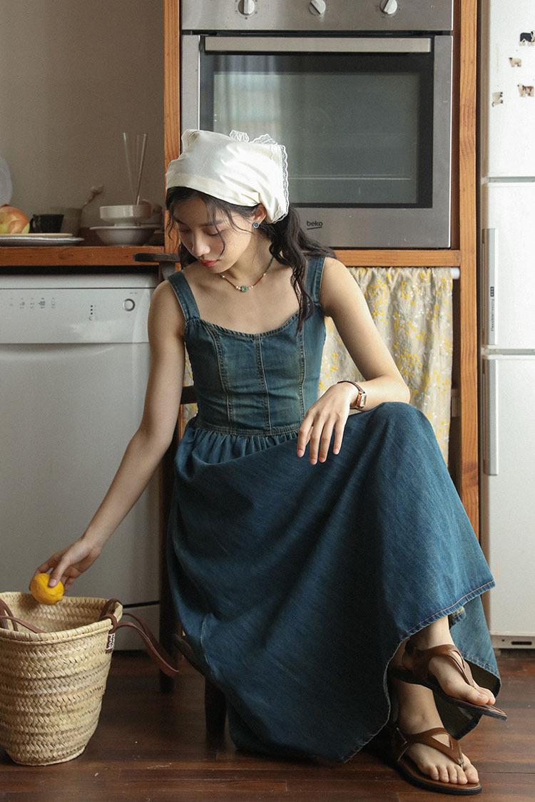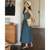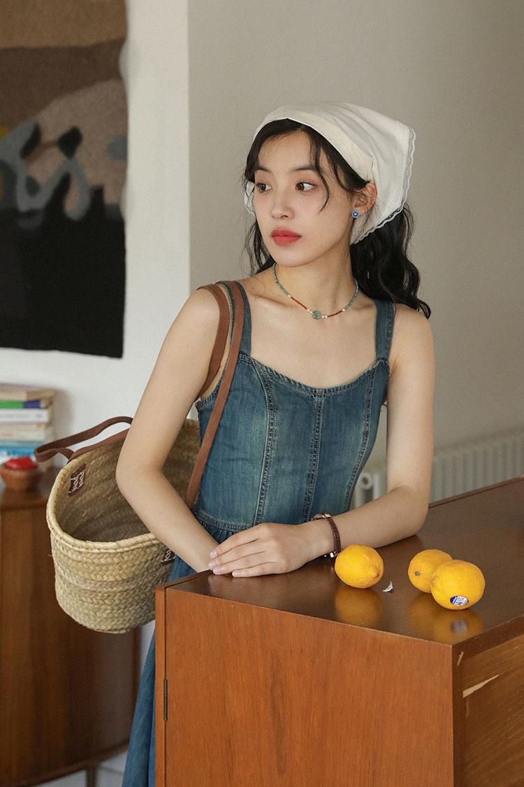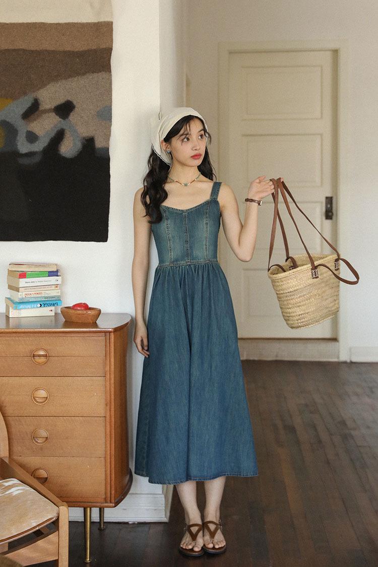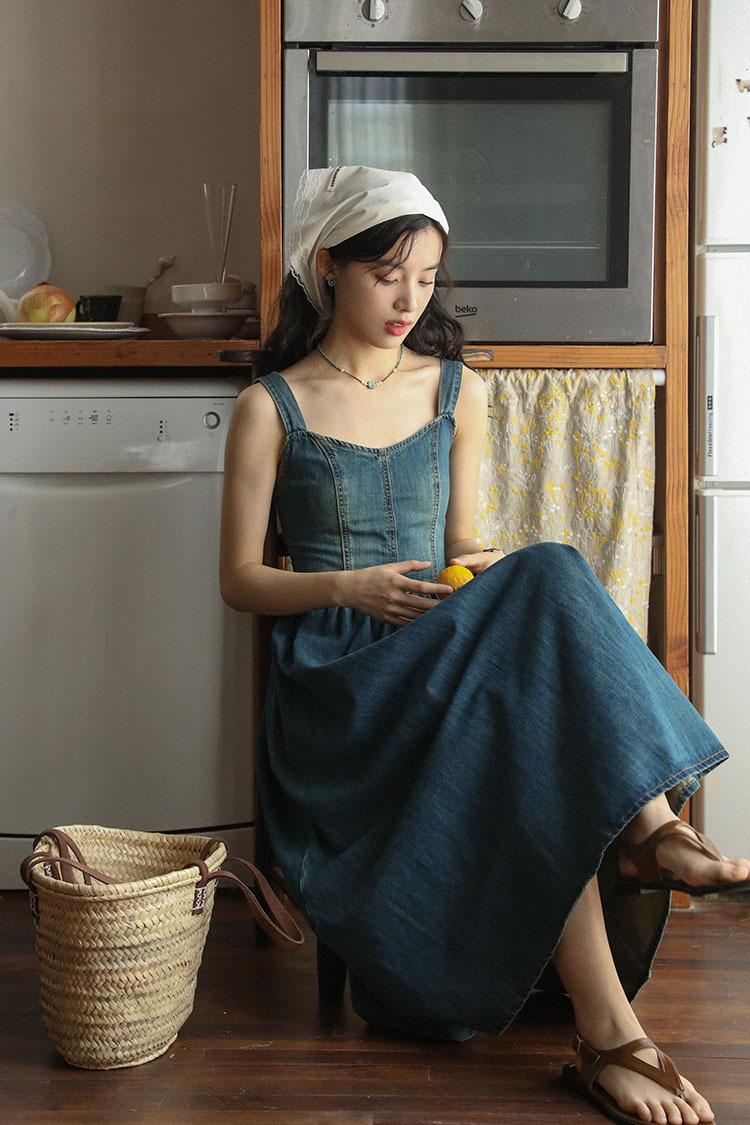 Vestido corto sin mangas con escote en V elegante, cintura alta, estilo retro artístico, adelgazante, falda deslizante para mujer, novedad de verano de 2024