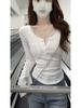 Camisa Estilo Occidental 2025 Otoño Nueva Camiseta de Manga Larga con Abertura de Color Puro Estilo Coreano para Mujer Tops para Mujer Camiseta Básica Trbottomy