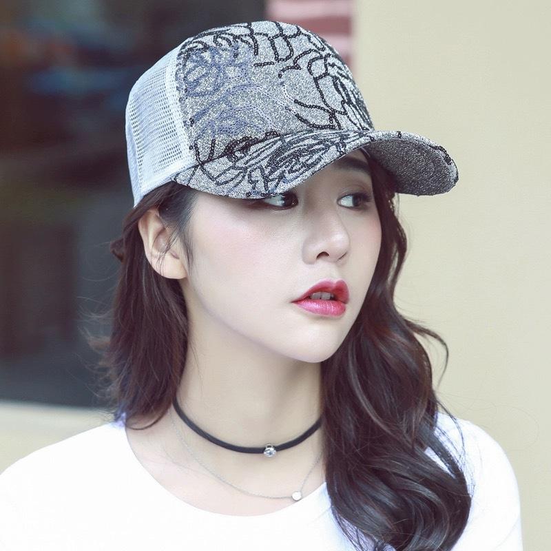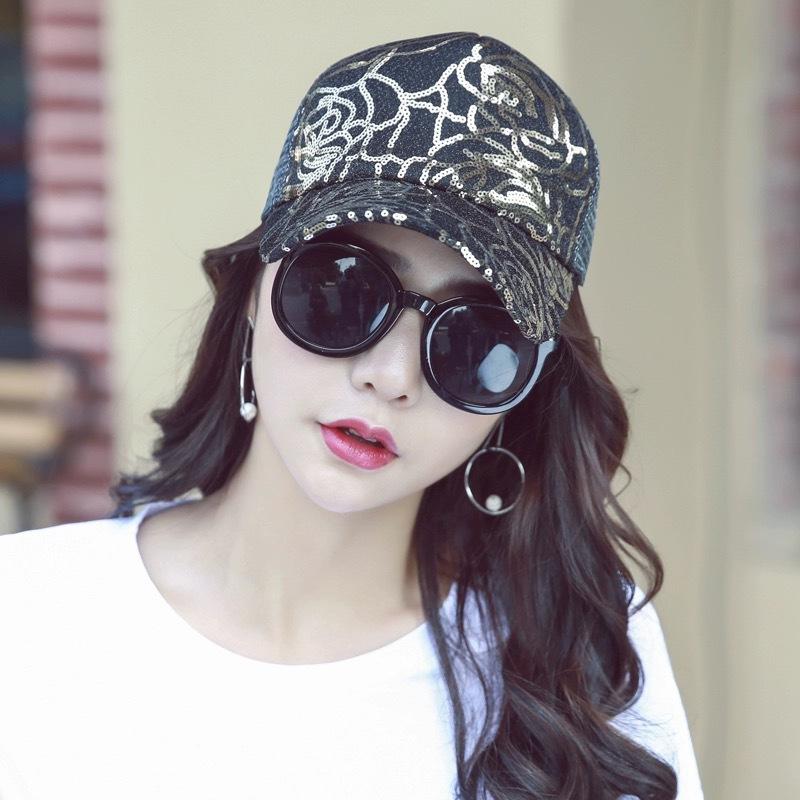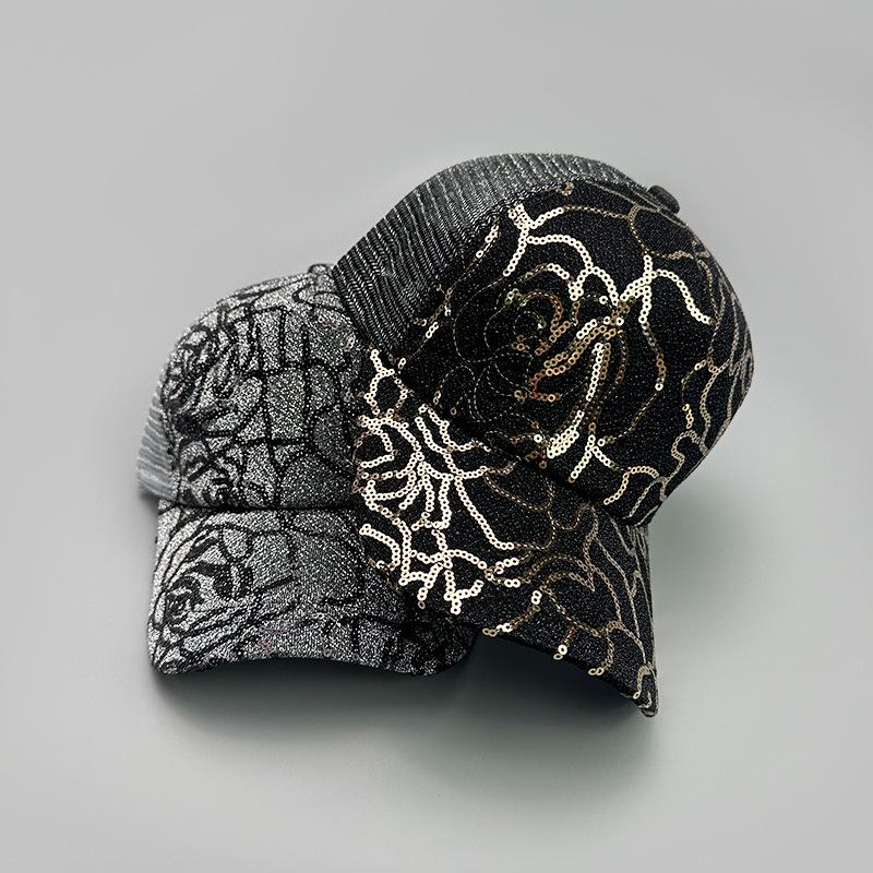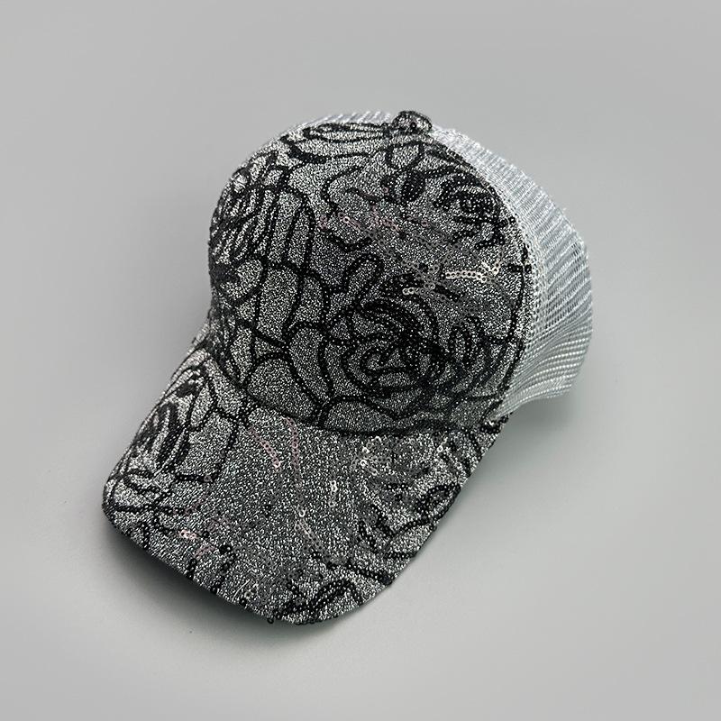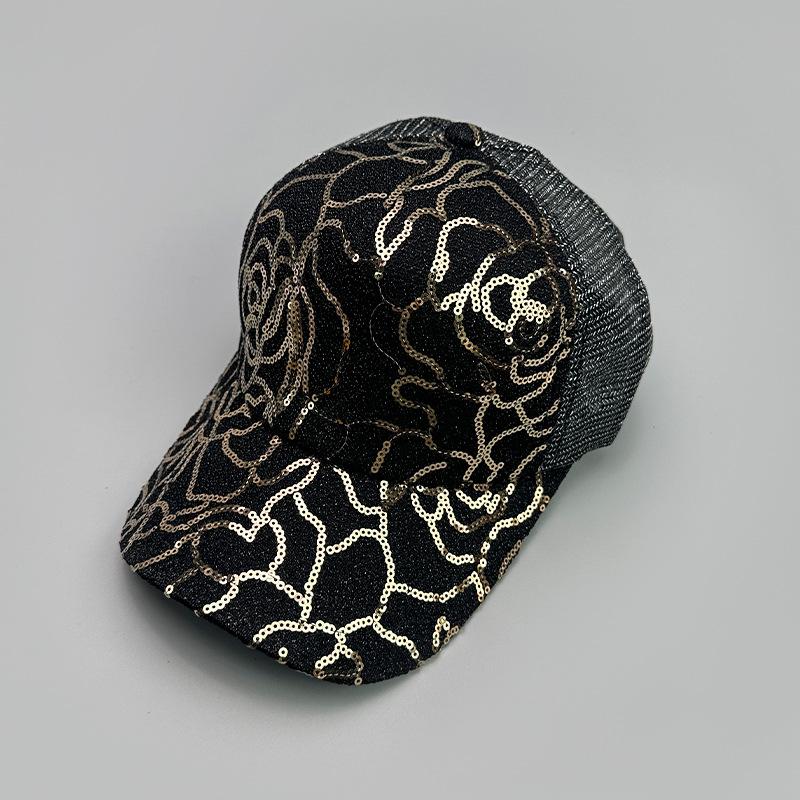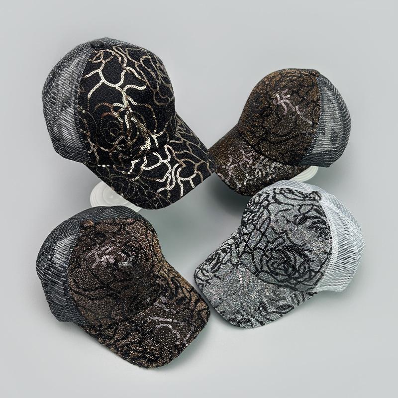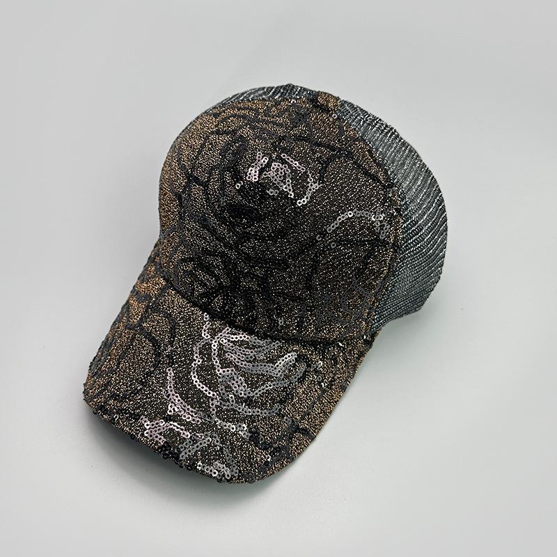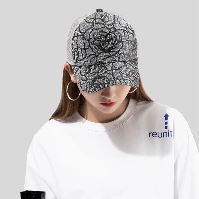 Gorra de béisbol con lentejuelas en contraste de color rosa para mujer, parasol para exteriores, transpirable, informal, de malla, venta al por mayor