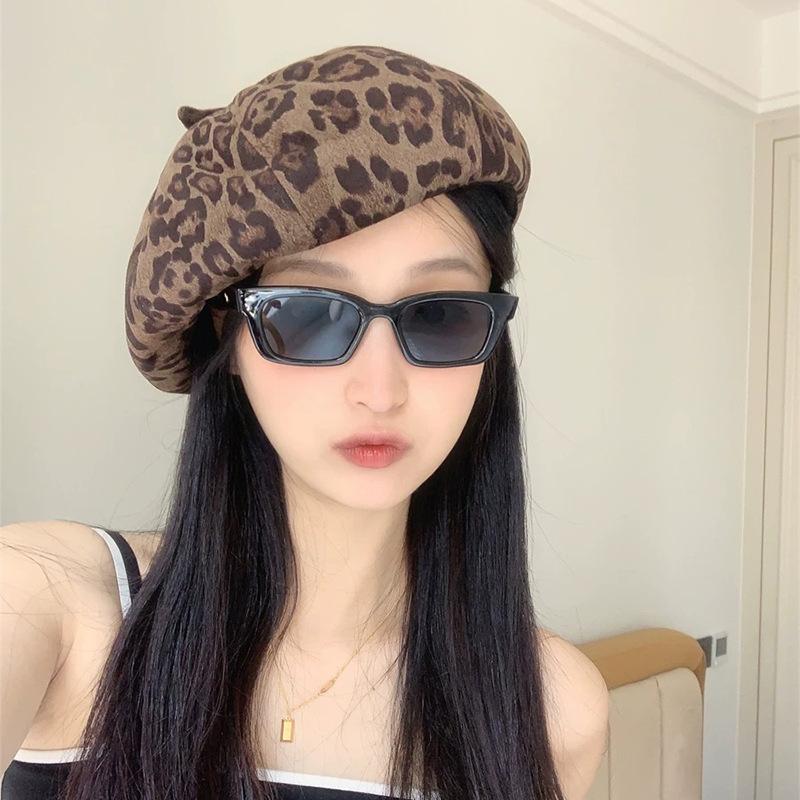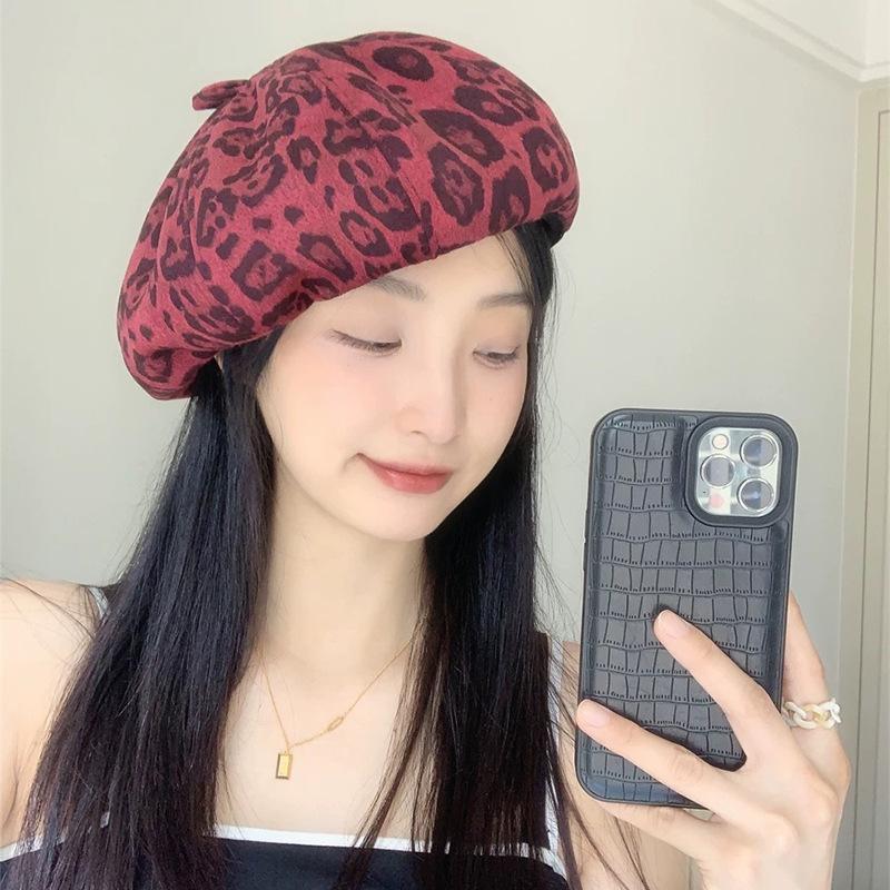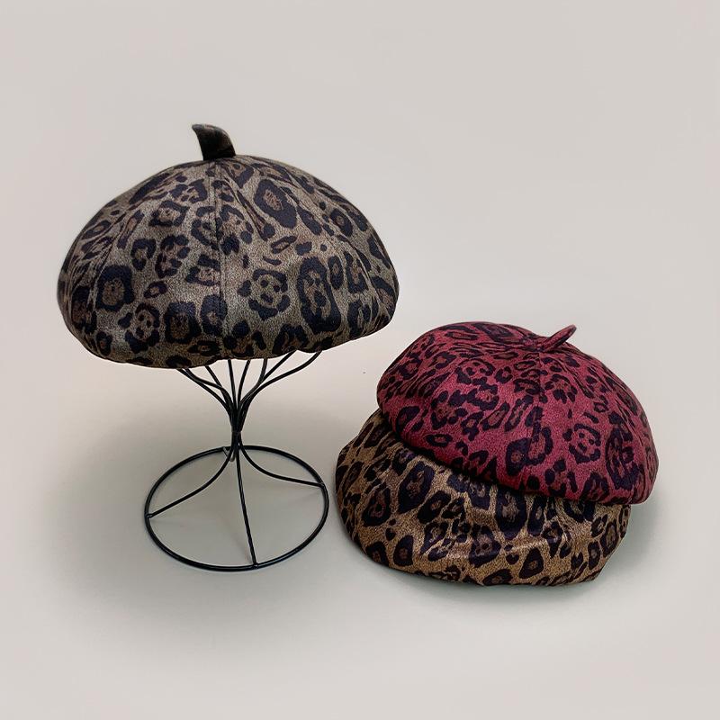 Nueva versión coreana de boina retro Y2K con estampado de leopardo para mujer, personalidad, moda, Joker, calle, ins, sombrero octogonal al por mayor