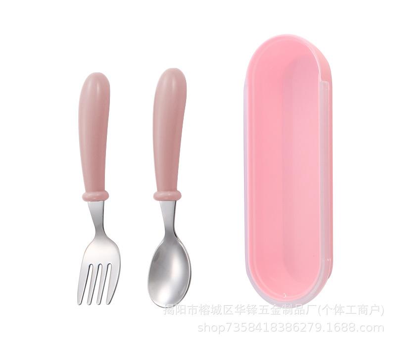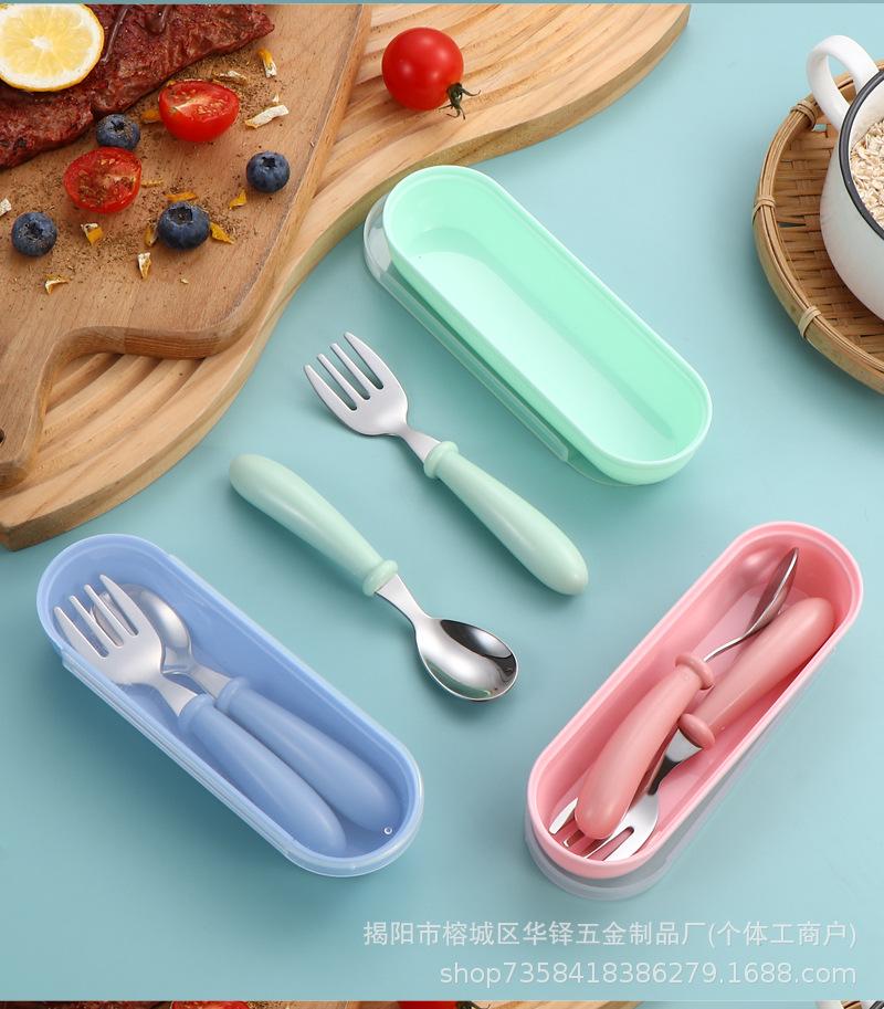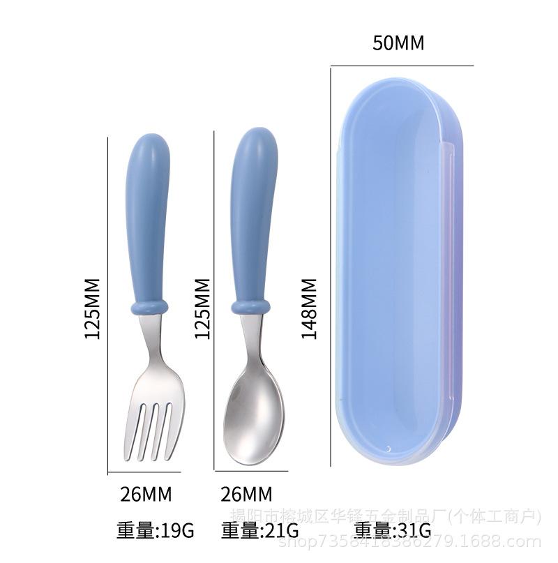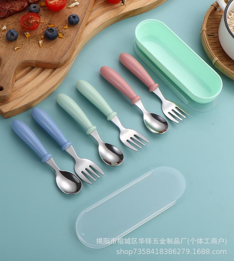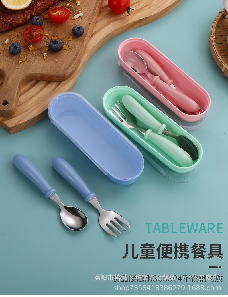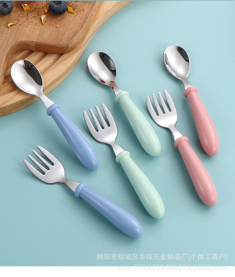 Tenedor y cuchara de acero inoxidable 304 para niños, cuchara de dibujos animados, tenedor, cuchara de aprendizaje y entrenamiento para bebés, vajilla portátil para el hogar.