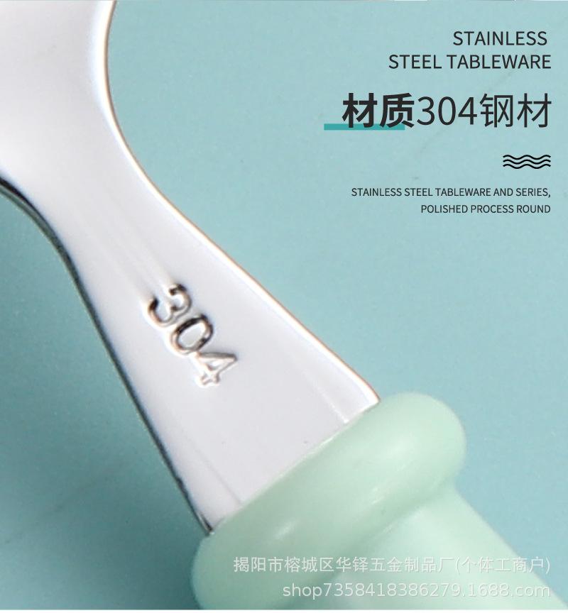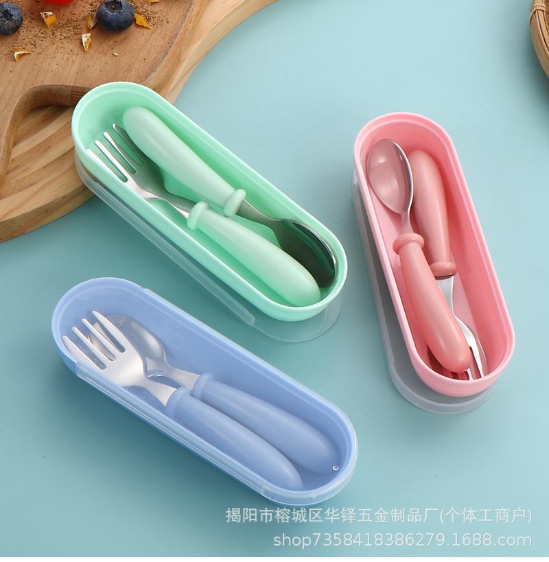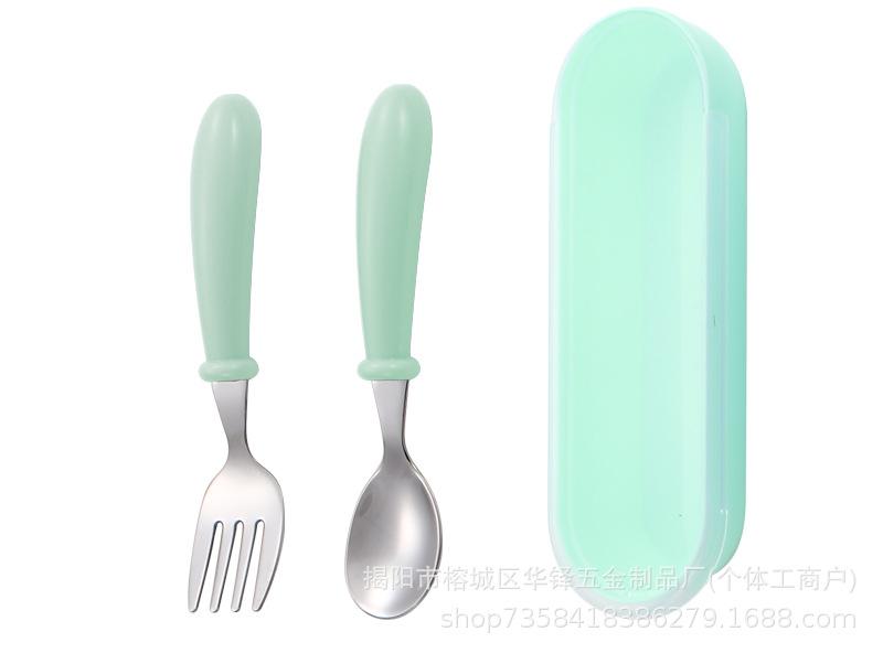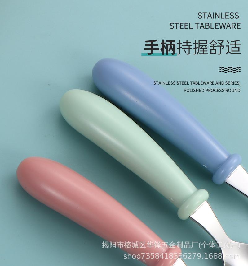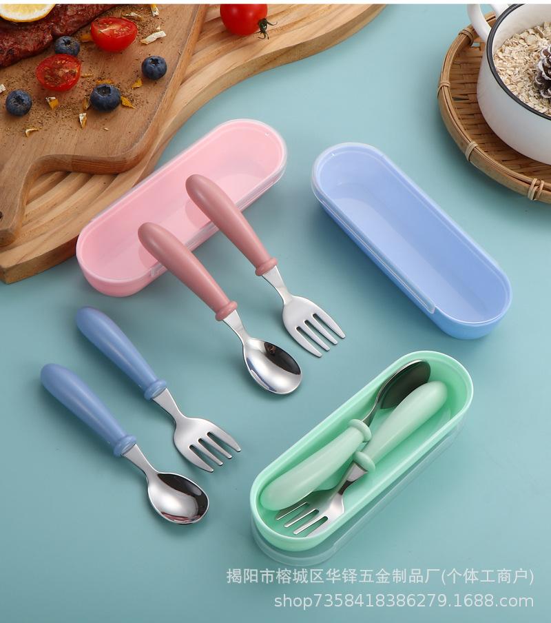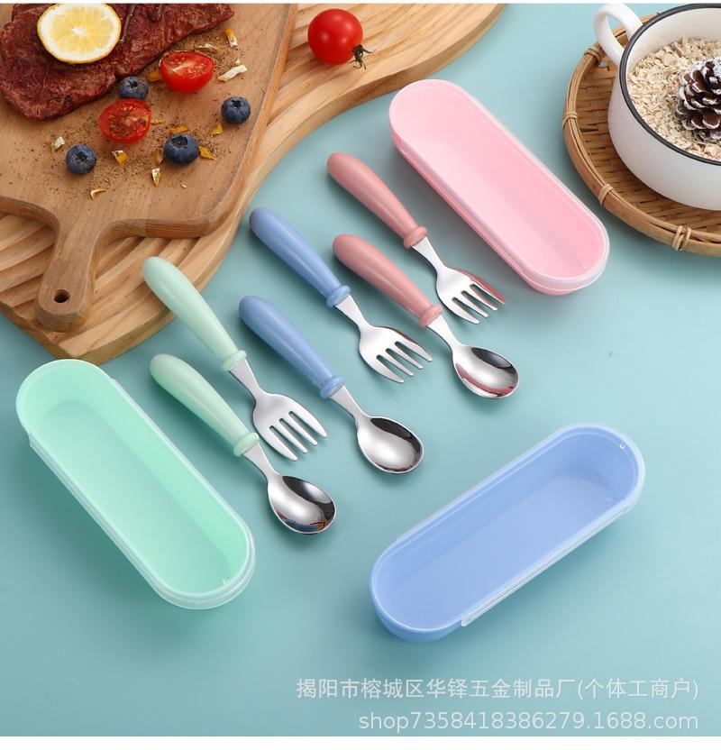 Tenedor y cuchara de acero inoxidable 304 para niños, cuchara de dibujos animados, tenedor, cuchara de aprendizaje y entrenamiento para bebés, vajilla portátil para el hogar.