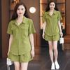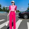 Traje deportivo de moda para mujer, verano 2024, nuevo estilo coreano, holgado, de manga corta, con pantalones cortos anchos, conjunto informal de dos piezas a la moda.