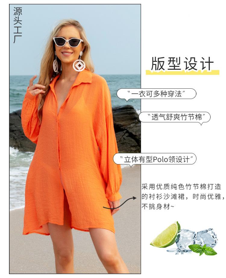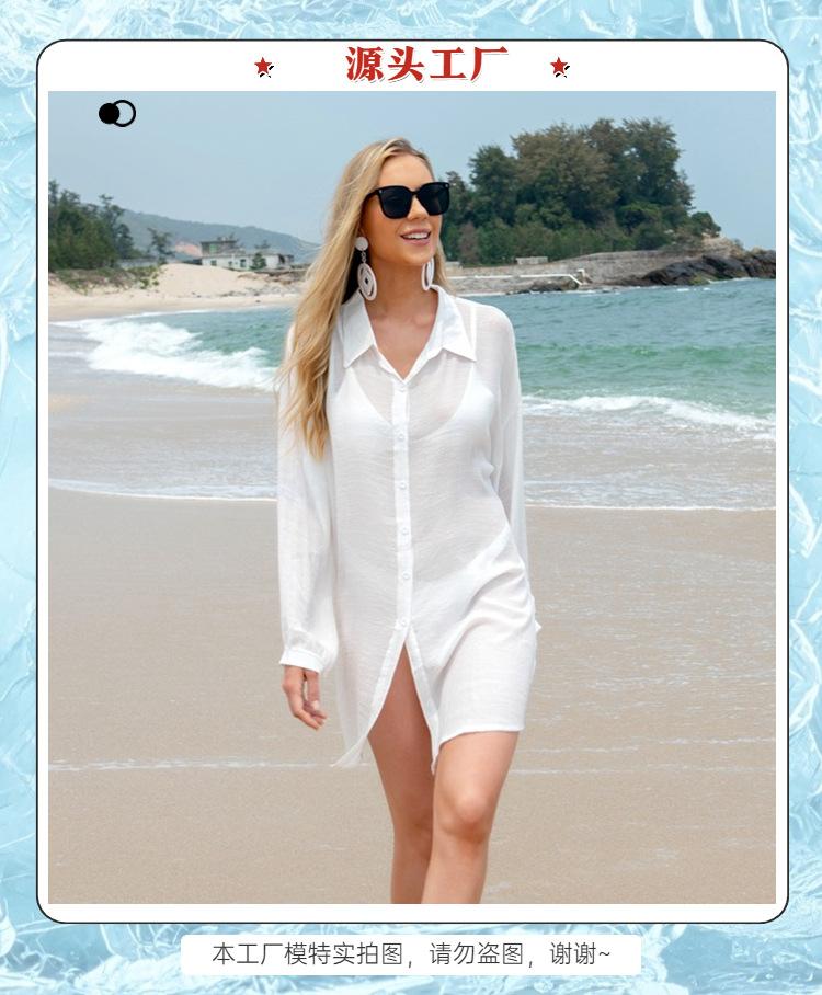 2025 Nuevo Cubreplayas Transfronterizo de Playa Marítima Protección Solar Color Puro Sencillo Cárdigan de Manga Larga para Mujer Bikini Traje de Baño Venta al por Mayor