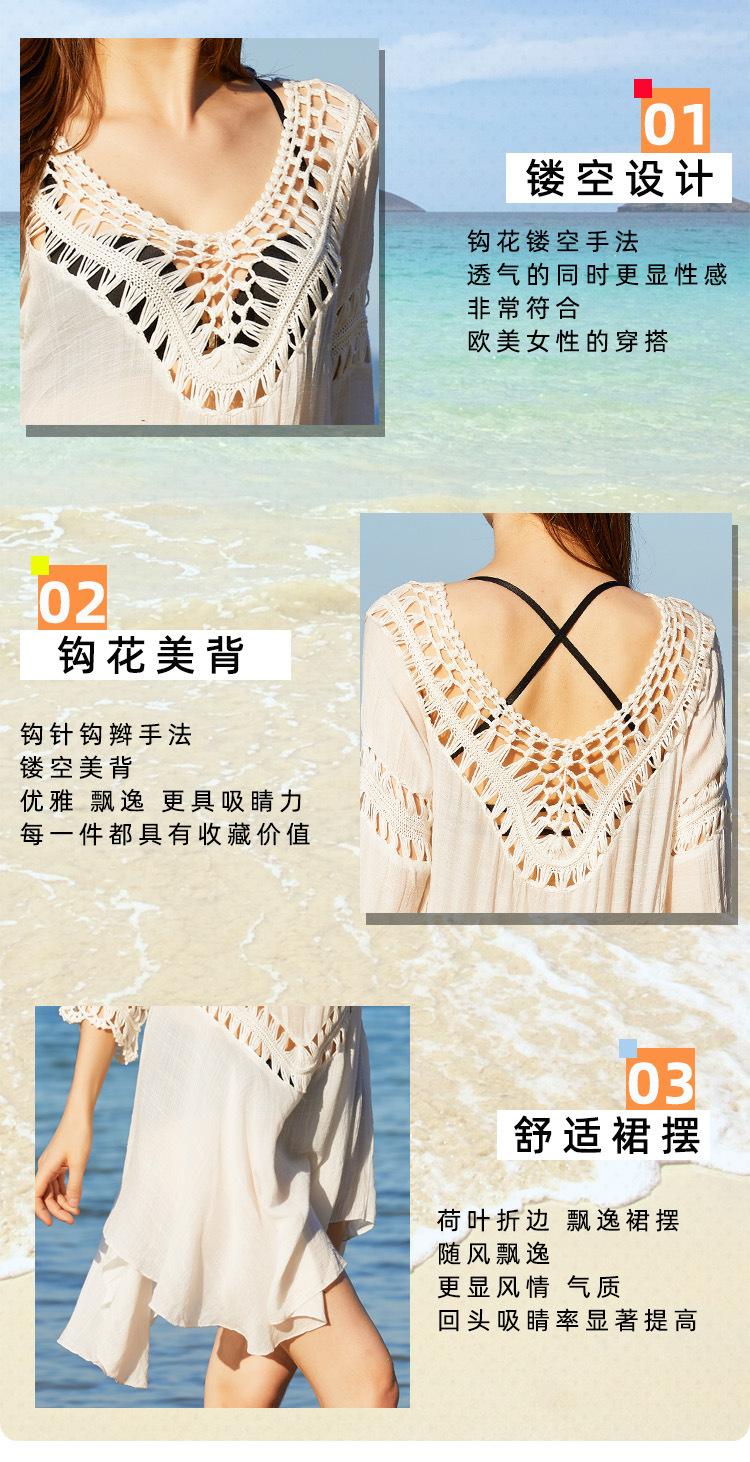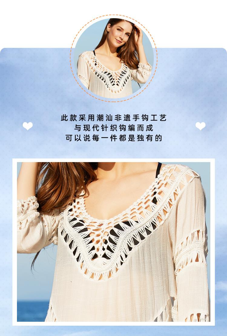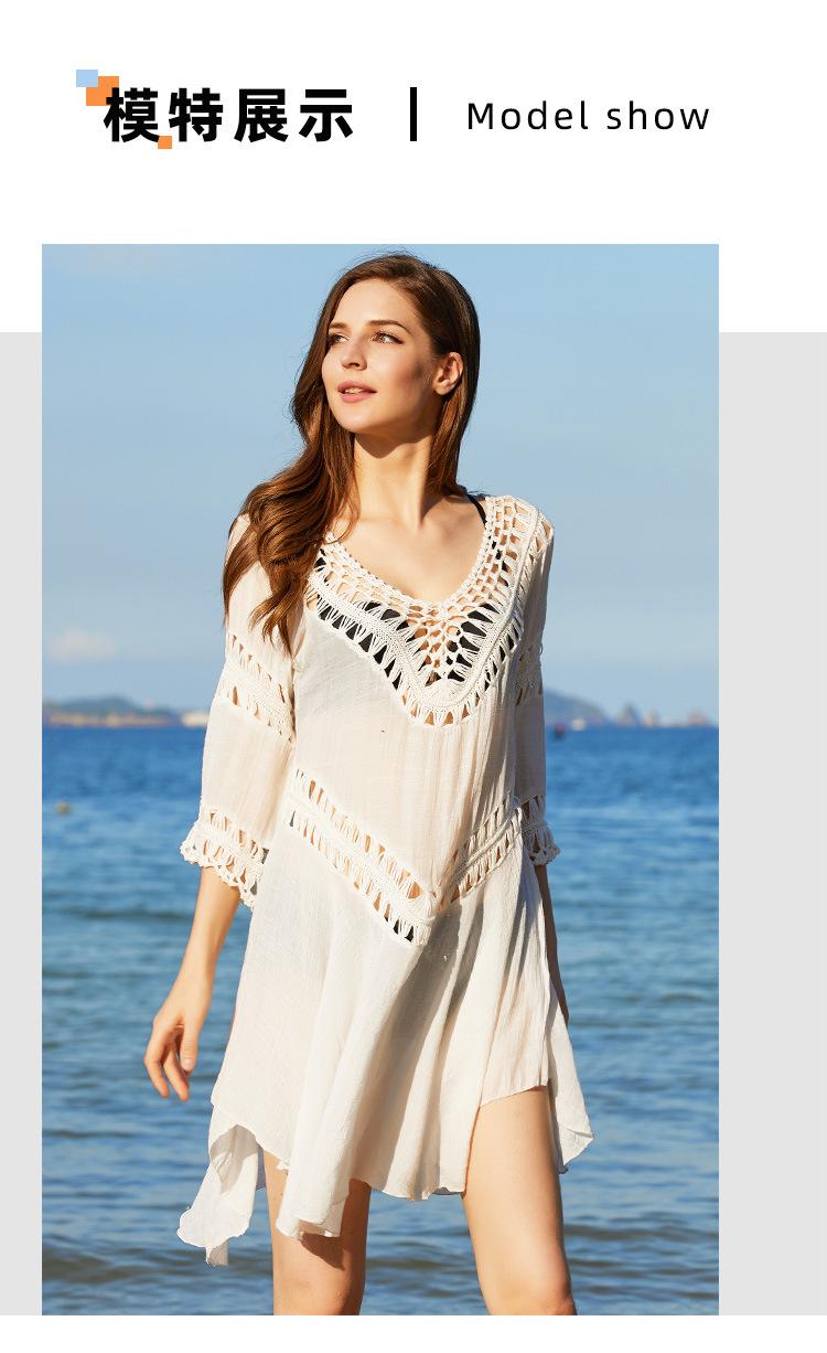 2025 Nuevo Verano Europeo y Americano Tejido a Mano Calado Talla Grande Bikini Exterior Traje de Baño Playa Protección Solar Cubre Traje Venta Directa
