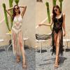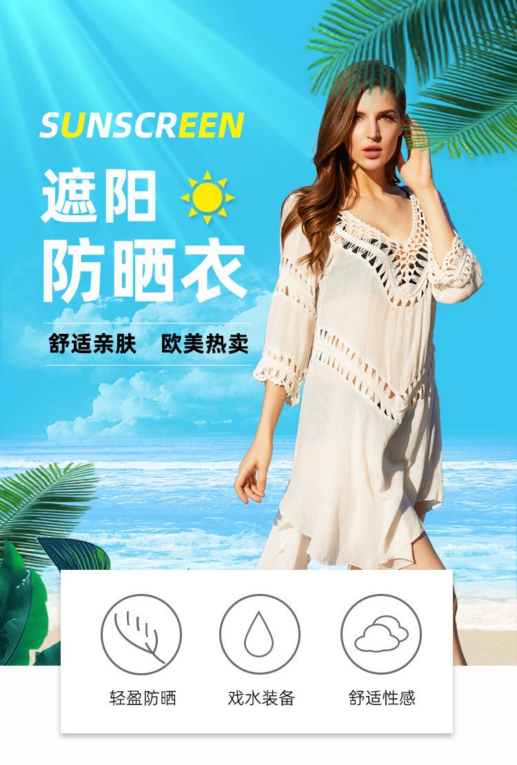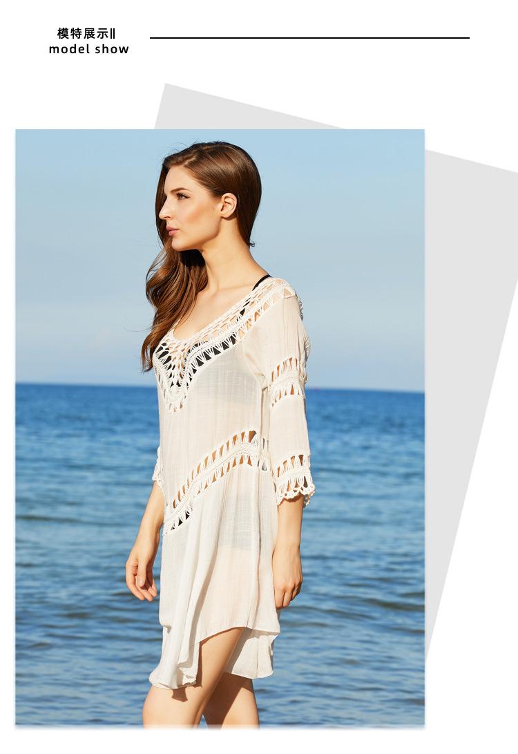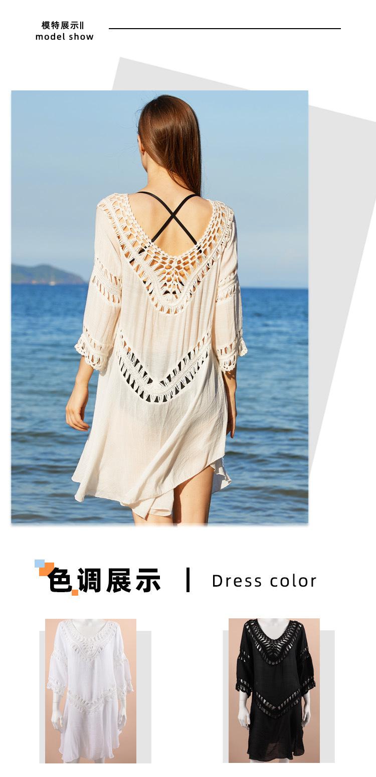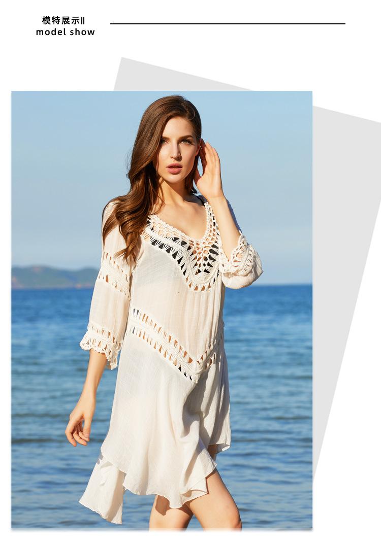 2025 Nuevo Verano Europeo y Americano Tejido a Mano Calado Talla Grande Bikini Exterior Traje de Baño Playa Protección Solar Cubre Traje Venta Directa