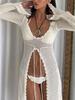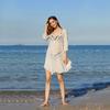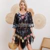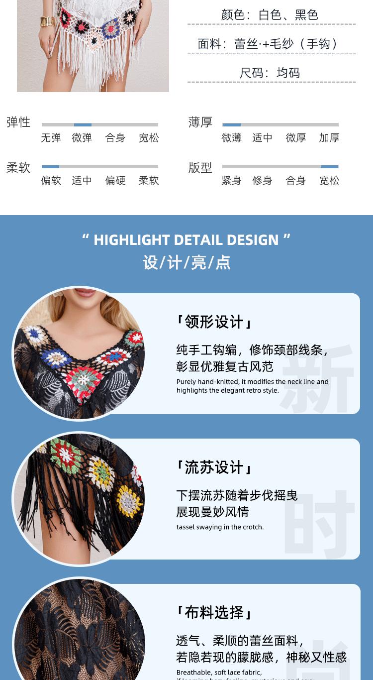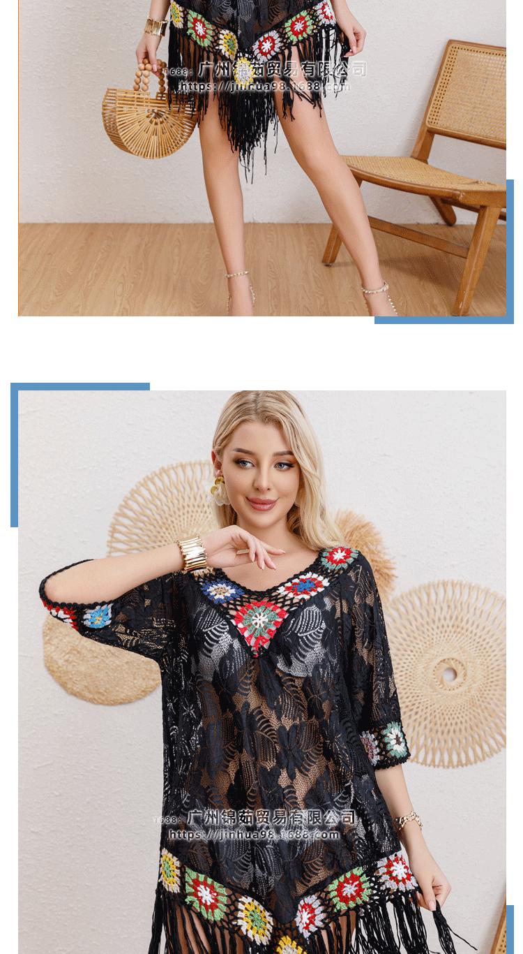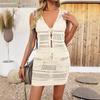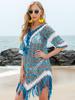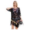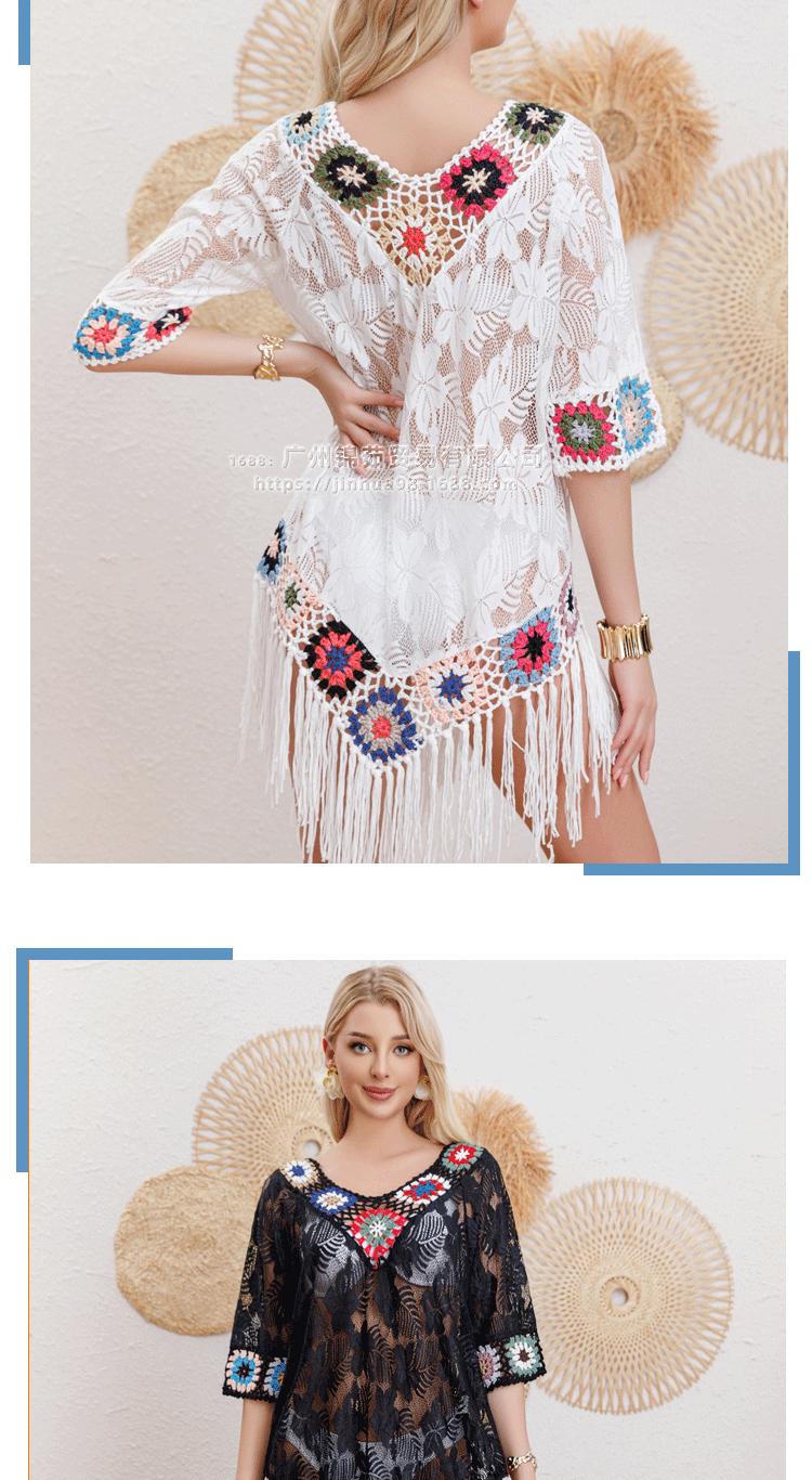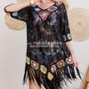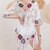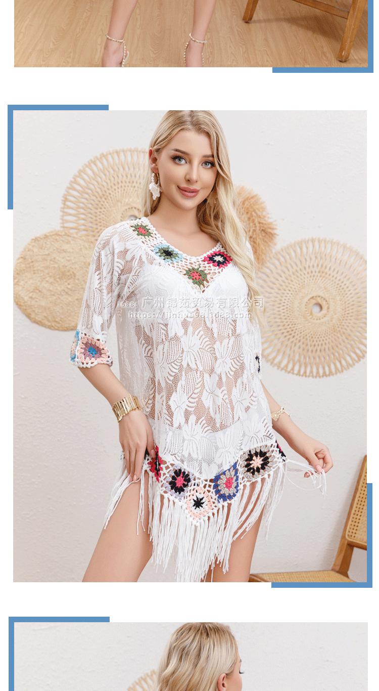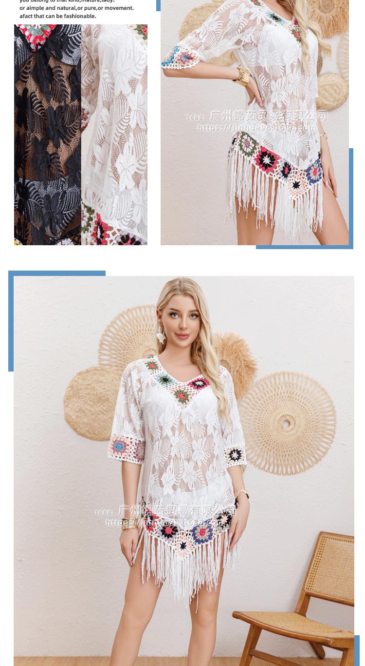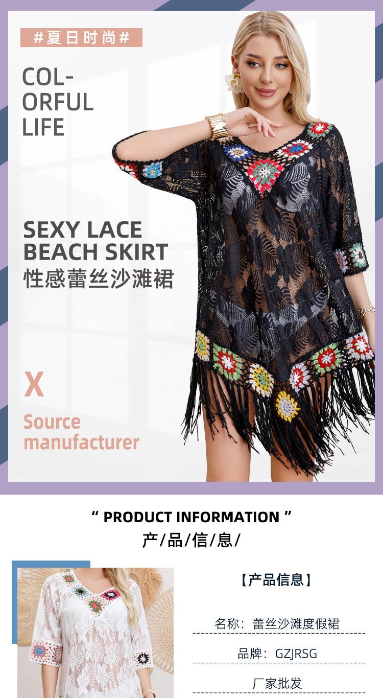 Verano 2025 Nuevo Encaje Calado Europeo y Americano Crochet Playa Blusa Protector Solar Borla Sexy Bikini Falda de Playa