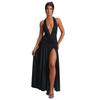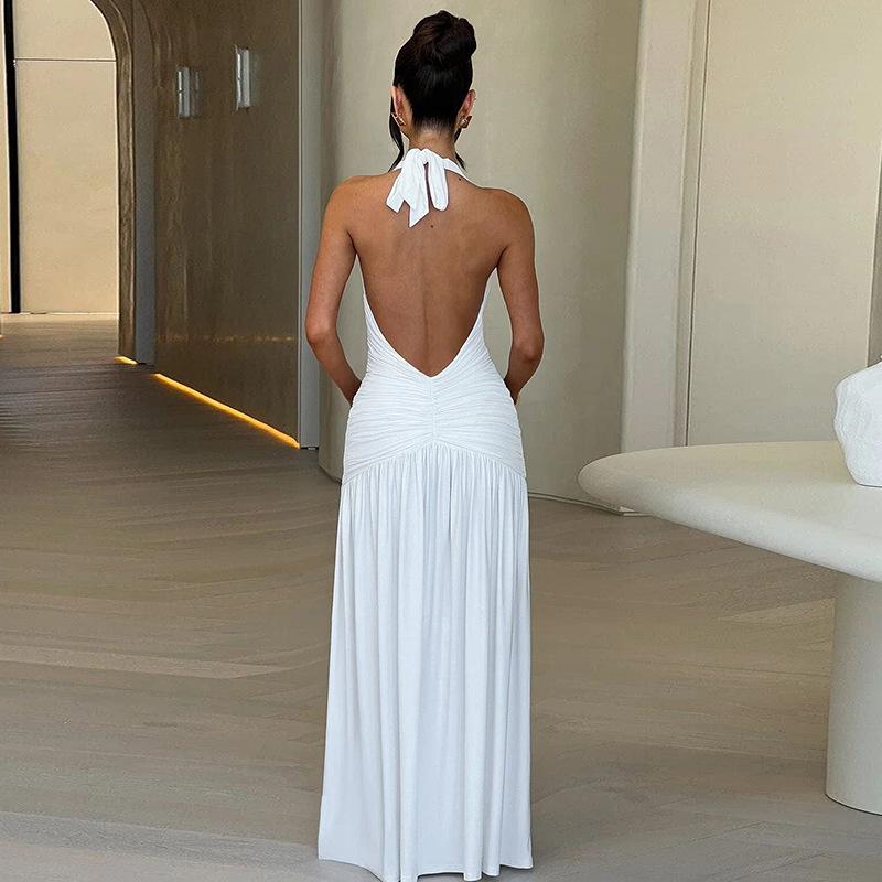 Vestido largo con escote en V elegante para mujer, estilo europeo y americano, sexy, plisado, sin espalda, para verano de 2024