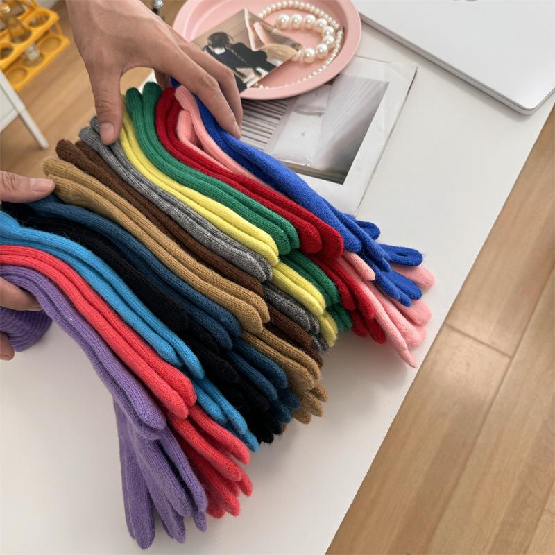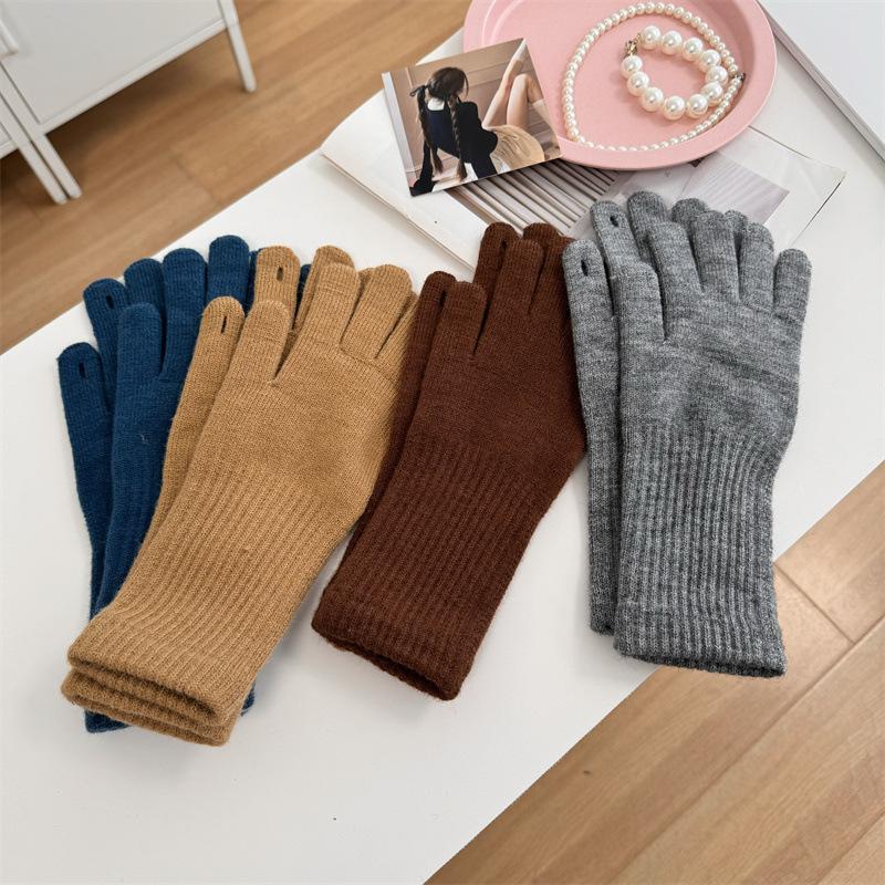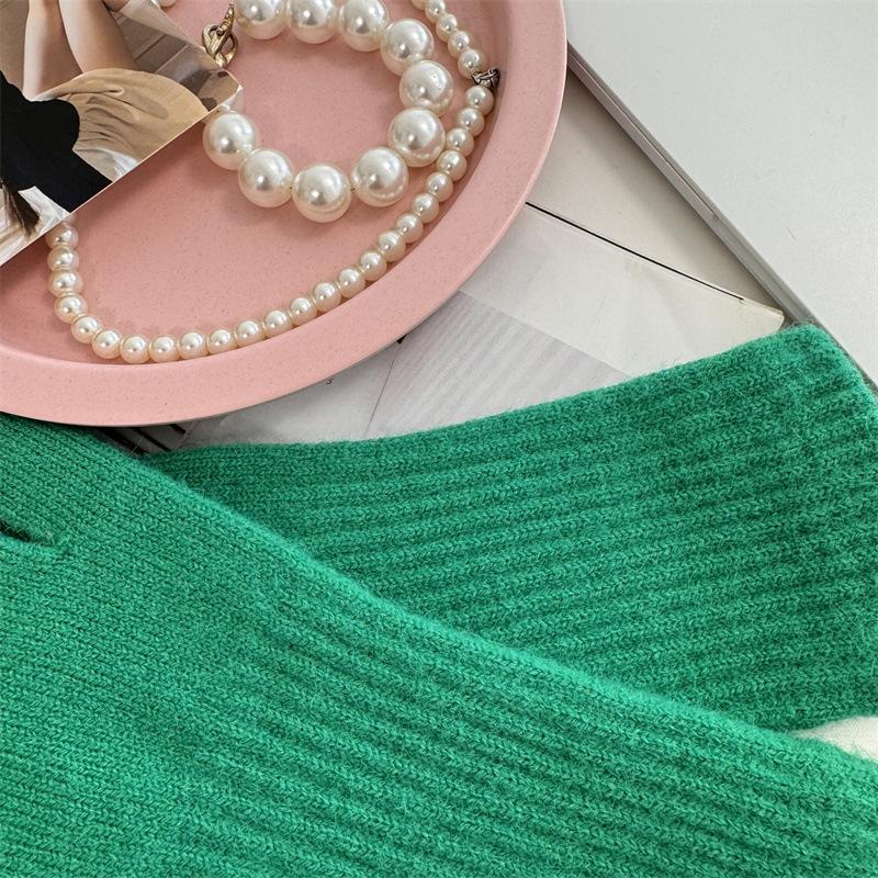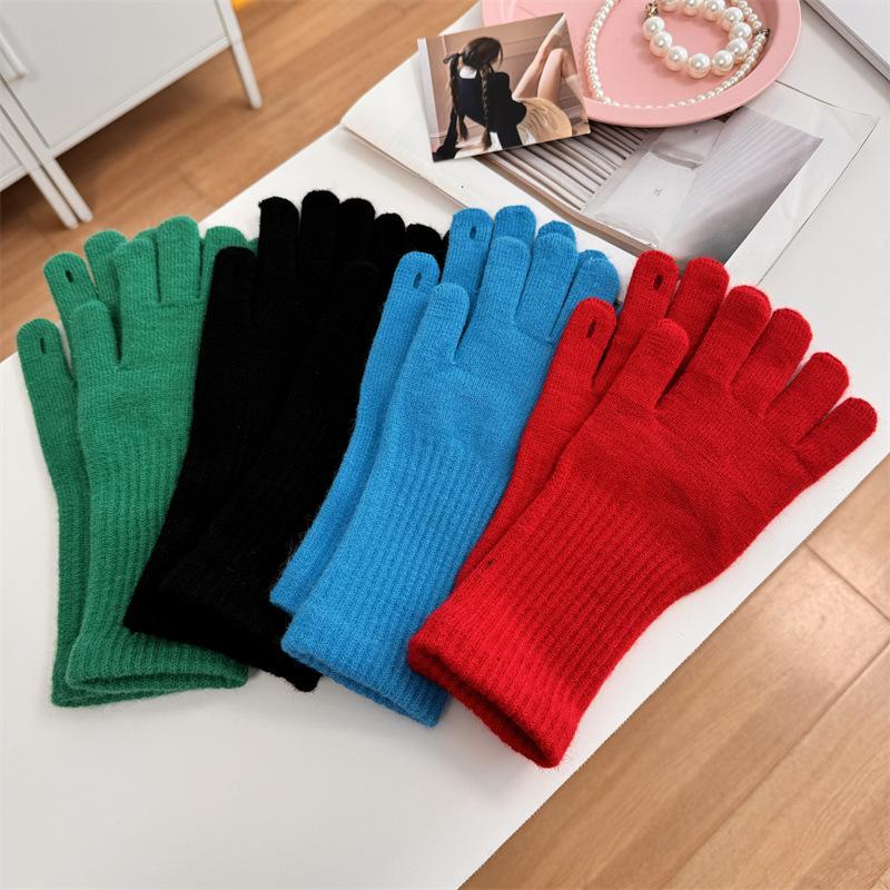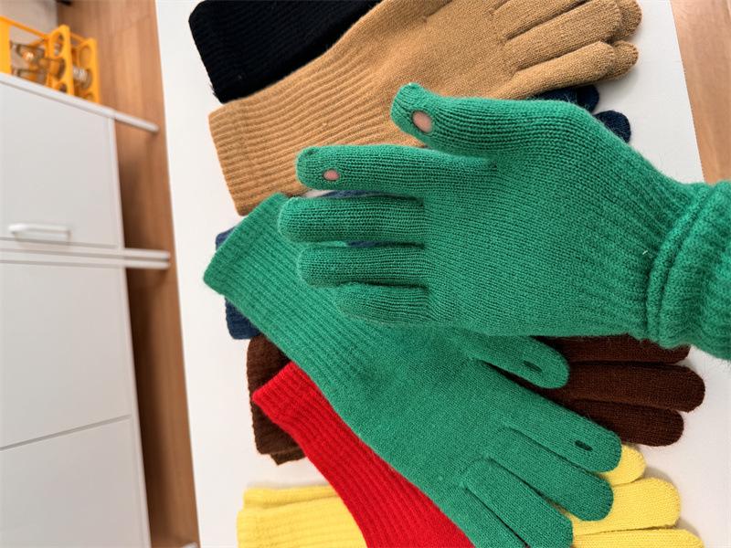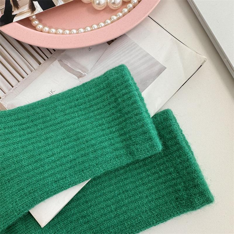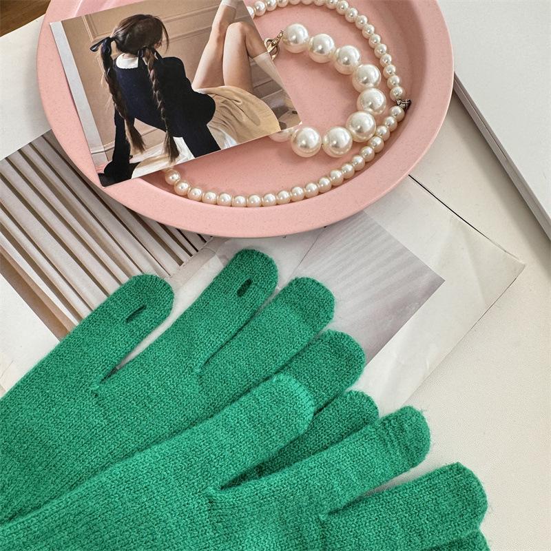 Guantes de lana de punto para mujer, bonitos guantes de invierno verdes cálidos con pantalla táctil y dedos separados para ciclismo, resistentes al frío